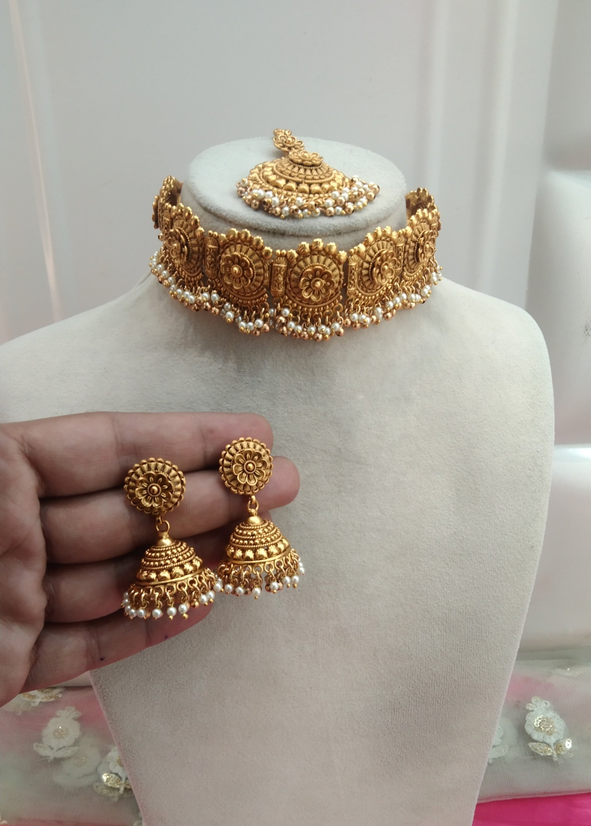 * Gold Finish Polki Choker Set with earrings as shown in the pic.
