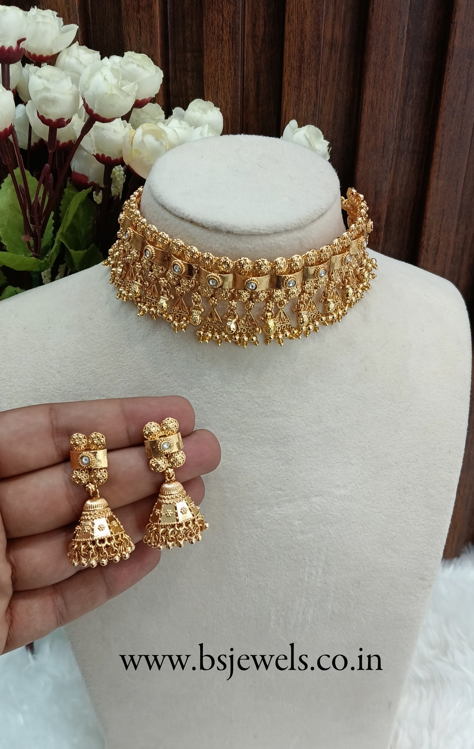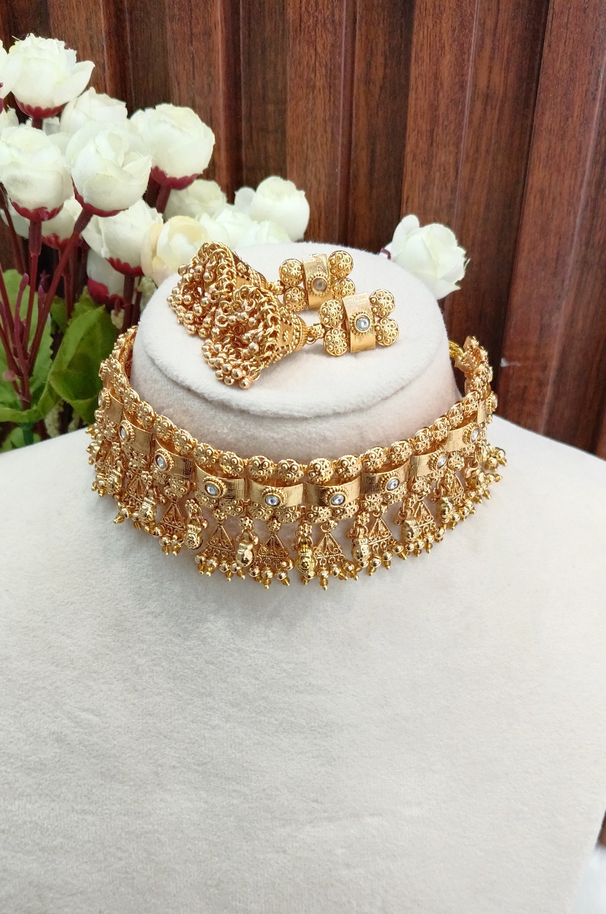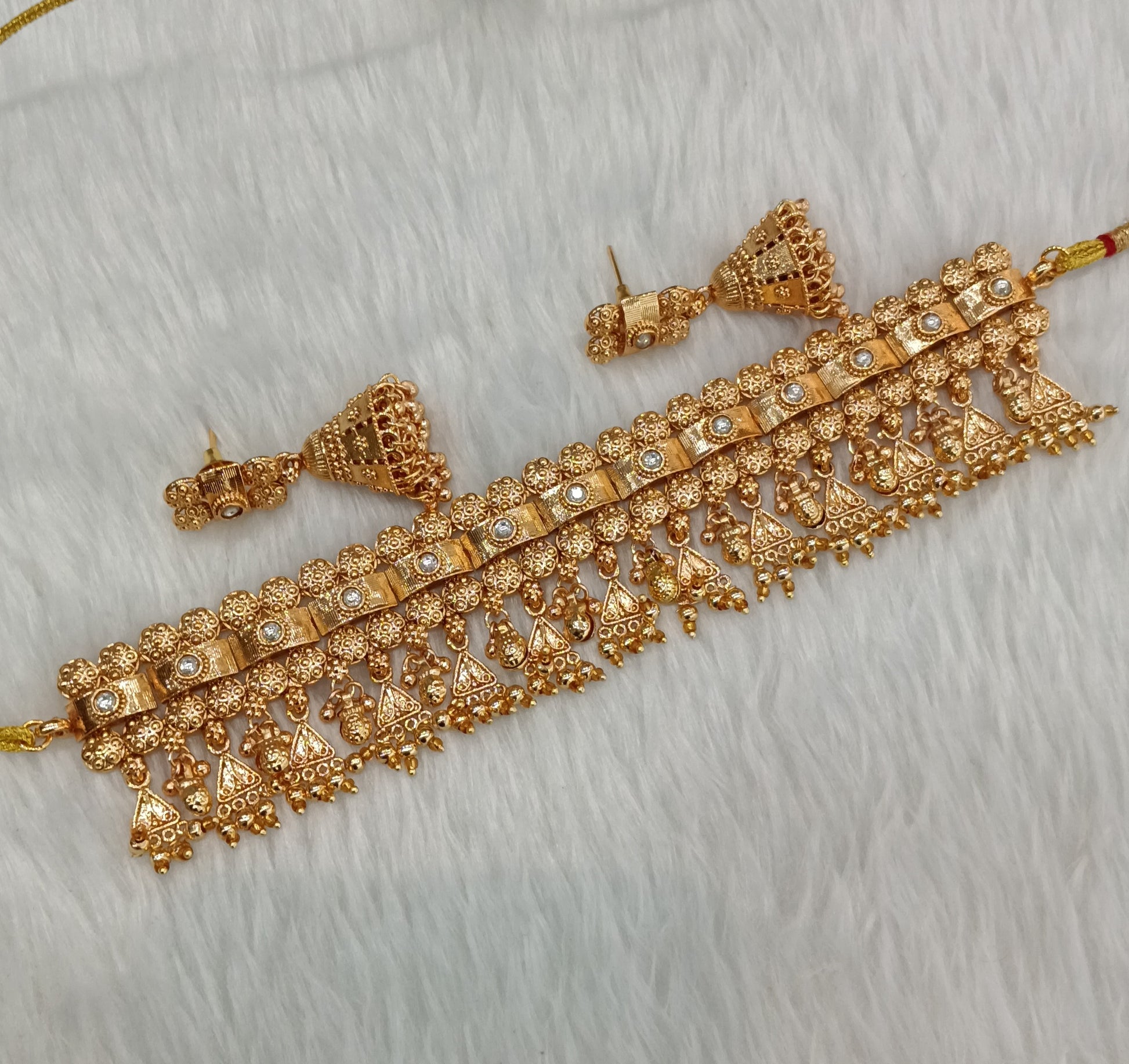 * Gold Finish Polki Choker Set with earrings as shown in the pic.