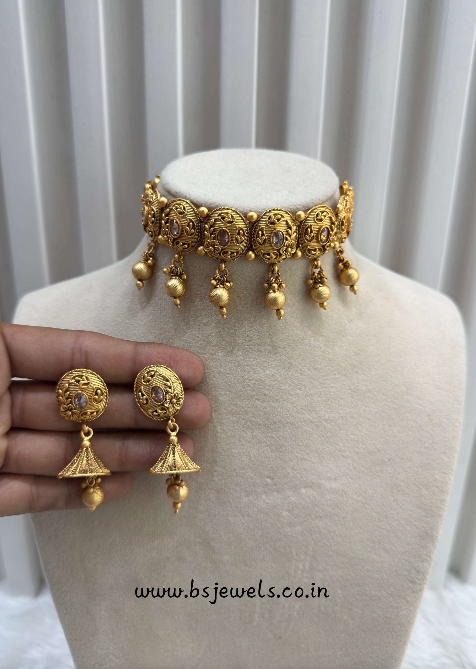 Gold Polki Jhumki Choker Jewellery Bobo Set