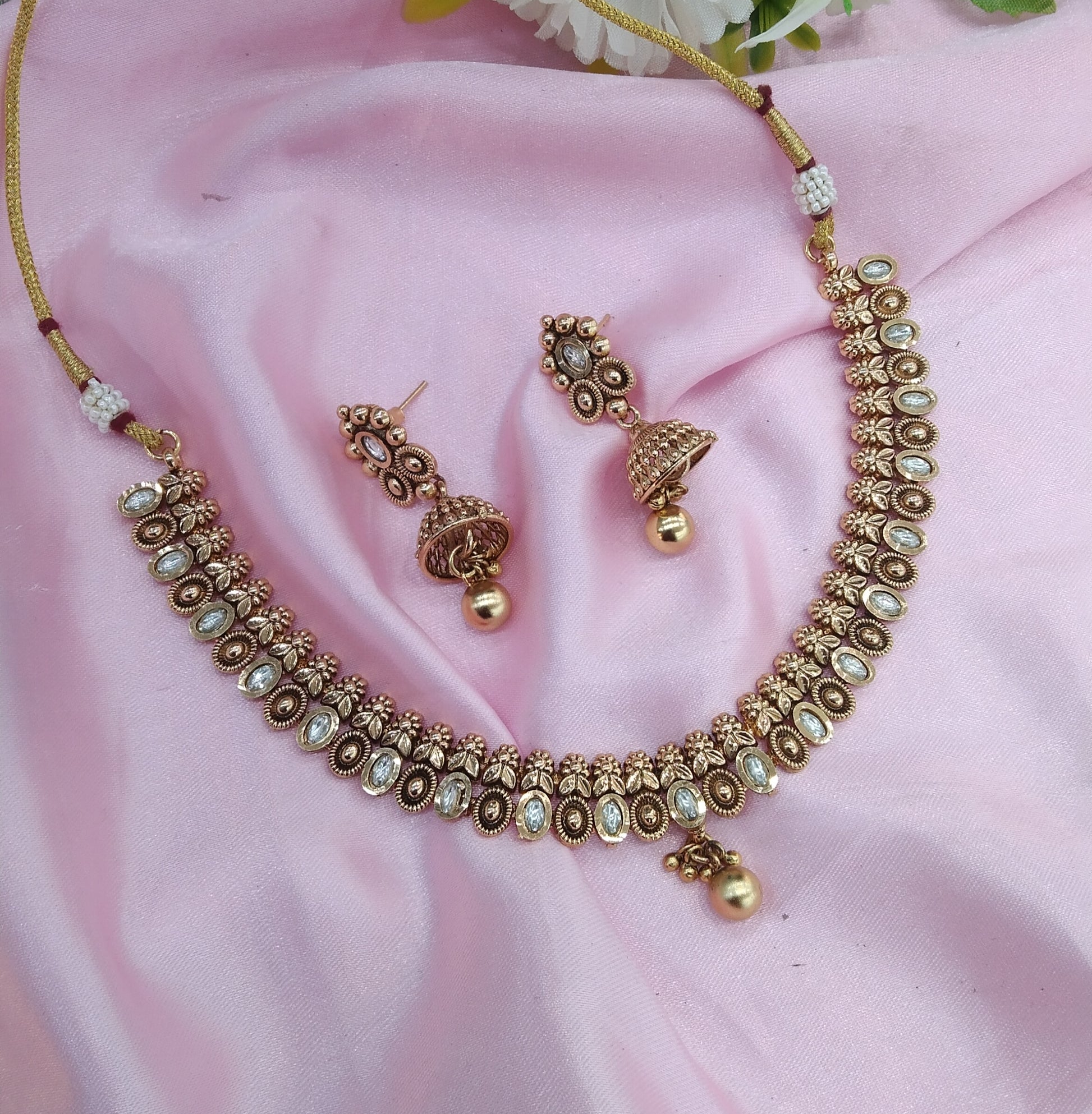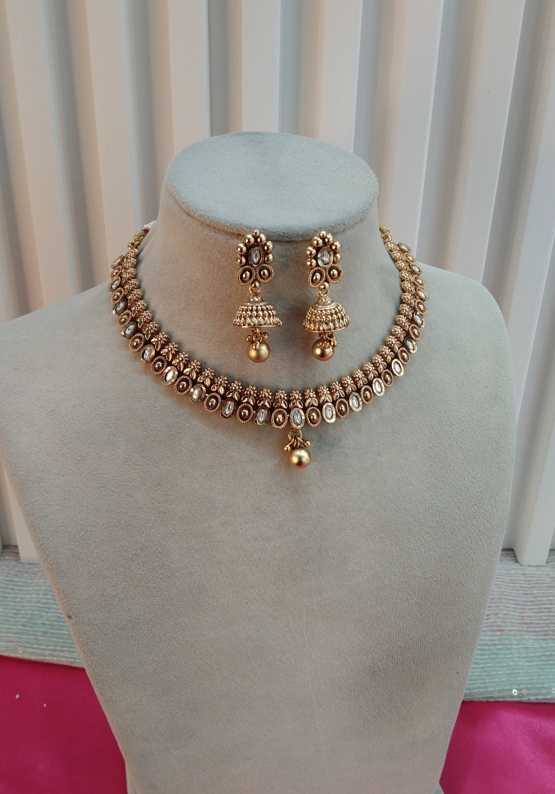 Gold Polki Jhumki Necklace Jewellery Delta Set