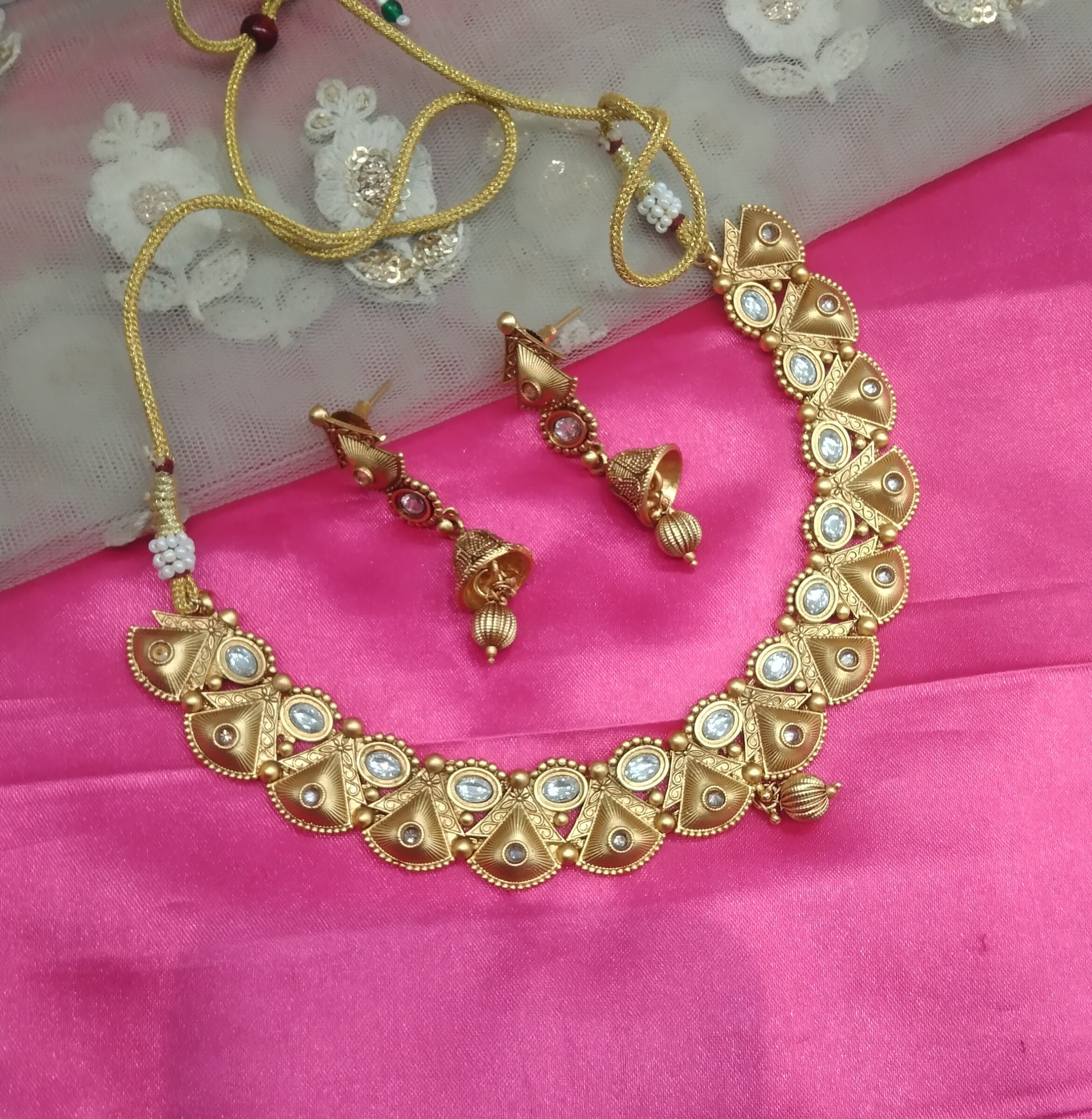 Gold Polki Jhumki Necklace Jewelry Ferry Set