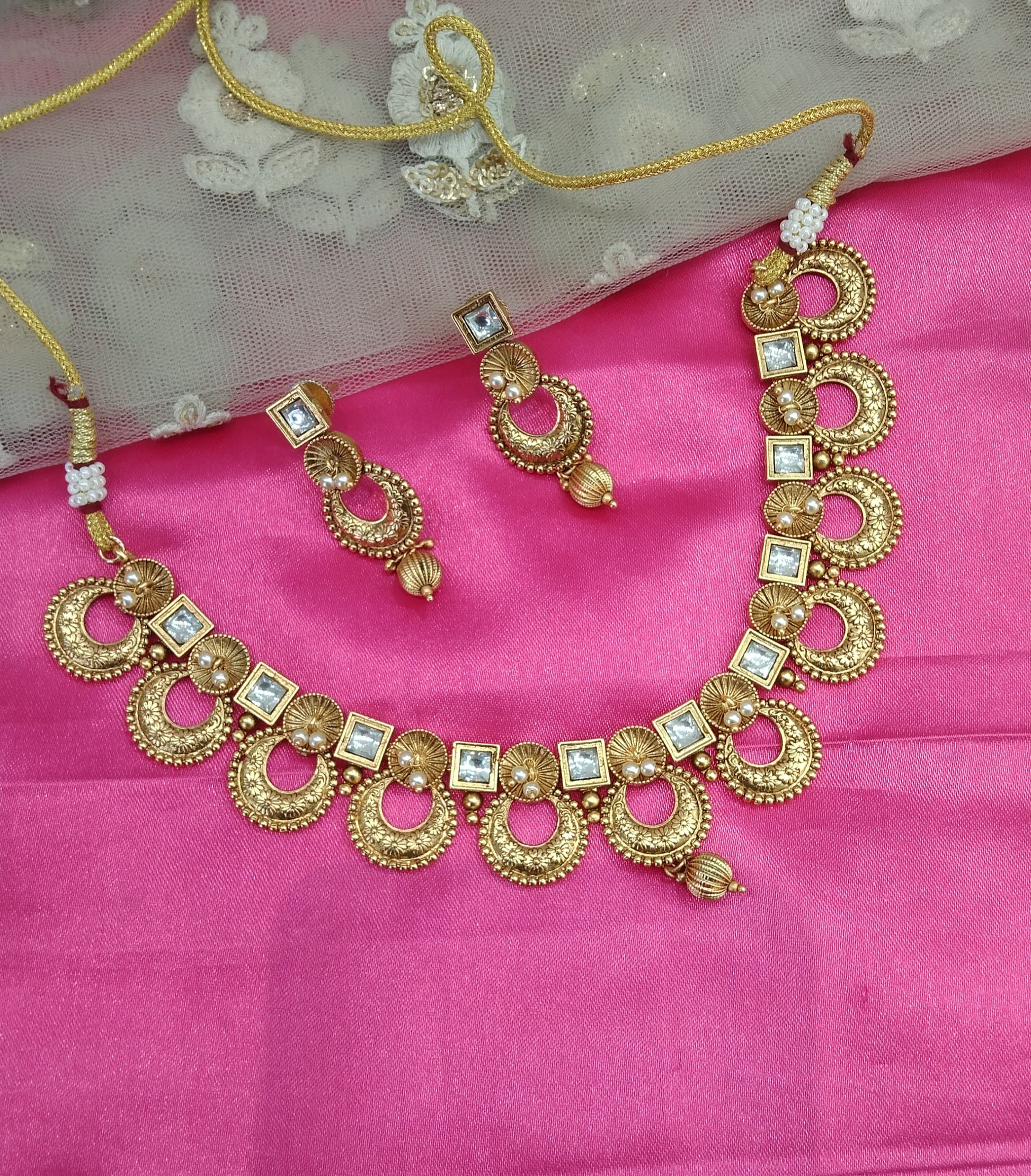 Gold Polki kundan Necklace Jewelry Brazil Set