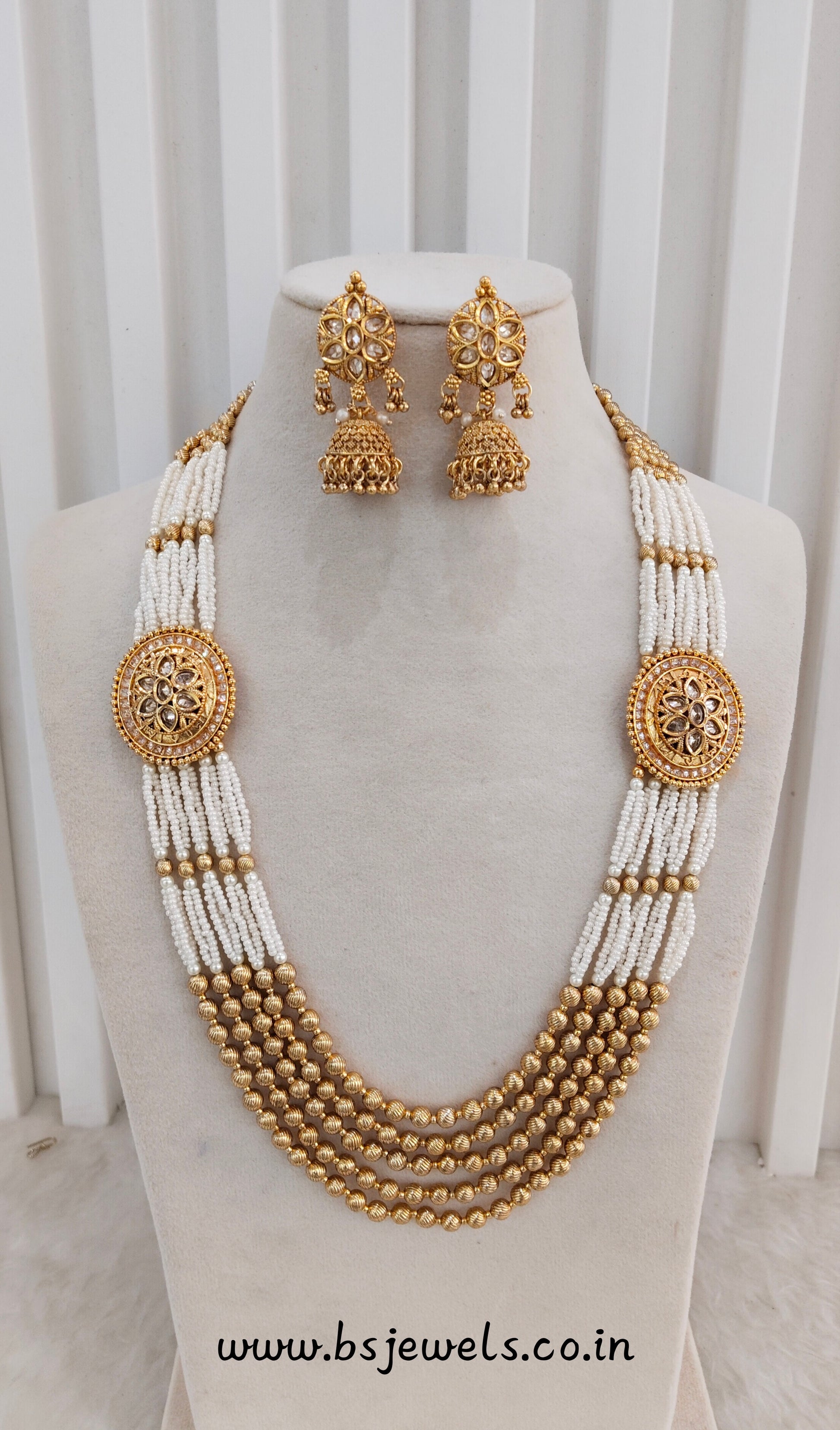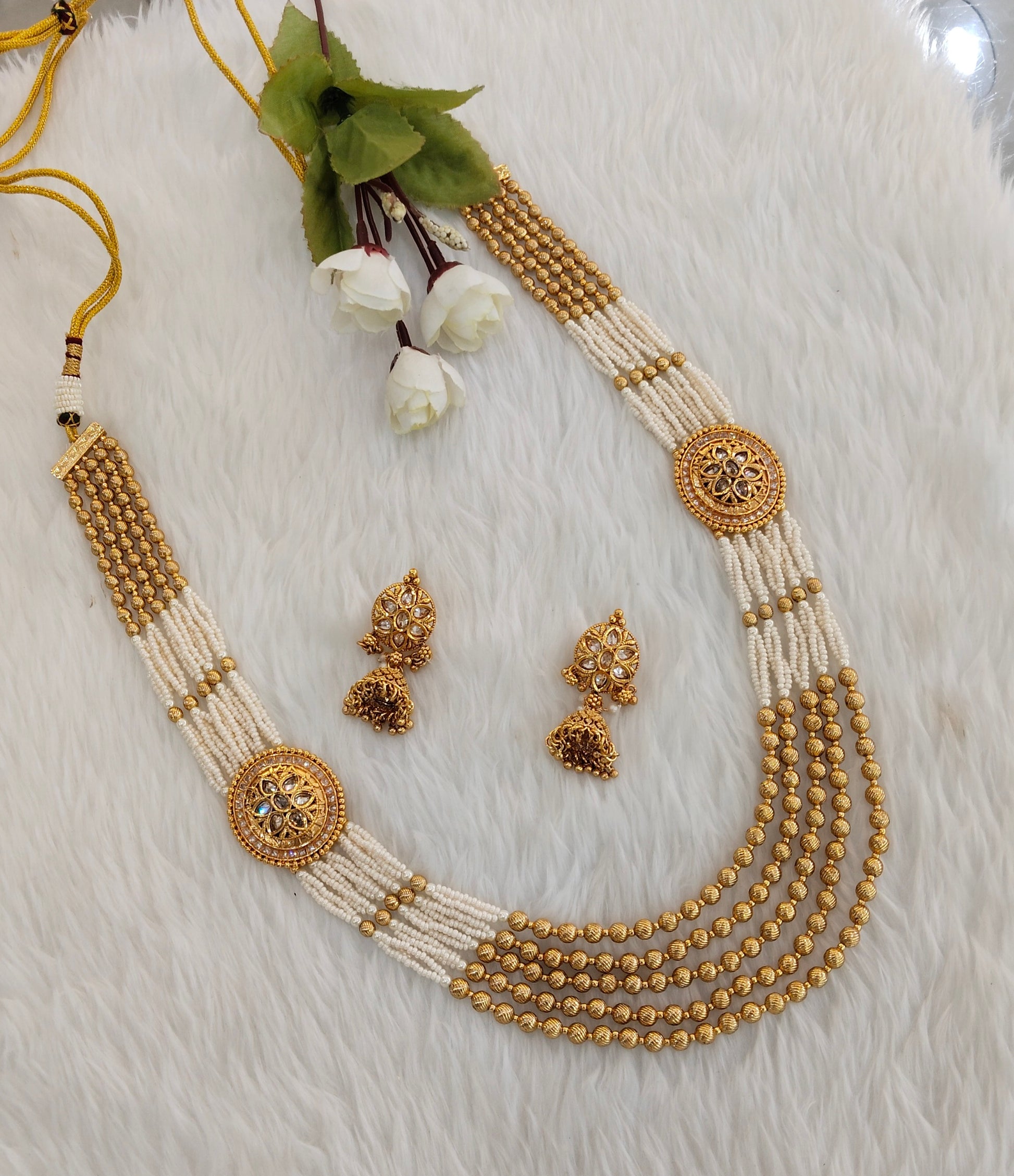 Gold Polki Long Layered Necklace Jewellery Udham Set