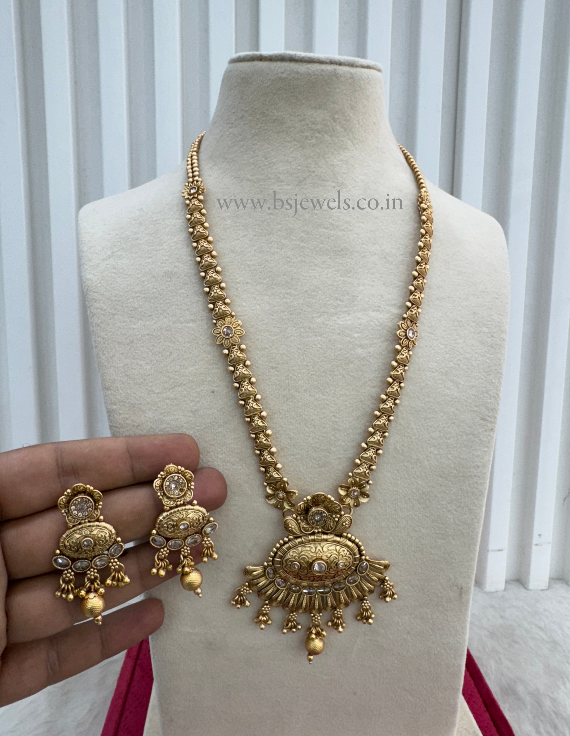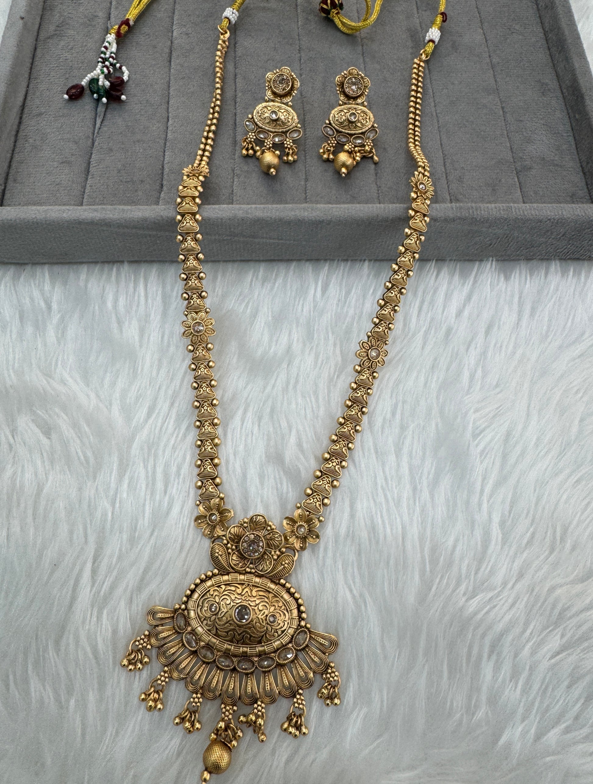 Gold Polki Long Rani Haar Necklace Jewellery Set