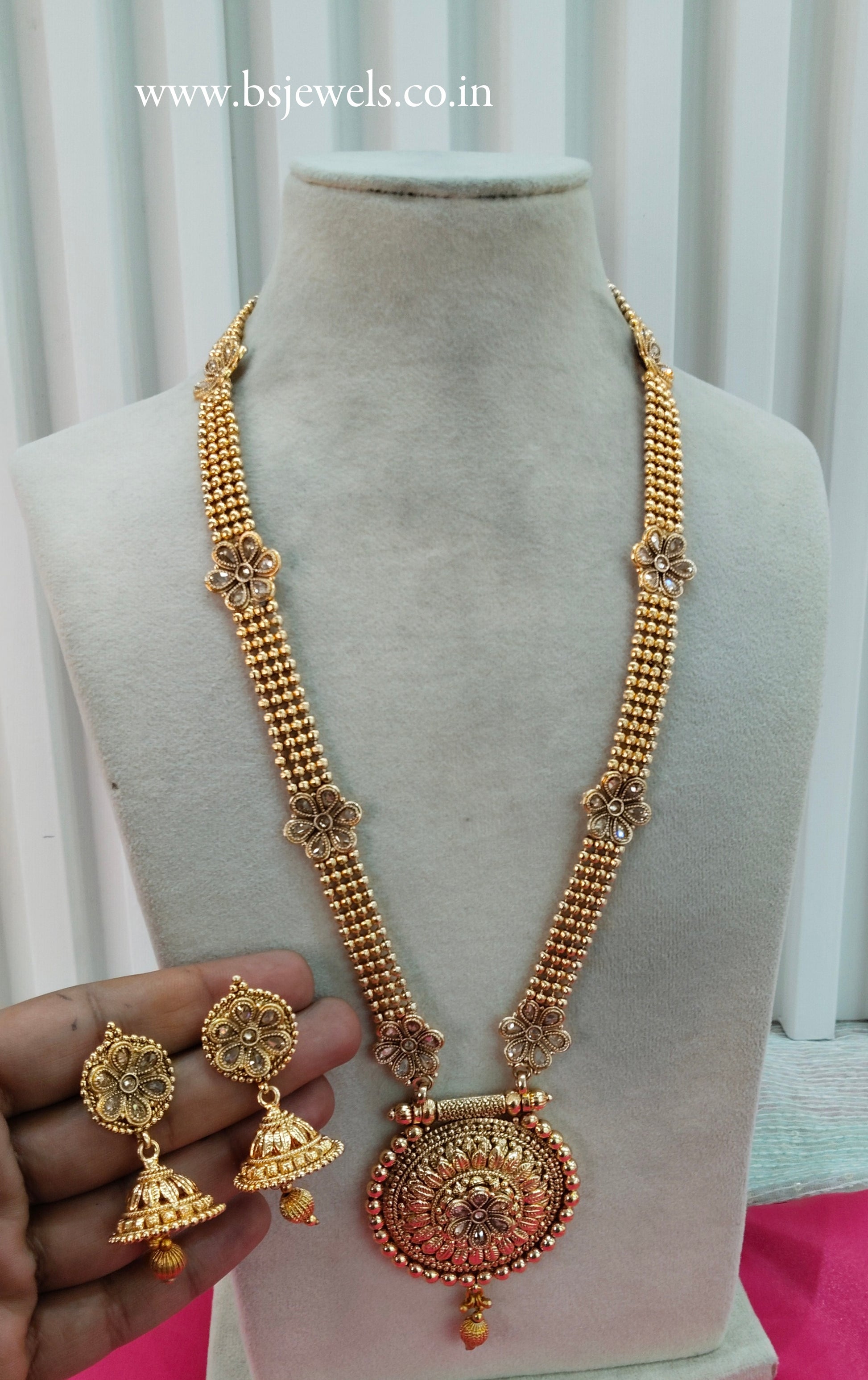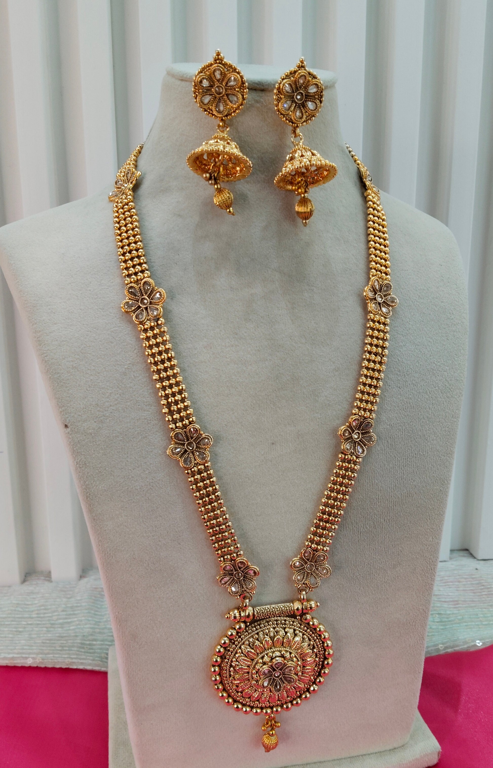 Gold Polki Long Rani Haar Jhumka Necklace Jewellery Set
