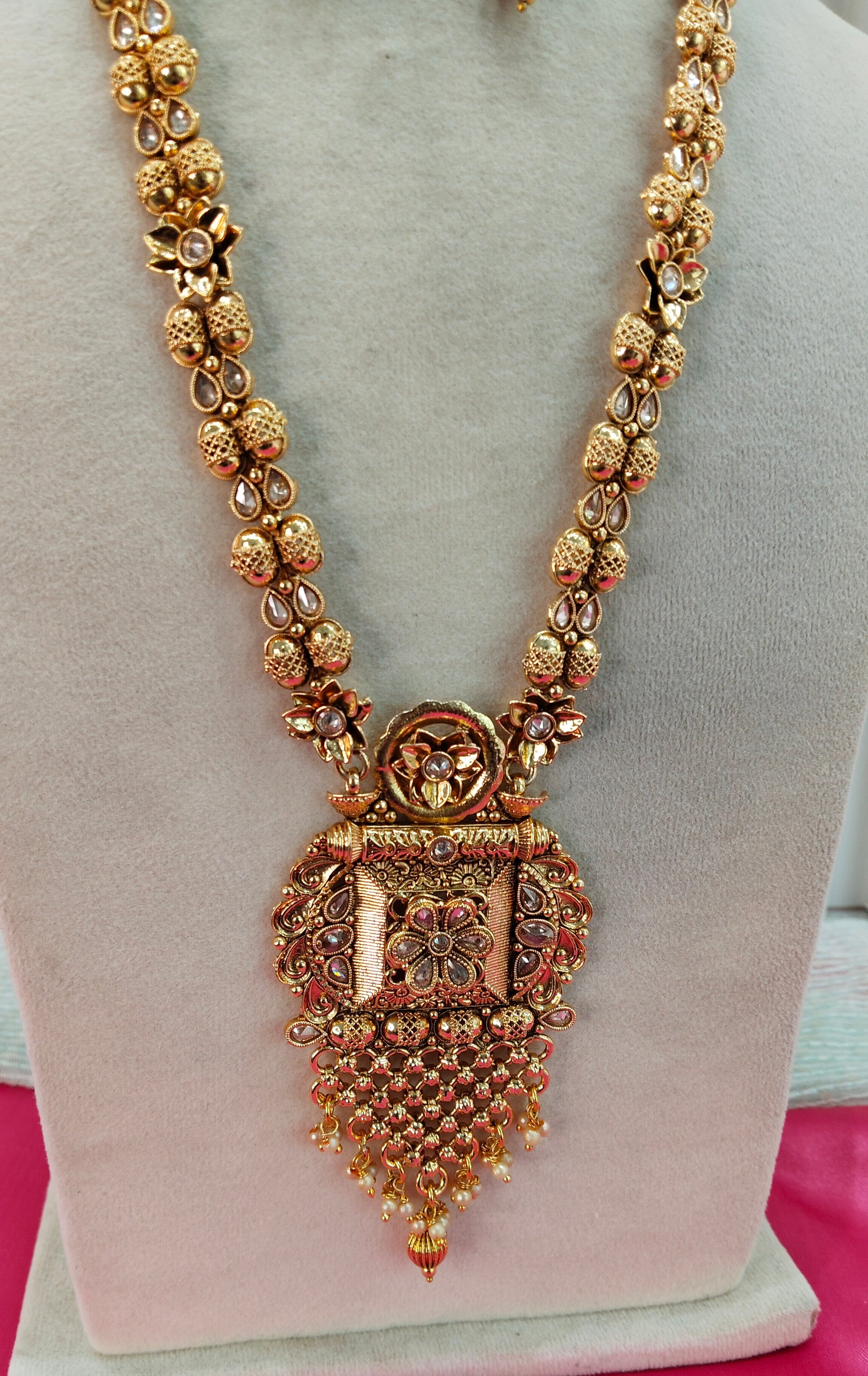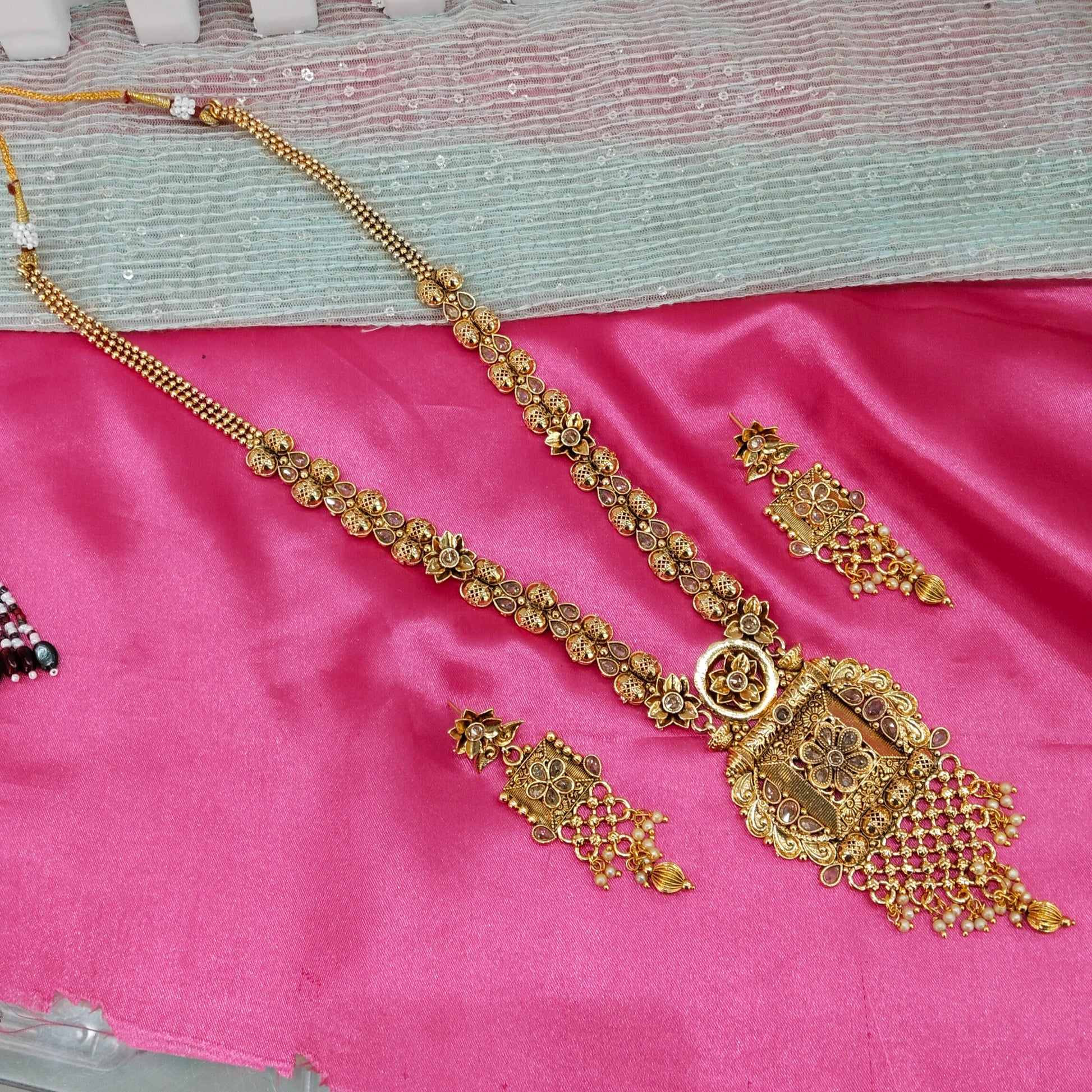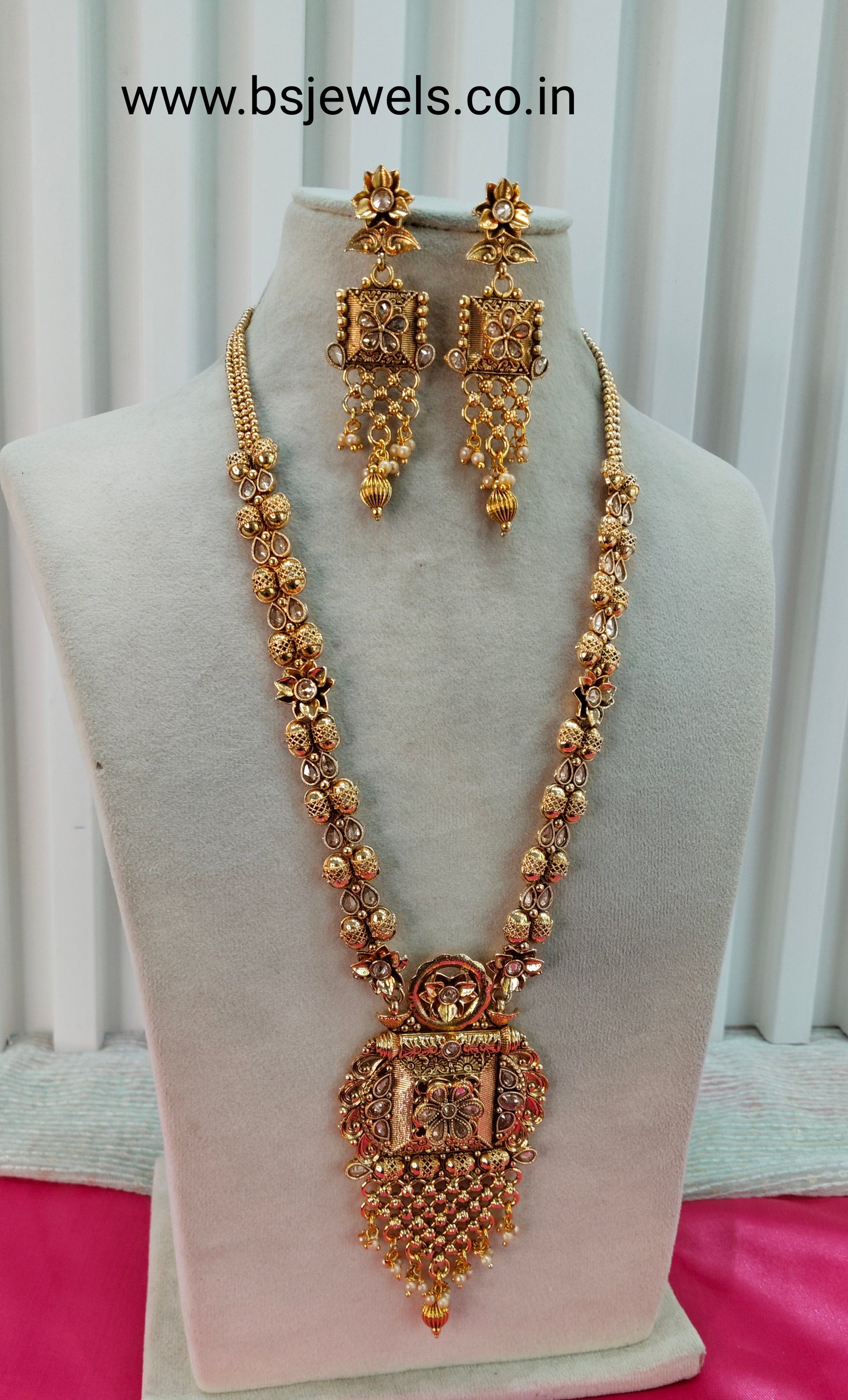 Gold Polki Long Rani Haar Necklace Jewellery Set