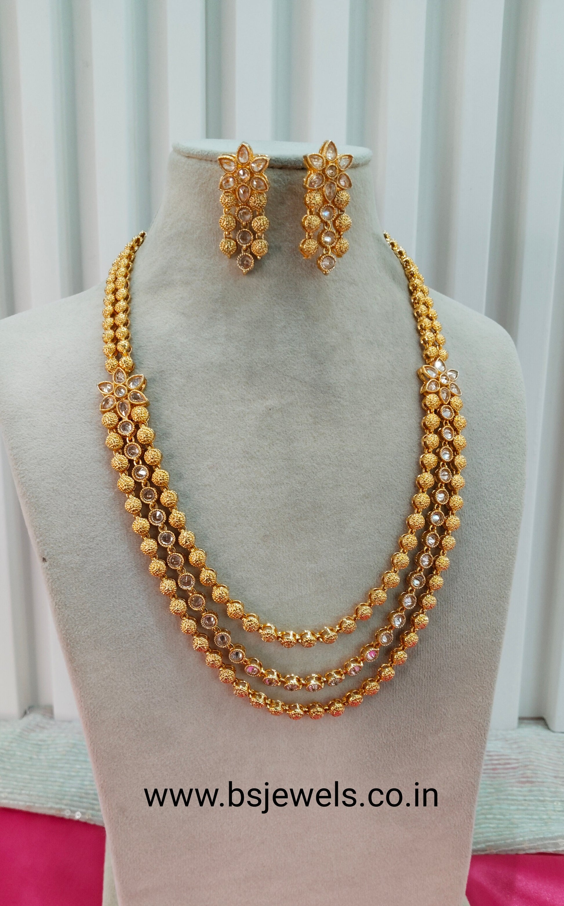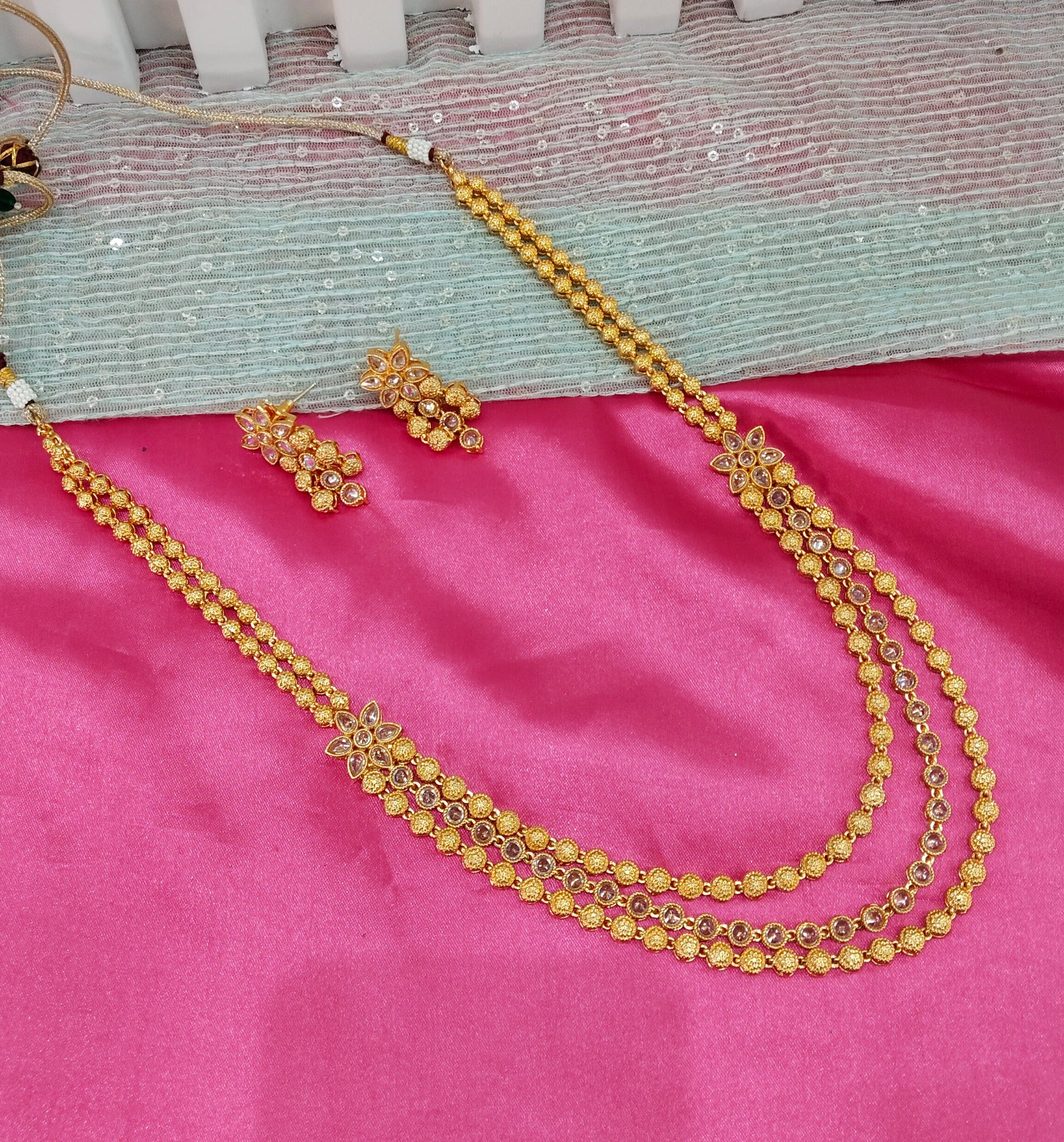 Gold Polki Long Rani Haar Necklace Jewellery Set