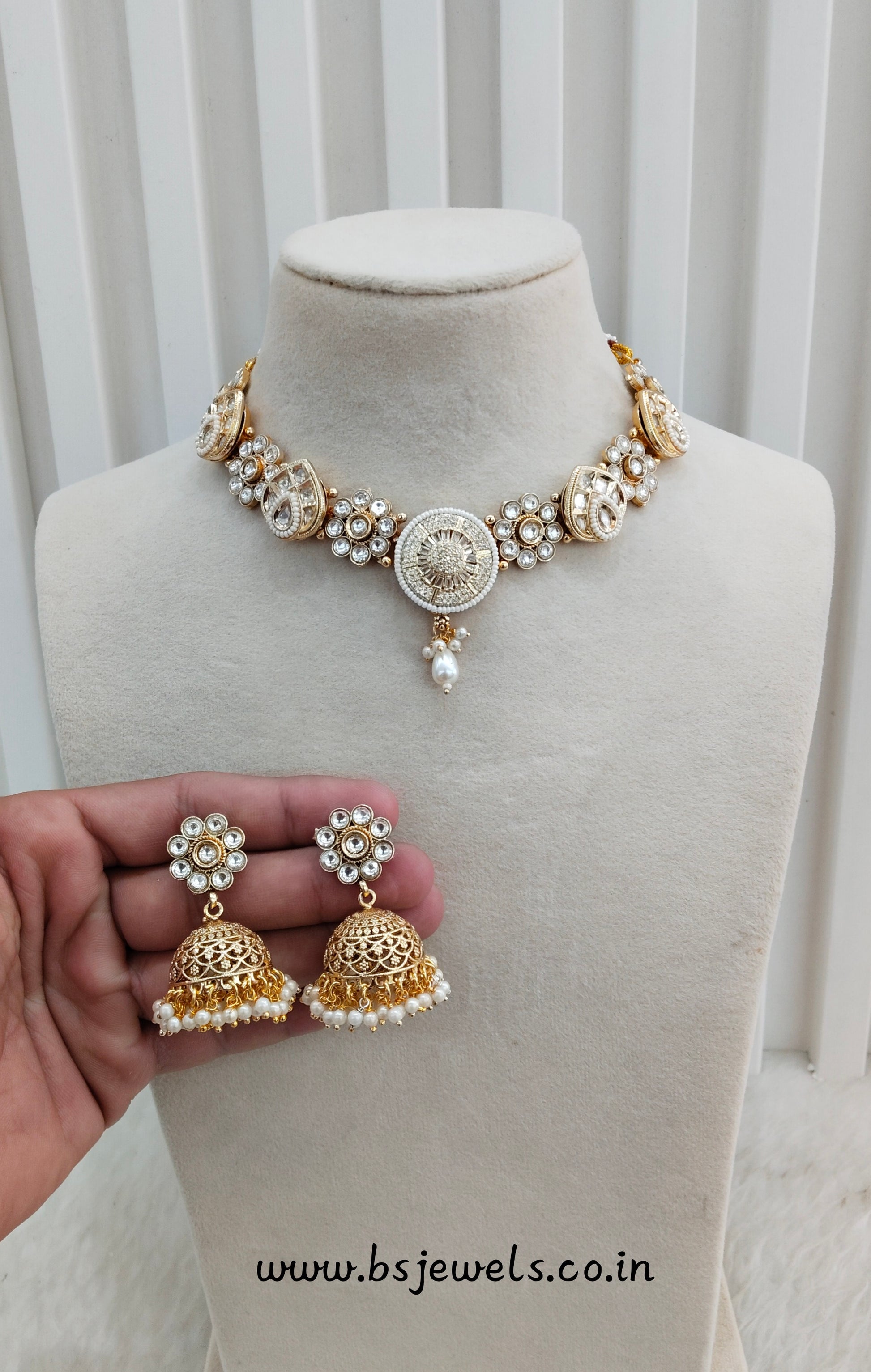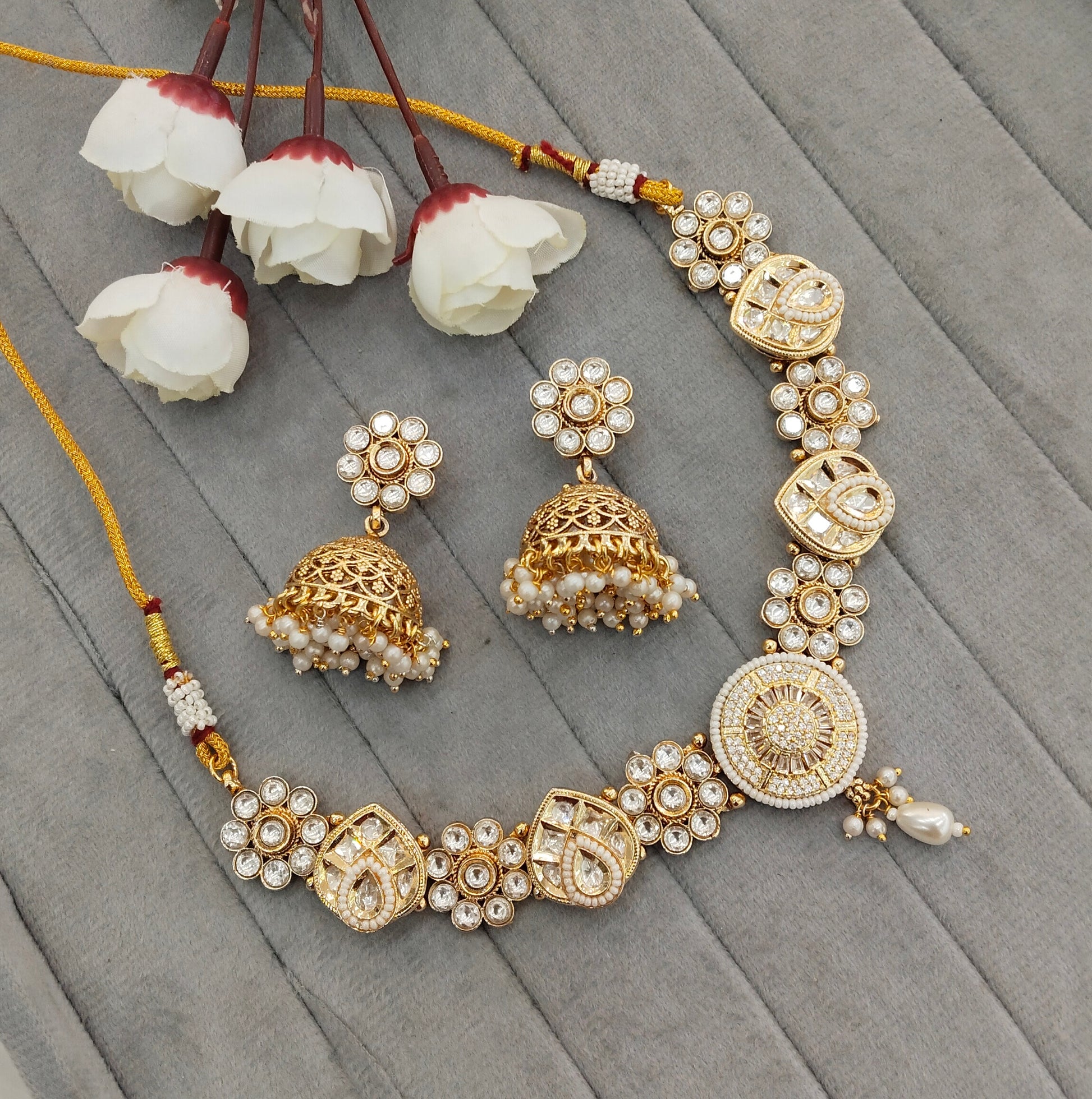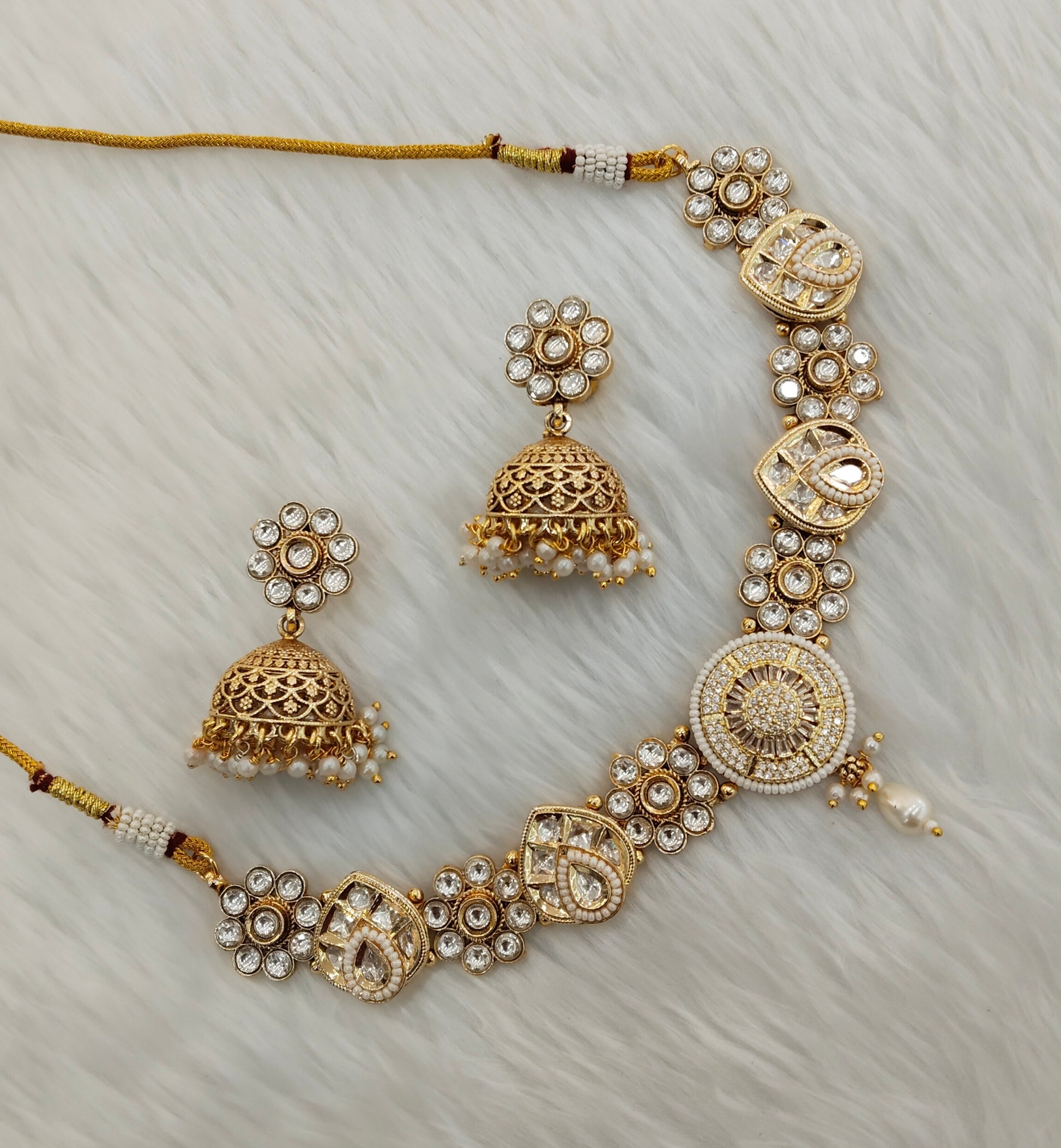 * Gold Finish Polki Necklace Set with earrings as shown in the pic.