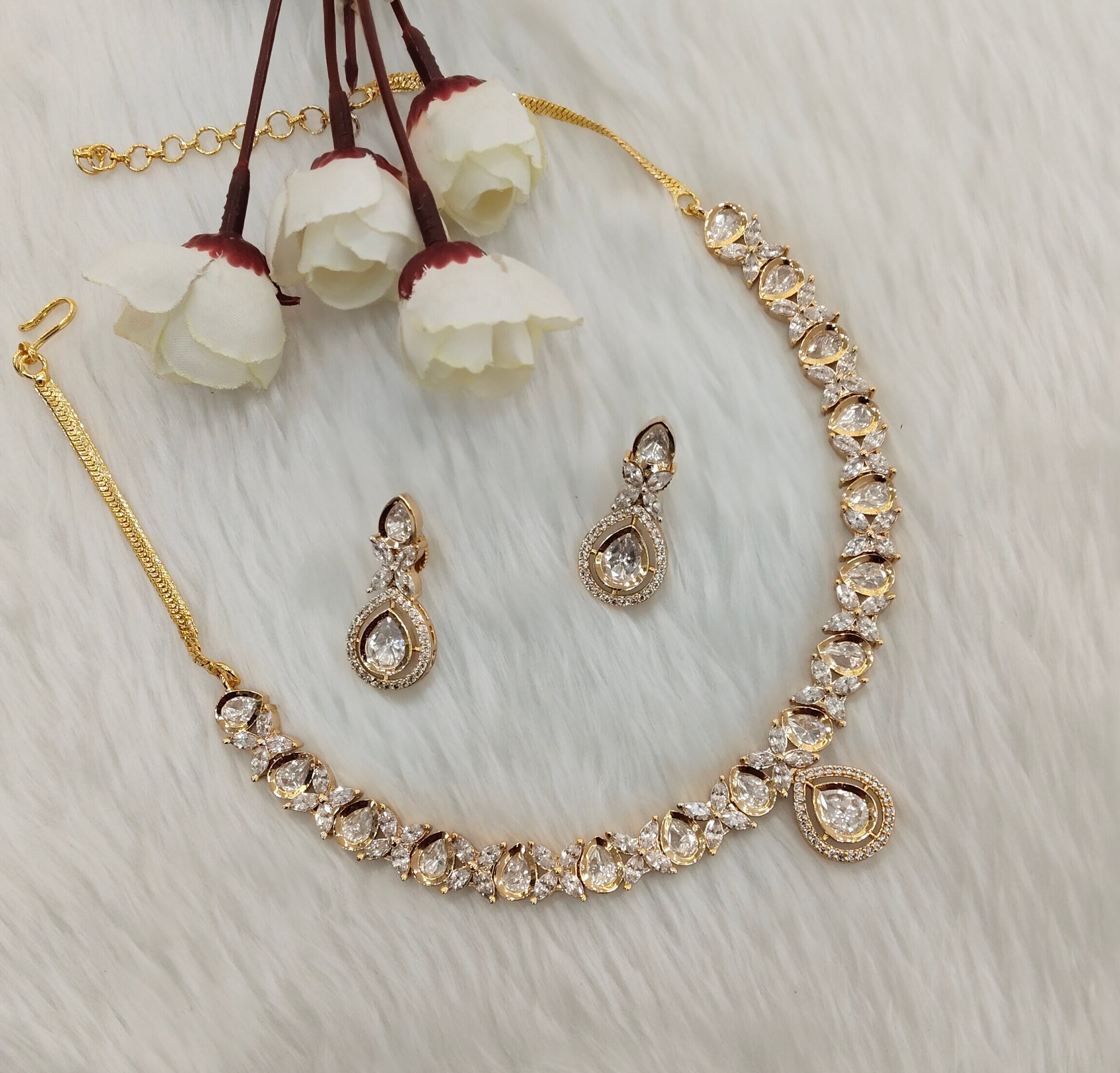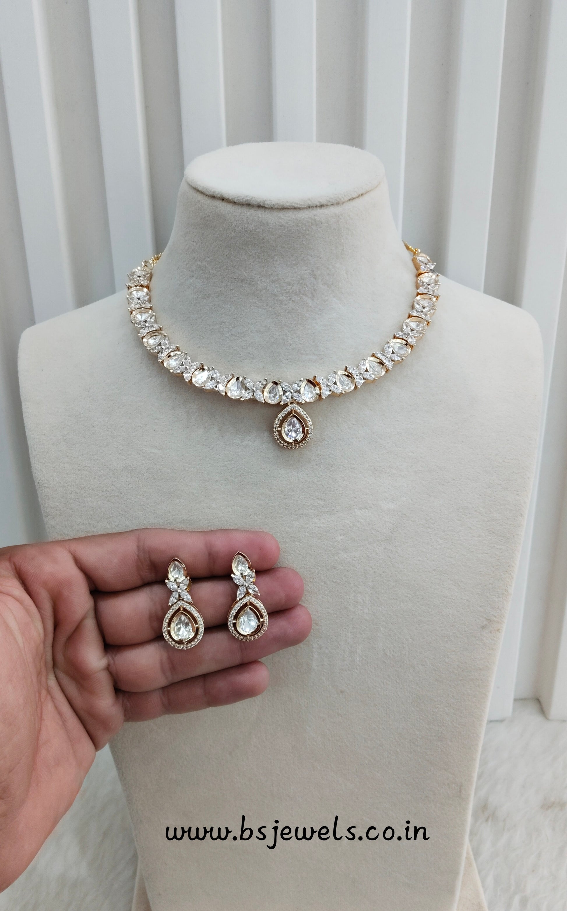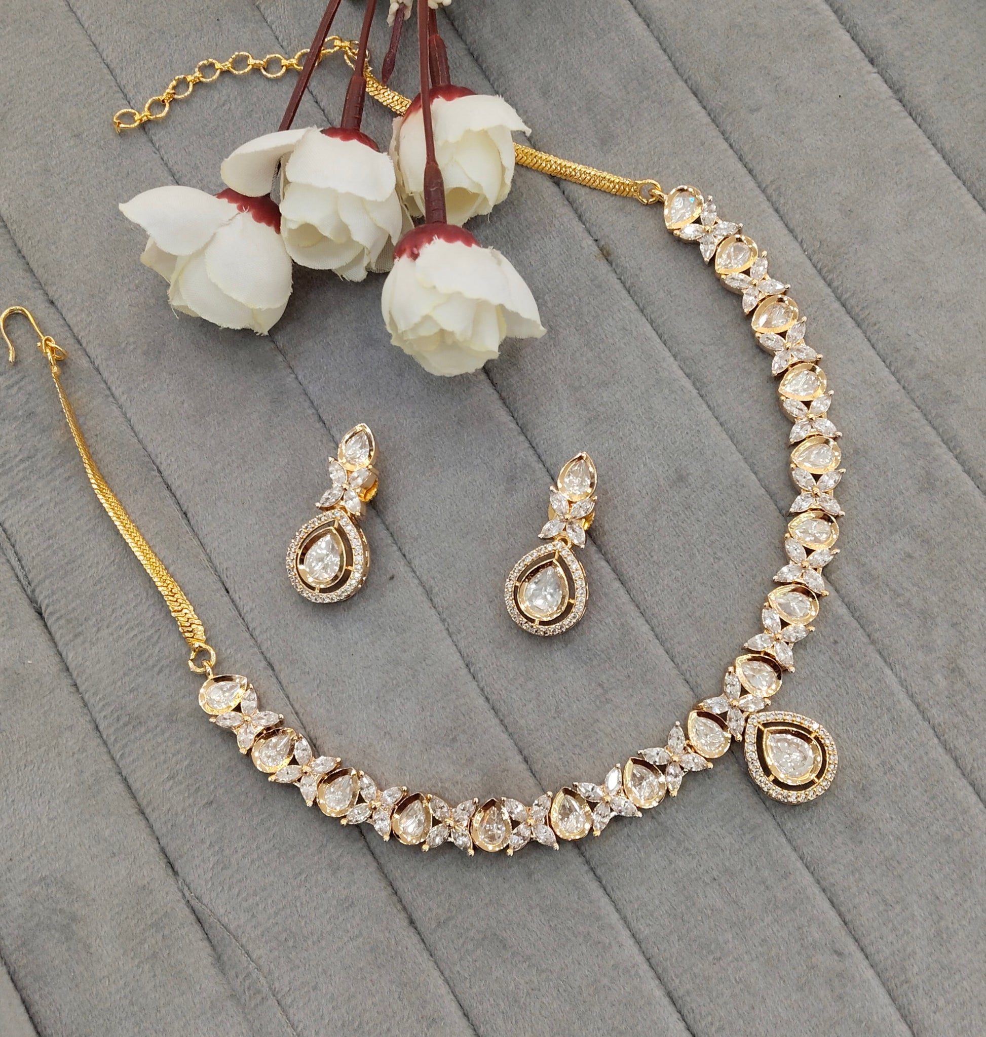* Gold Finish Polki Necklace Set with earrings as shown in the pic.