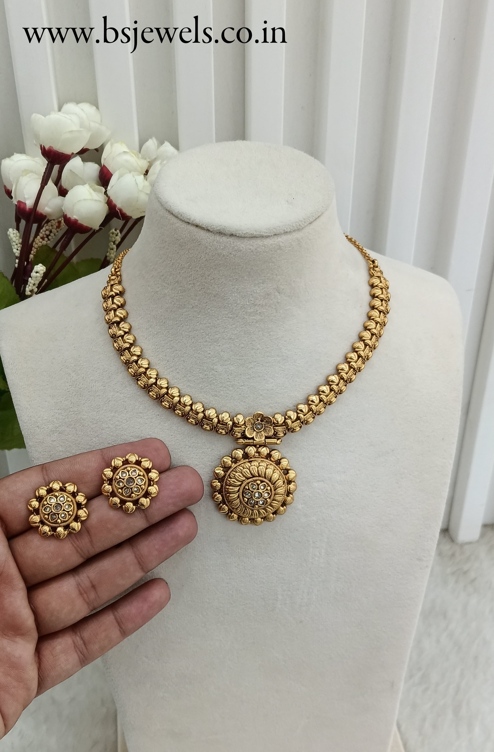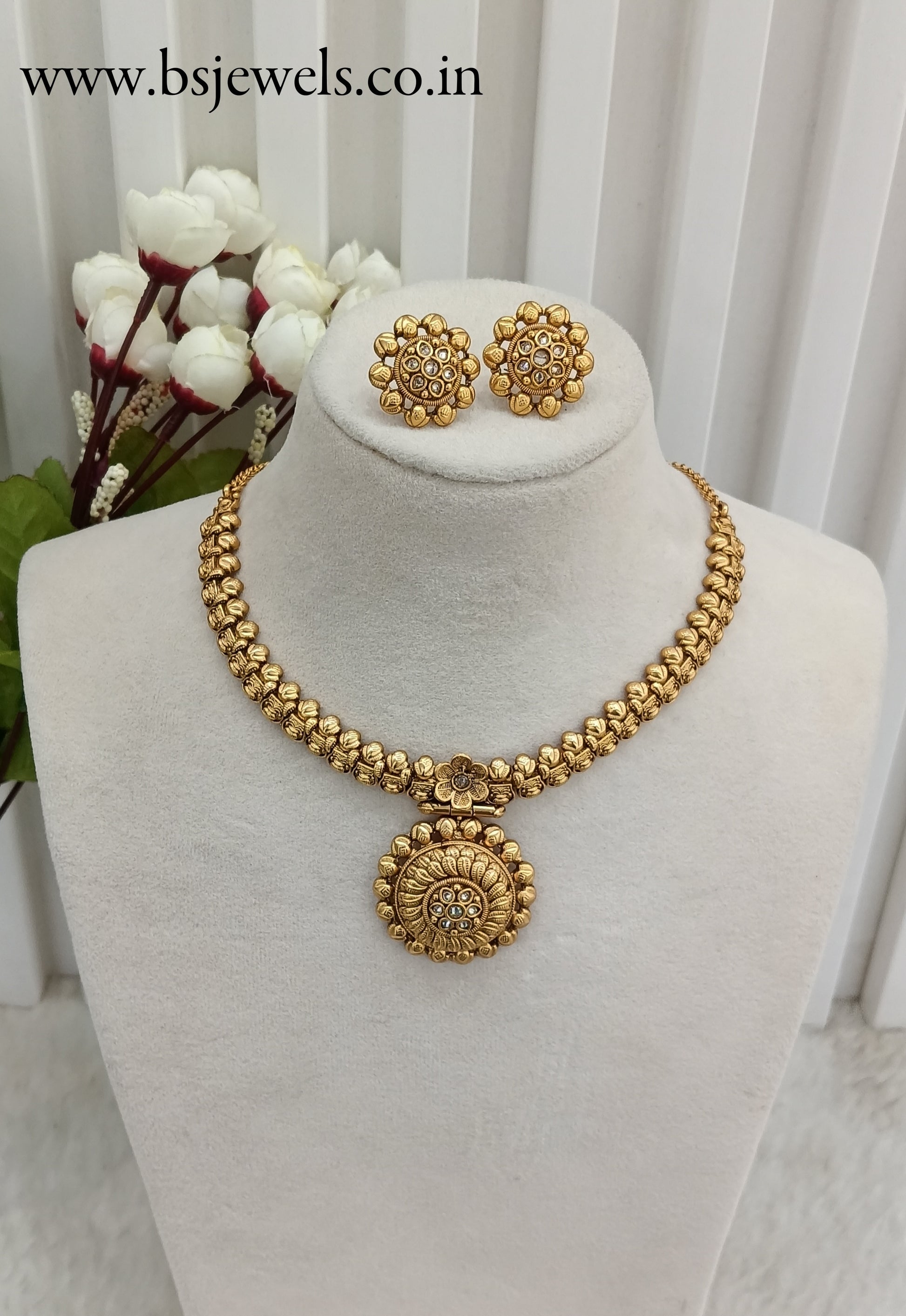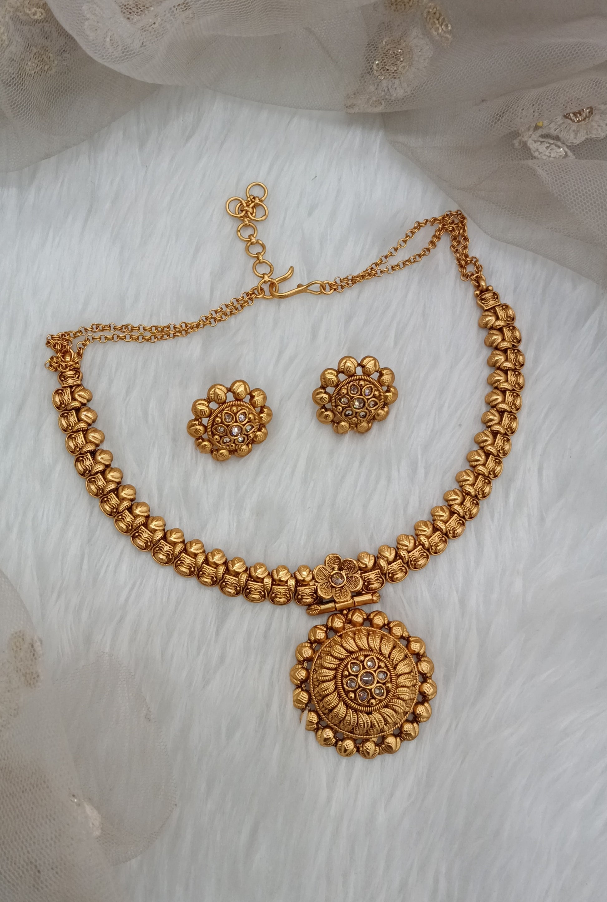 *Gold Polki Necklace set with earrings