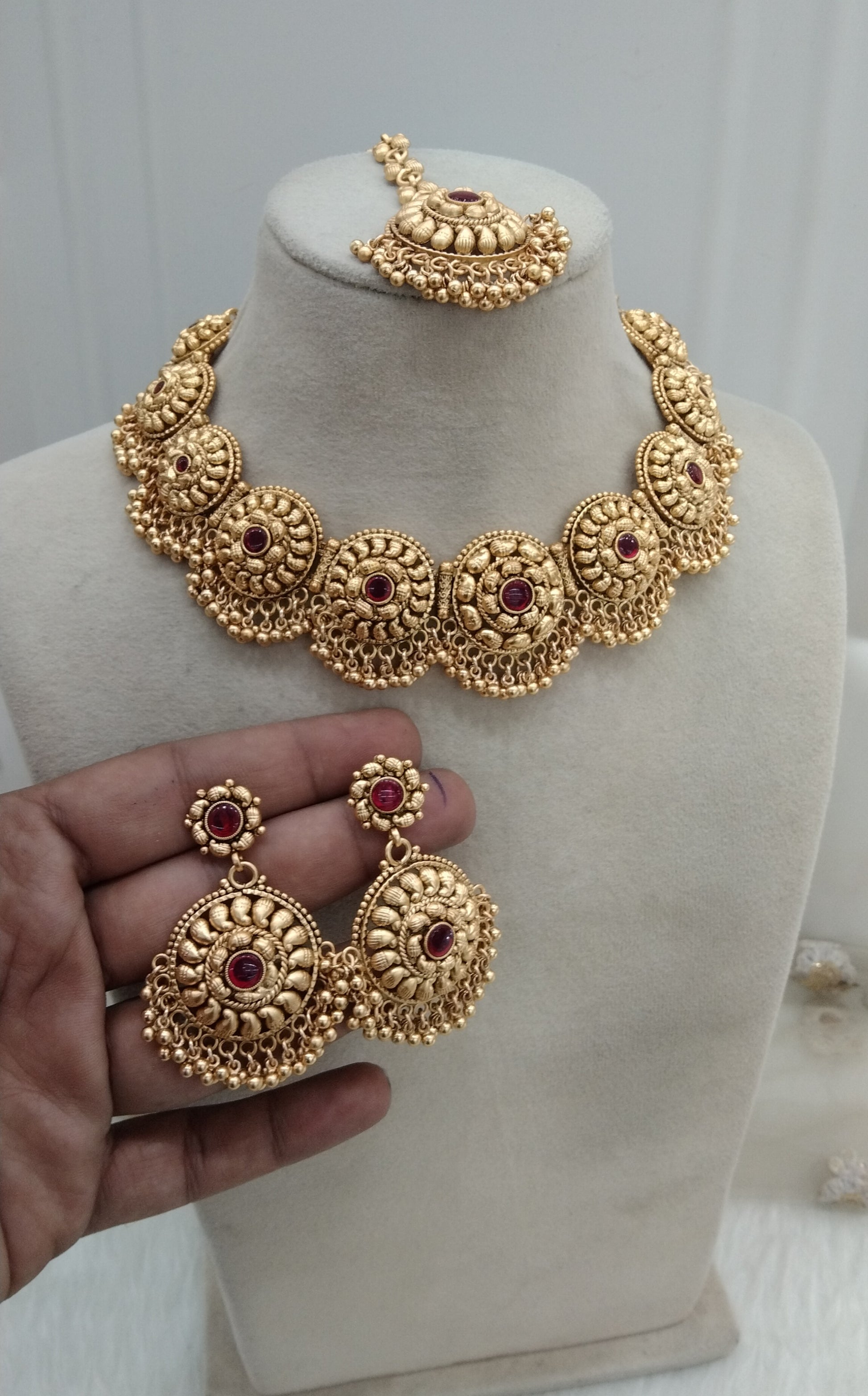 Ruby Gold Polki Necklace Jewellery Jewelry Irya Set