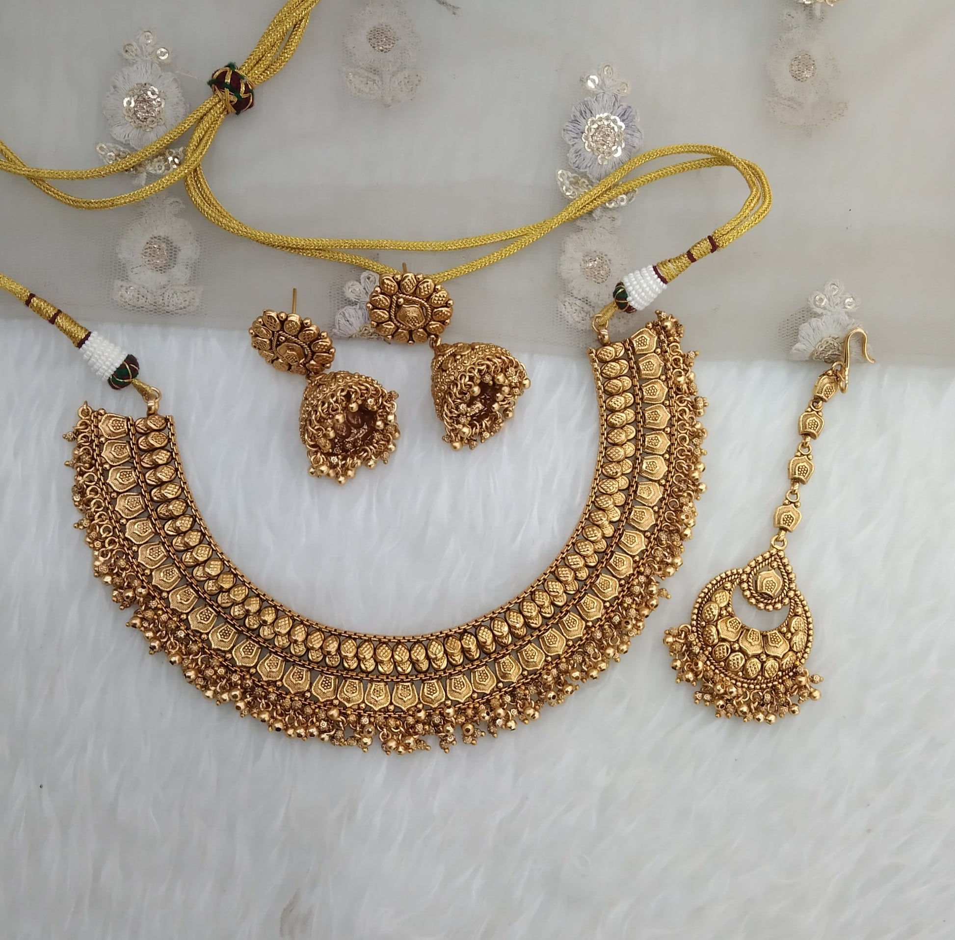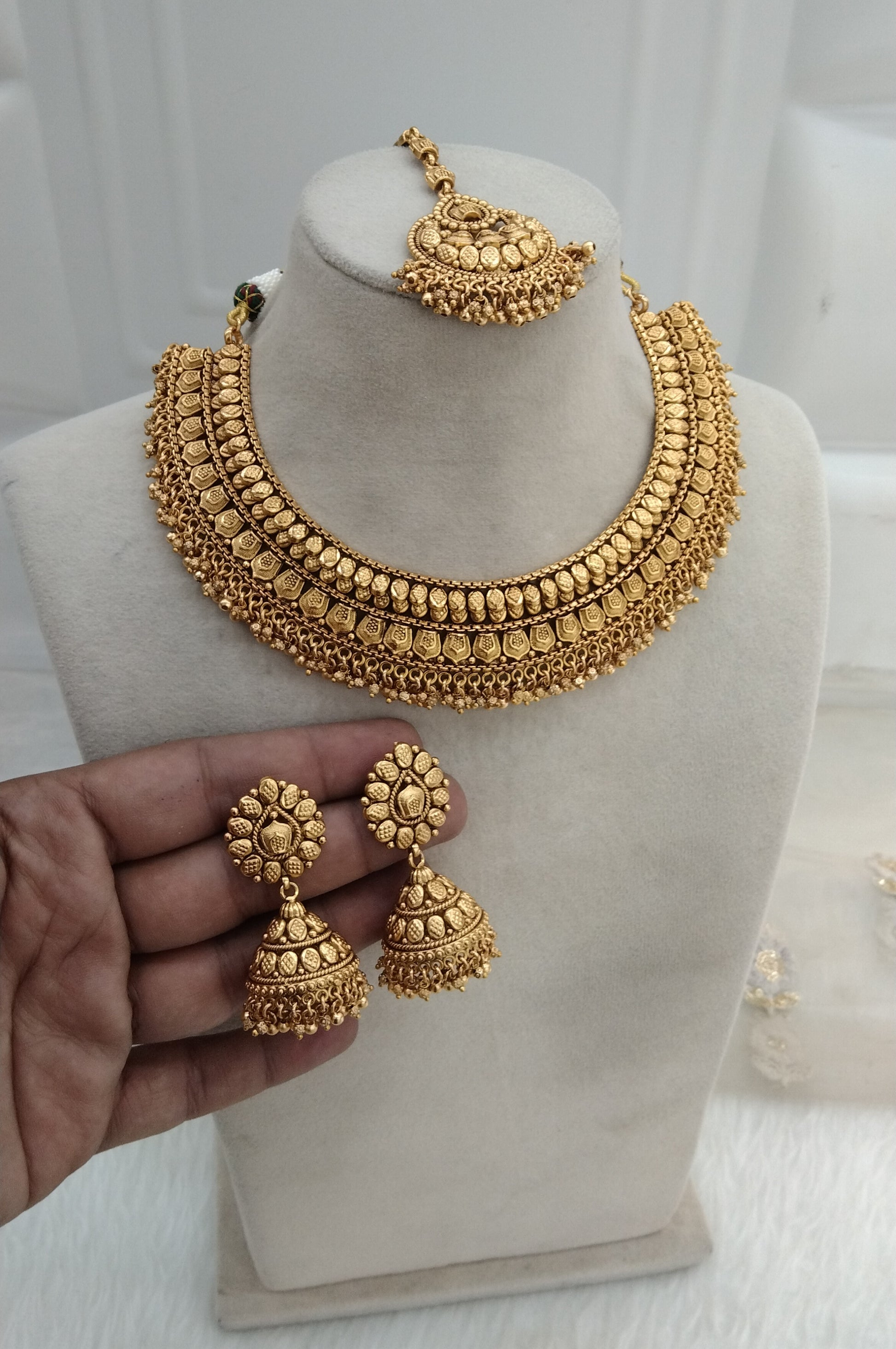 * Gold Finish Polki Necklace Set with earrings as shown in the pic.