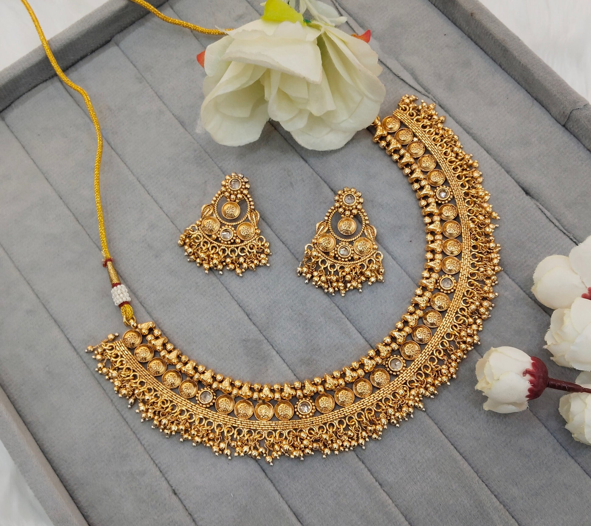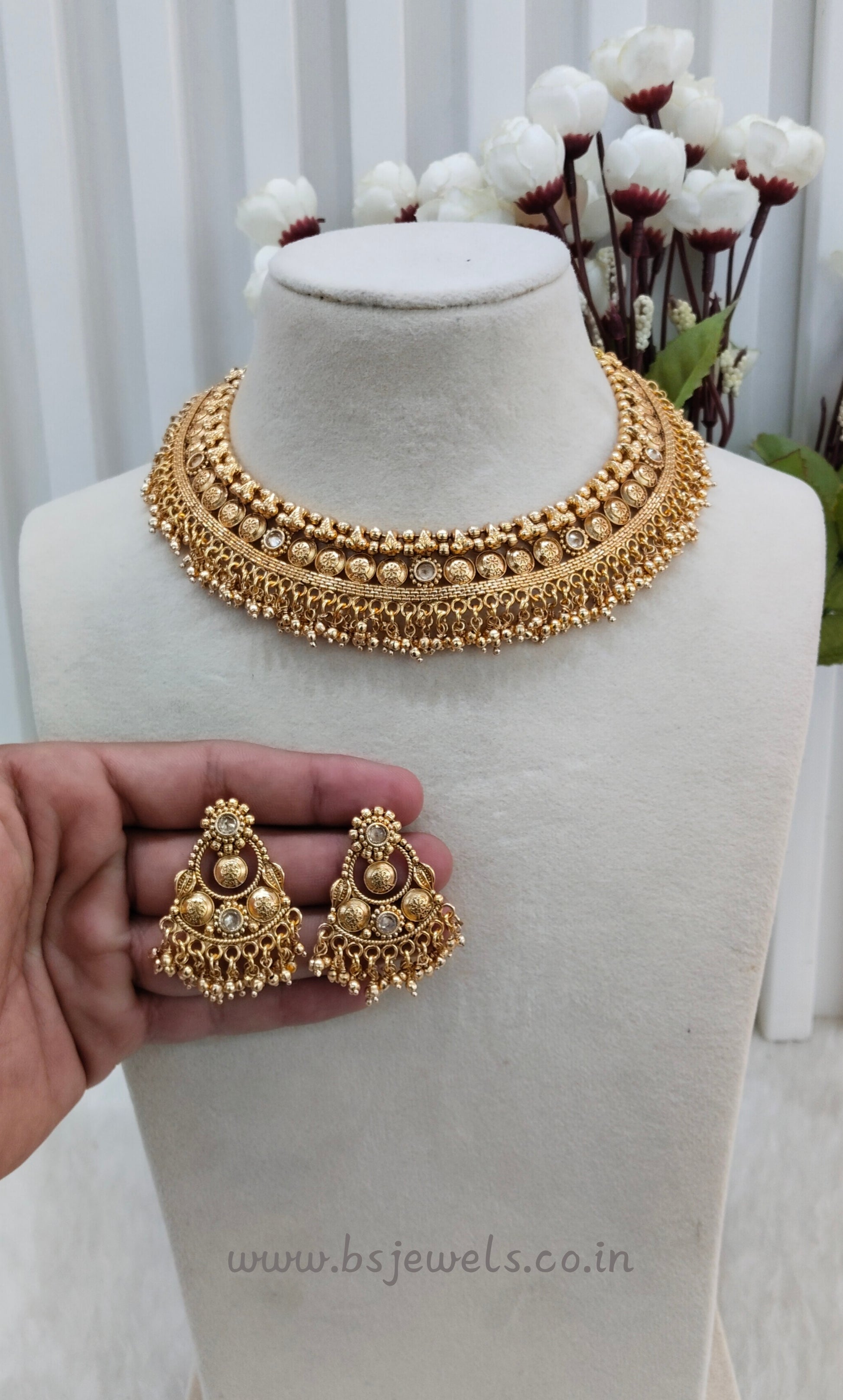 * Gold Finish Polki Necklace Set with earrings as shown in the pic.