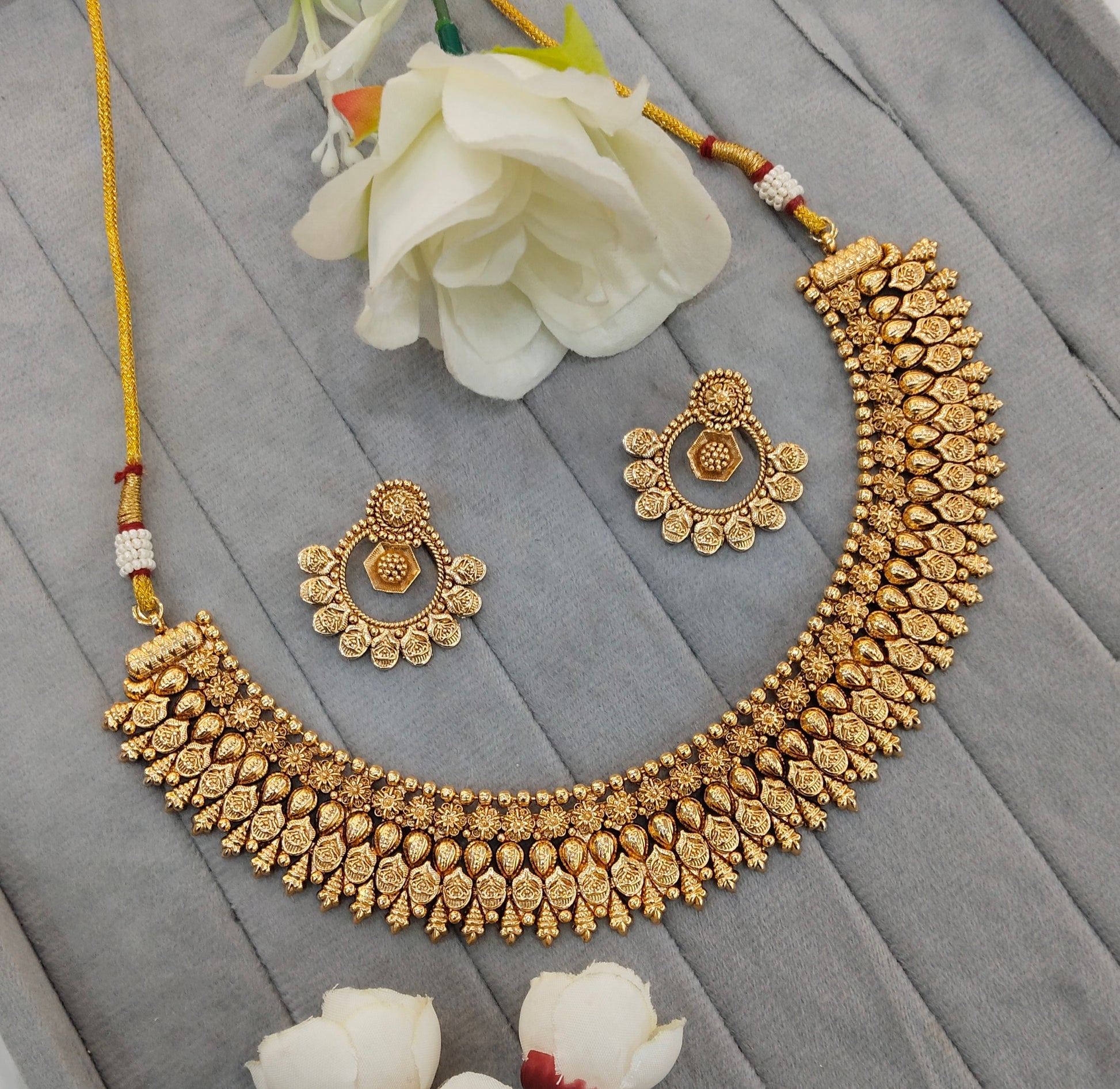 * Gold Finish Polki Necklace Set with earrings as shown in the pic.