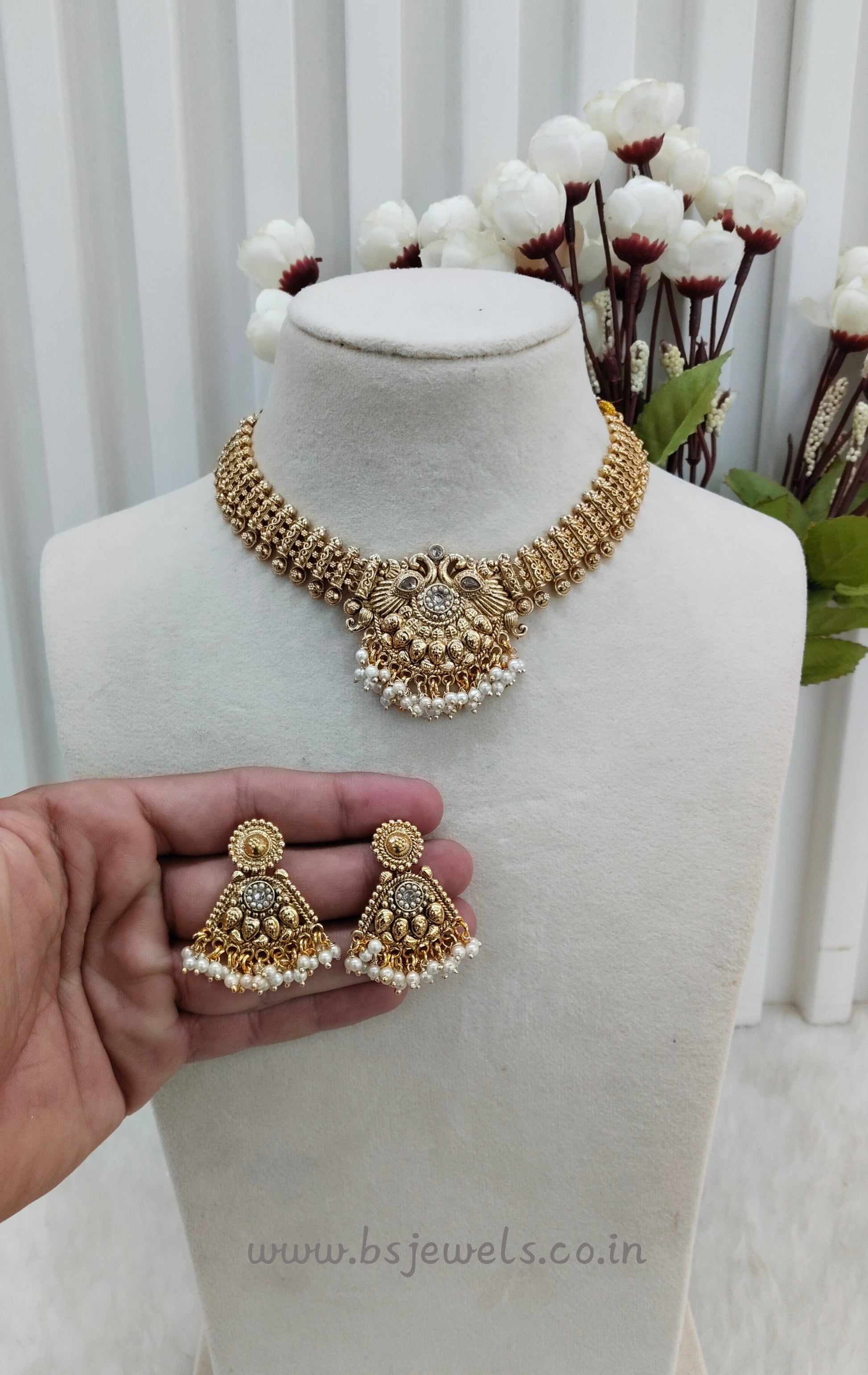 * Gold Finish Polki Necklace Set with earrings as shown in the pic.