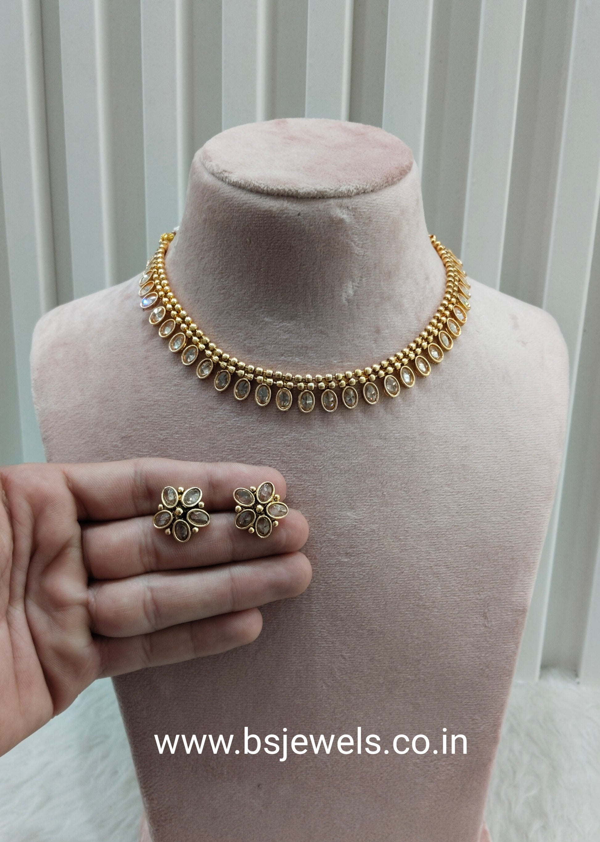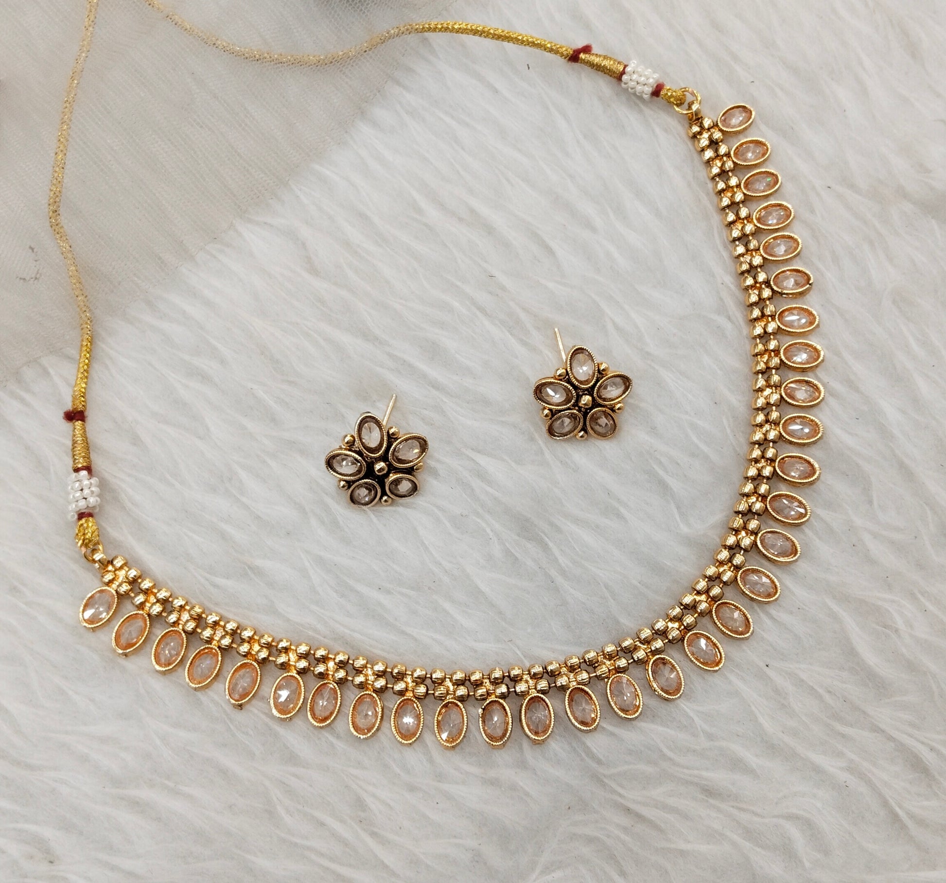 * Gold Finish Polki Necklace Set with earrings as shown in the pic.