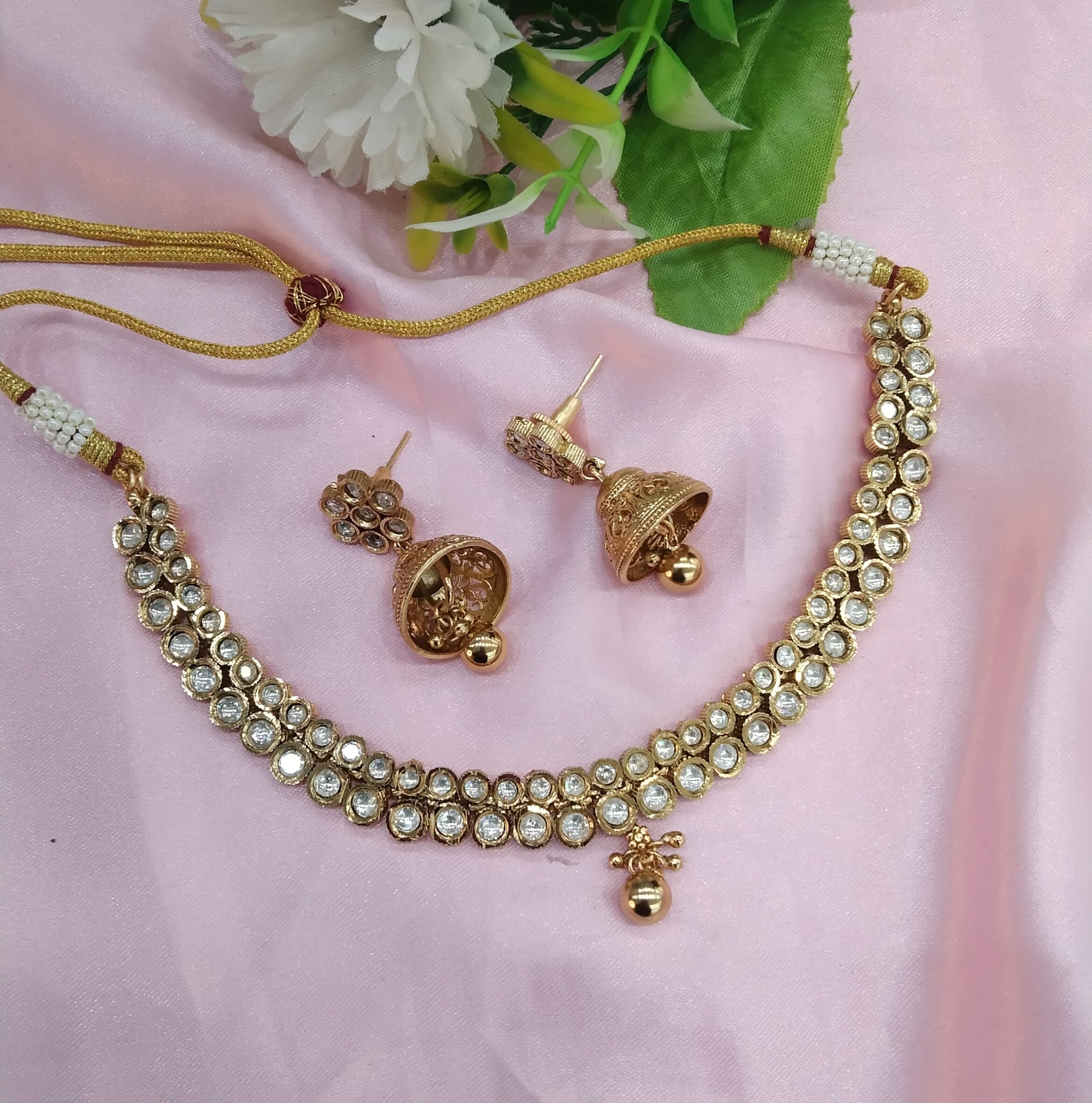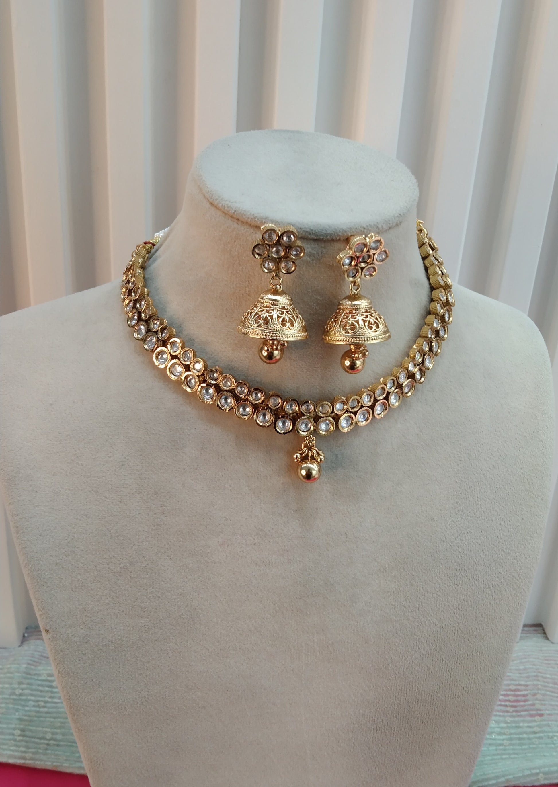 Gold Polki Jhumka Necklace Jewellery Studio Set