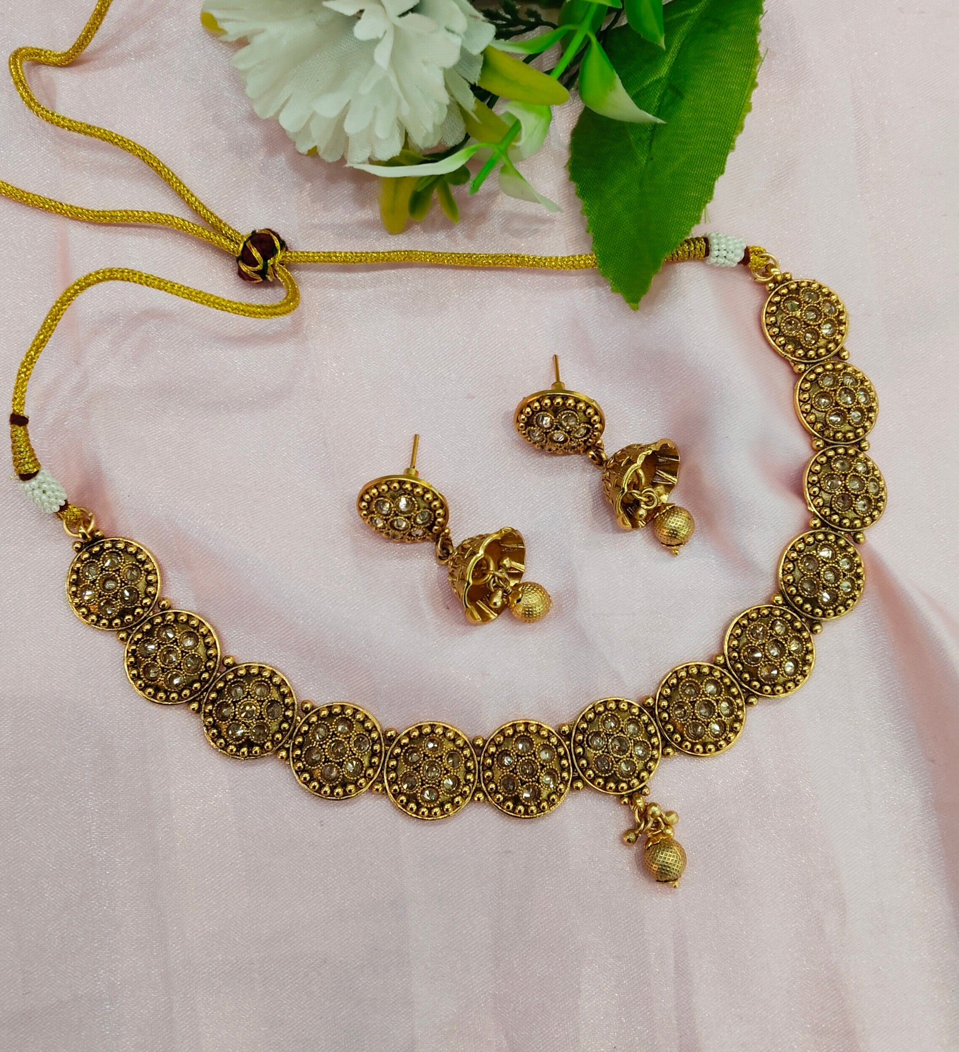 Gold Polki Necklace Jhumka Jewellery Studio Set