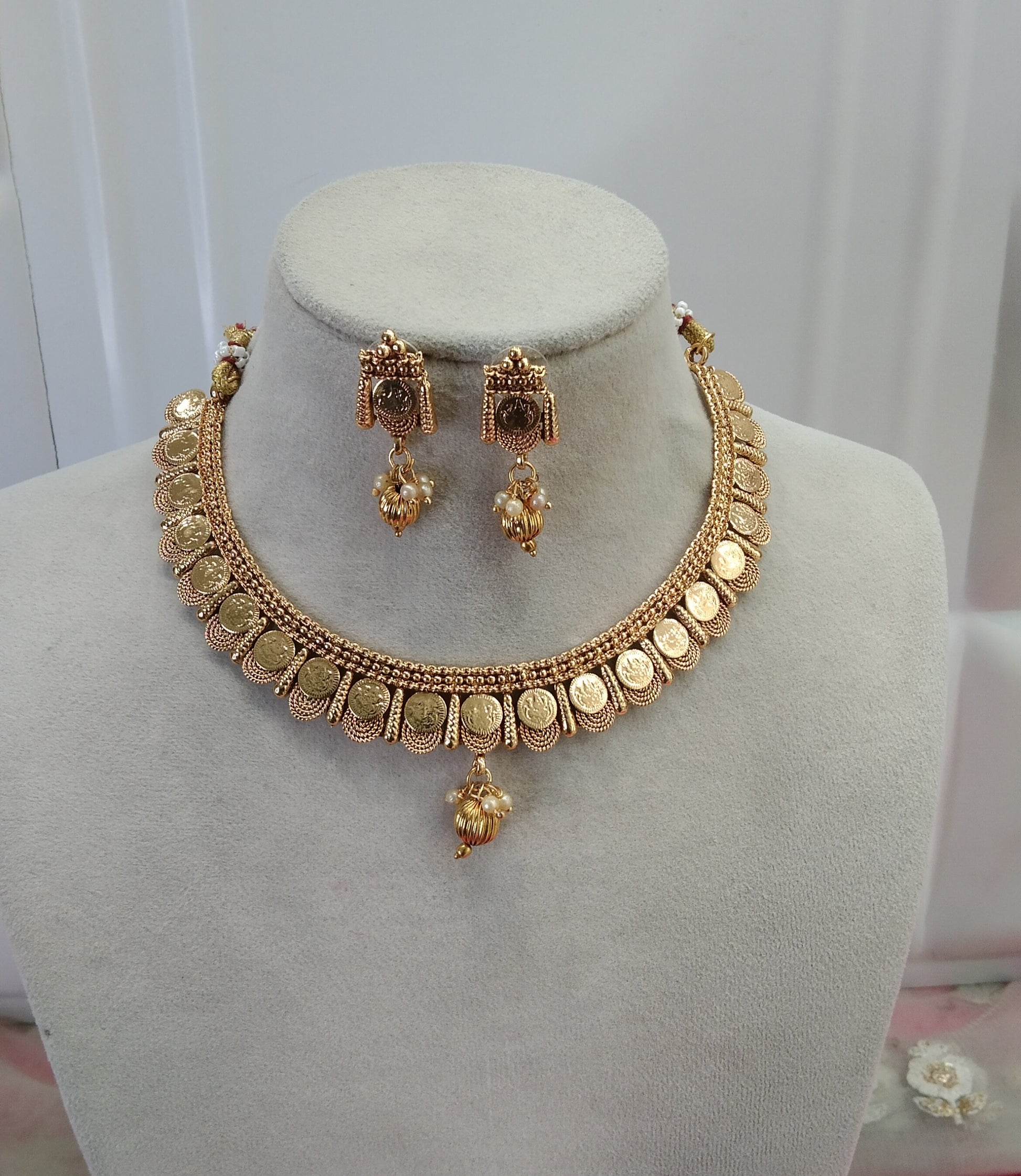 * Gold Finish Polki Necklace Set with earrings as shown in the pic.