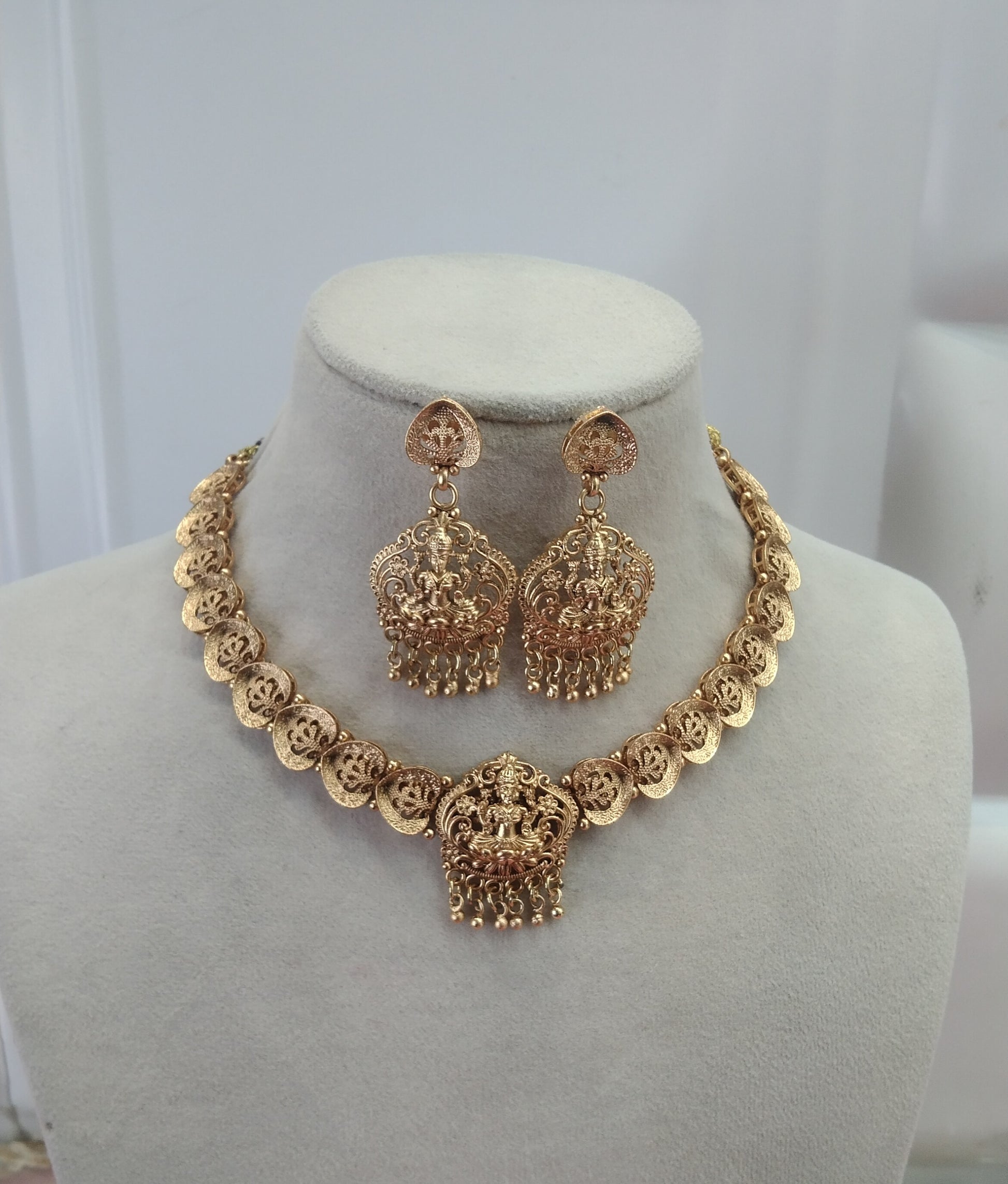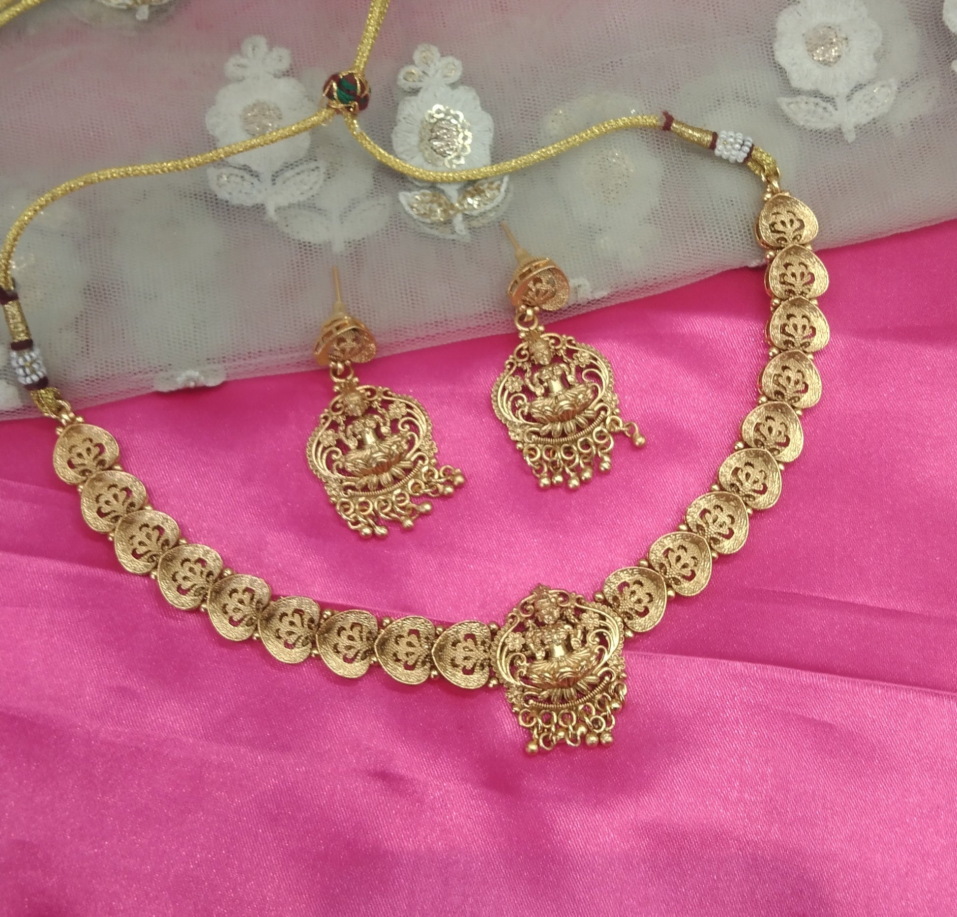Gold Polki Temple Necklace Jewellery Chivi Set