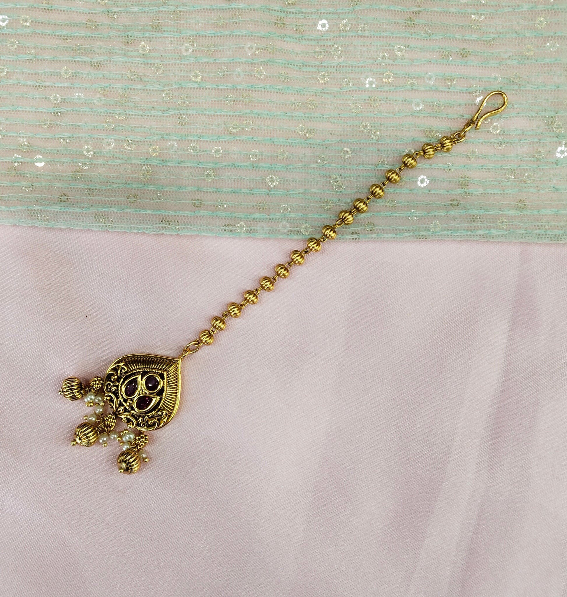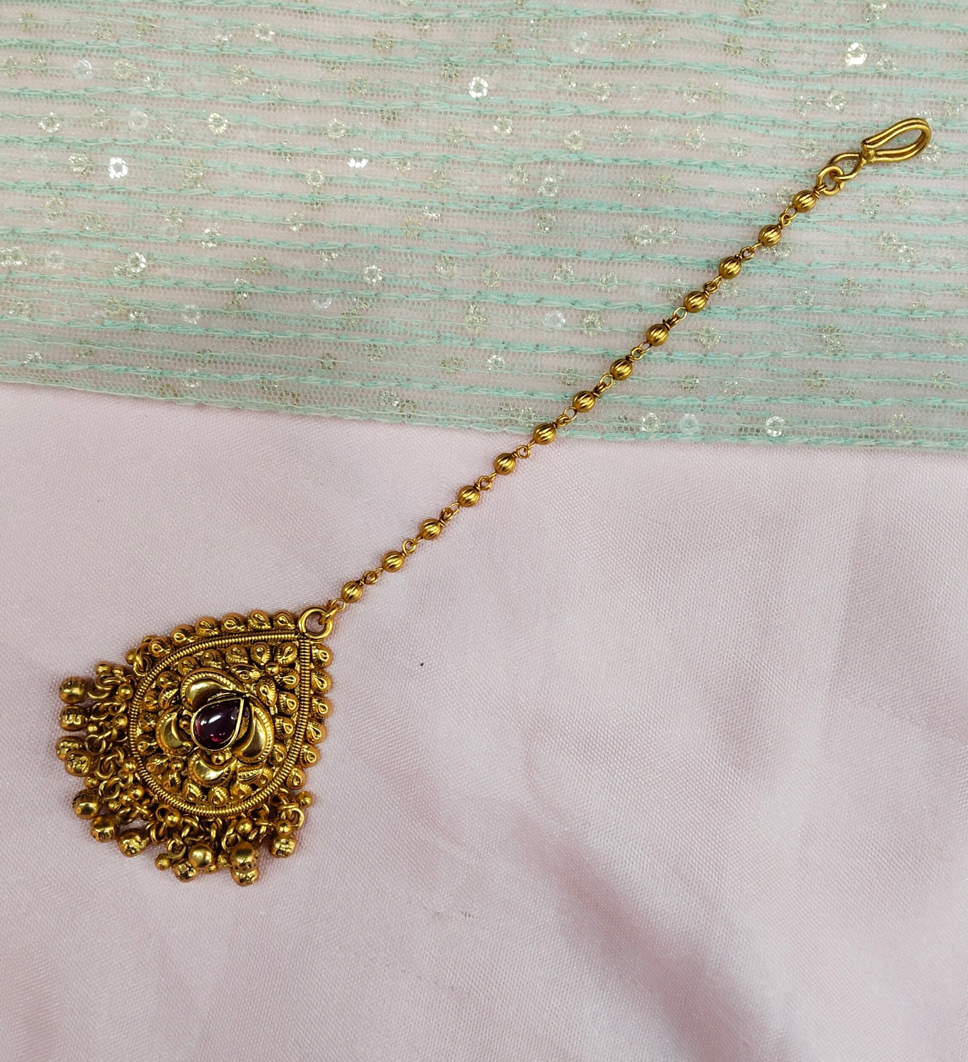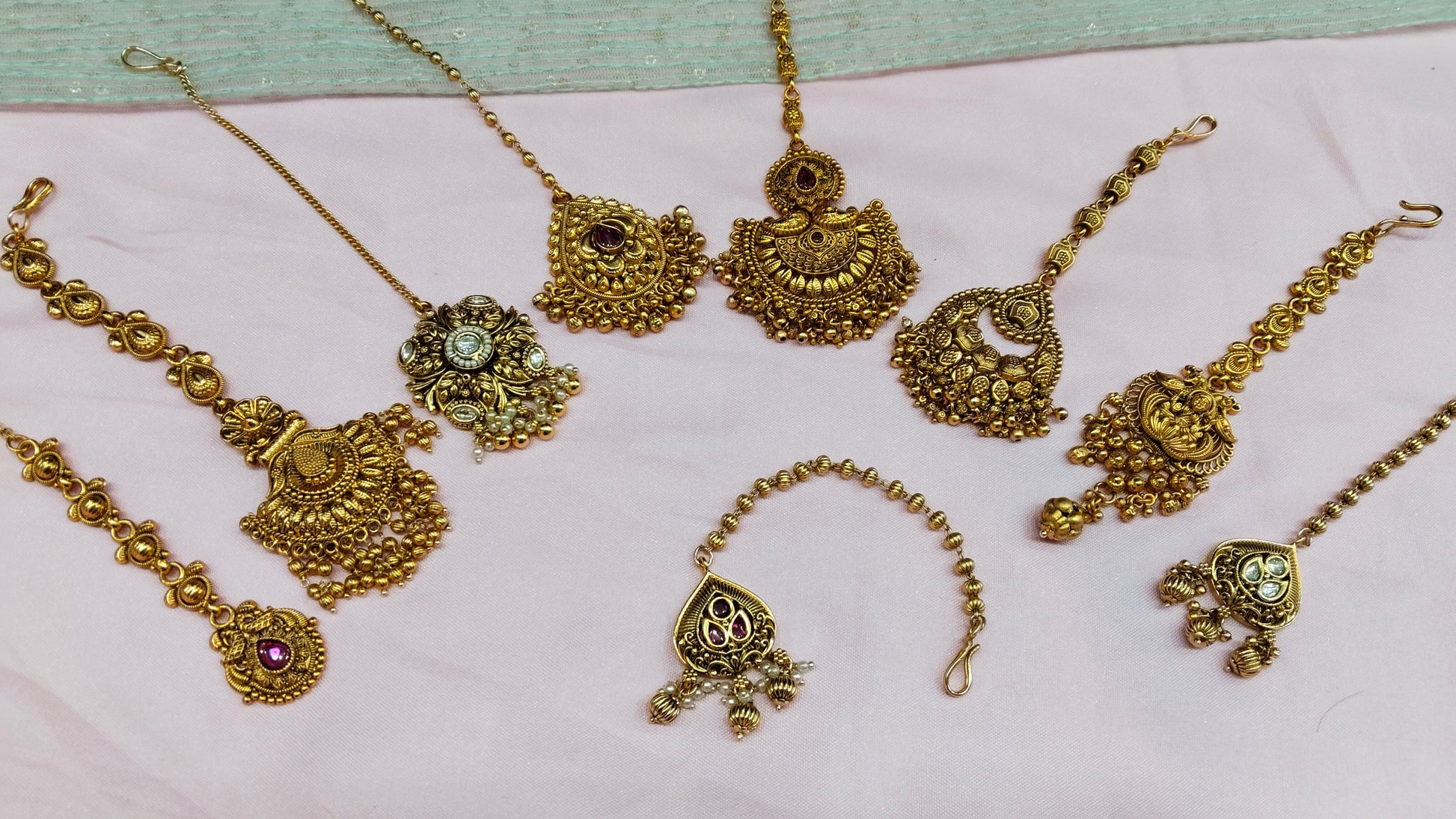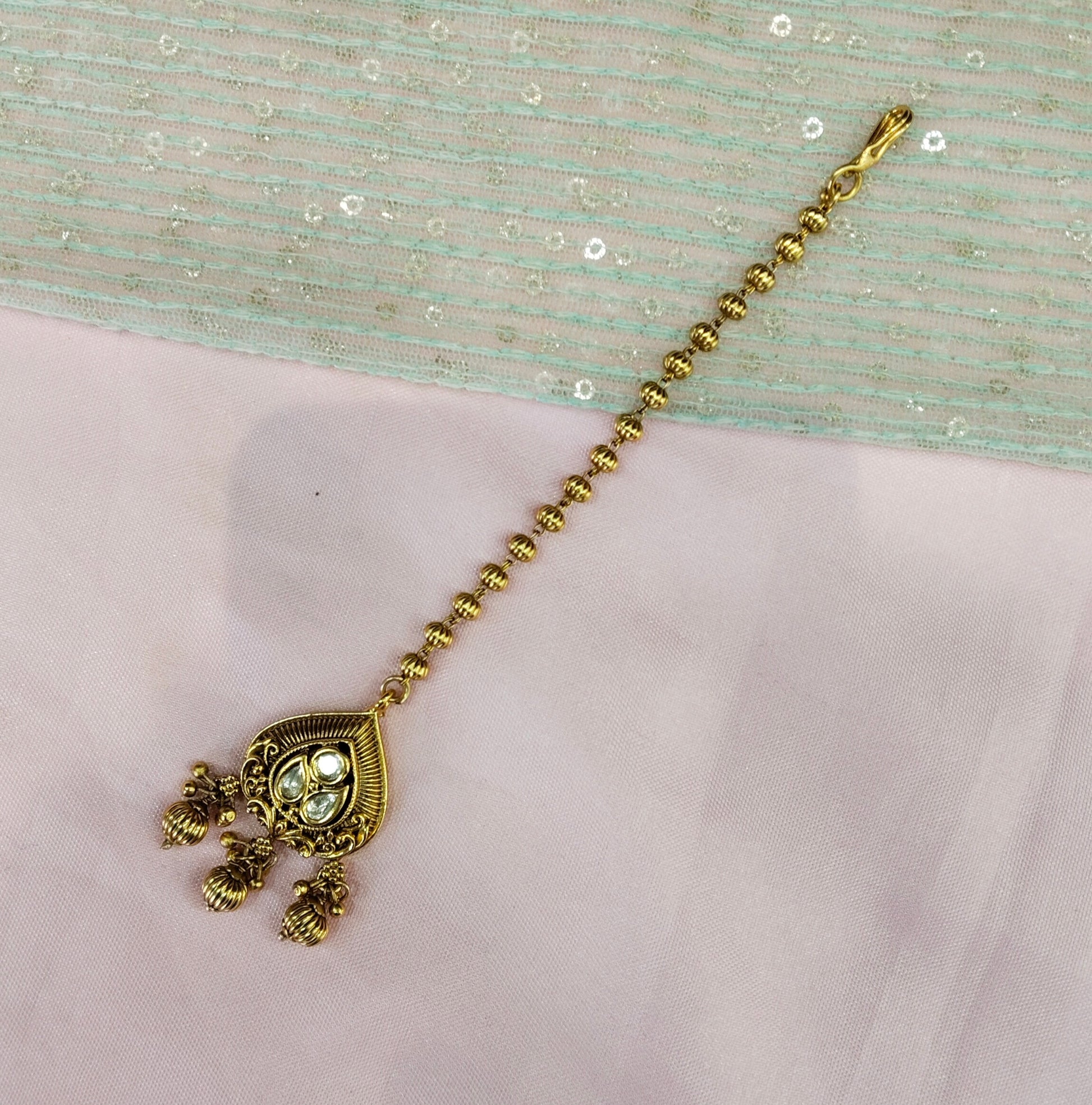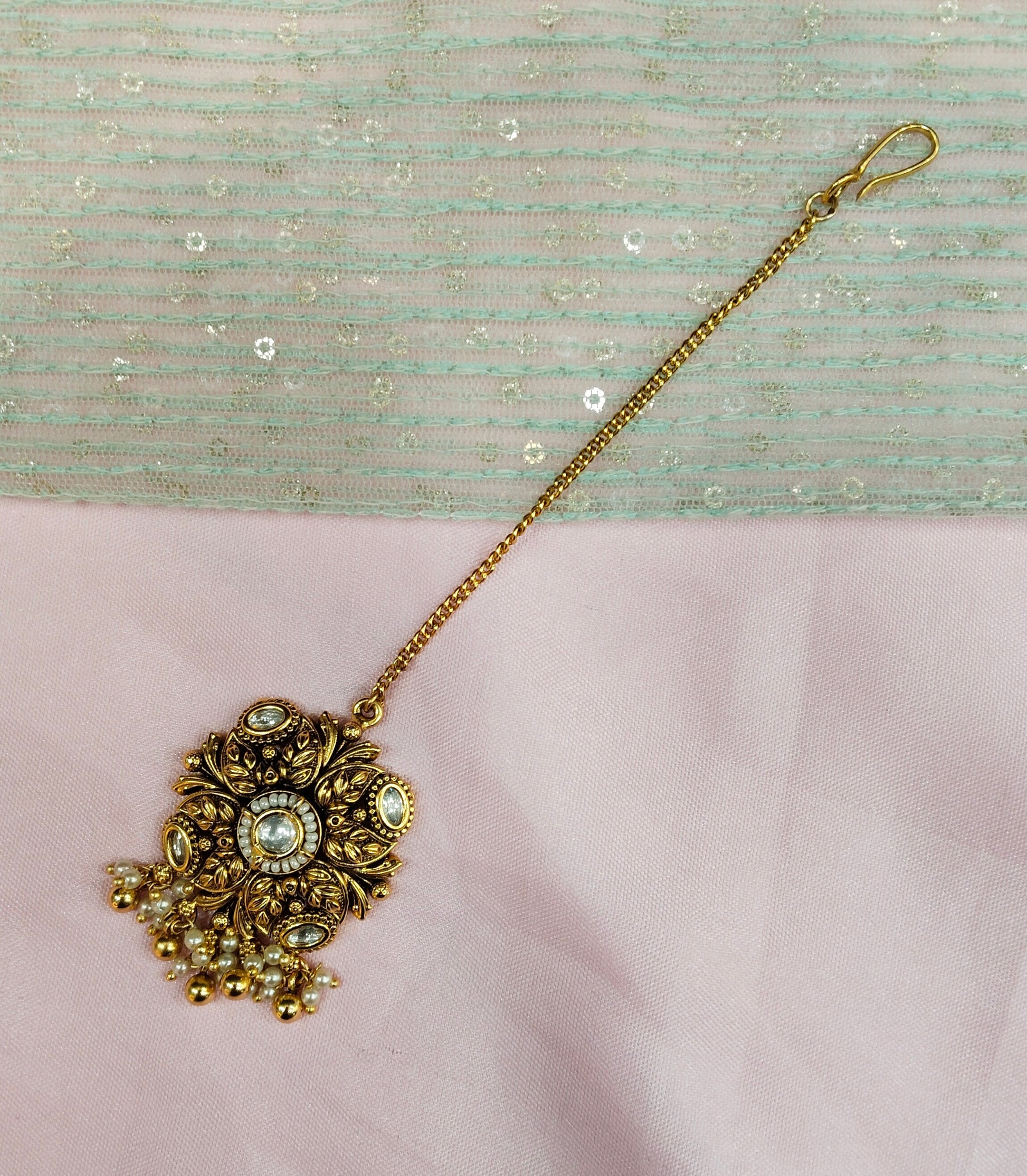 Gold polki Tikka Jewellery Headpiece Gurpiar Set