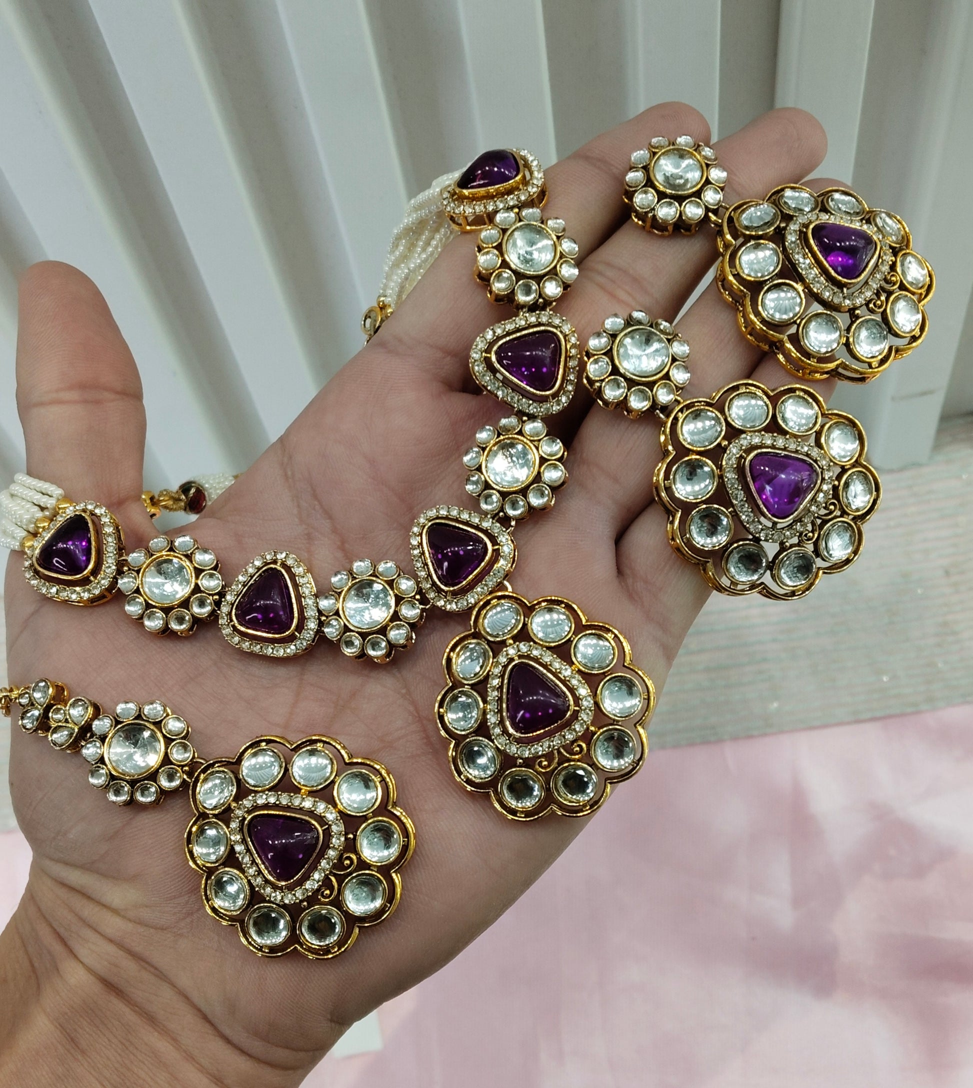 Purple Gold Kundan Necklace Jewellery Kajal Set