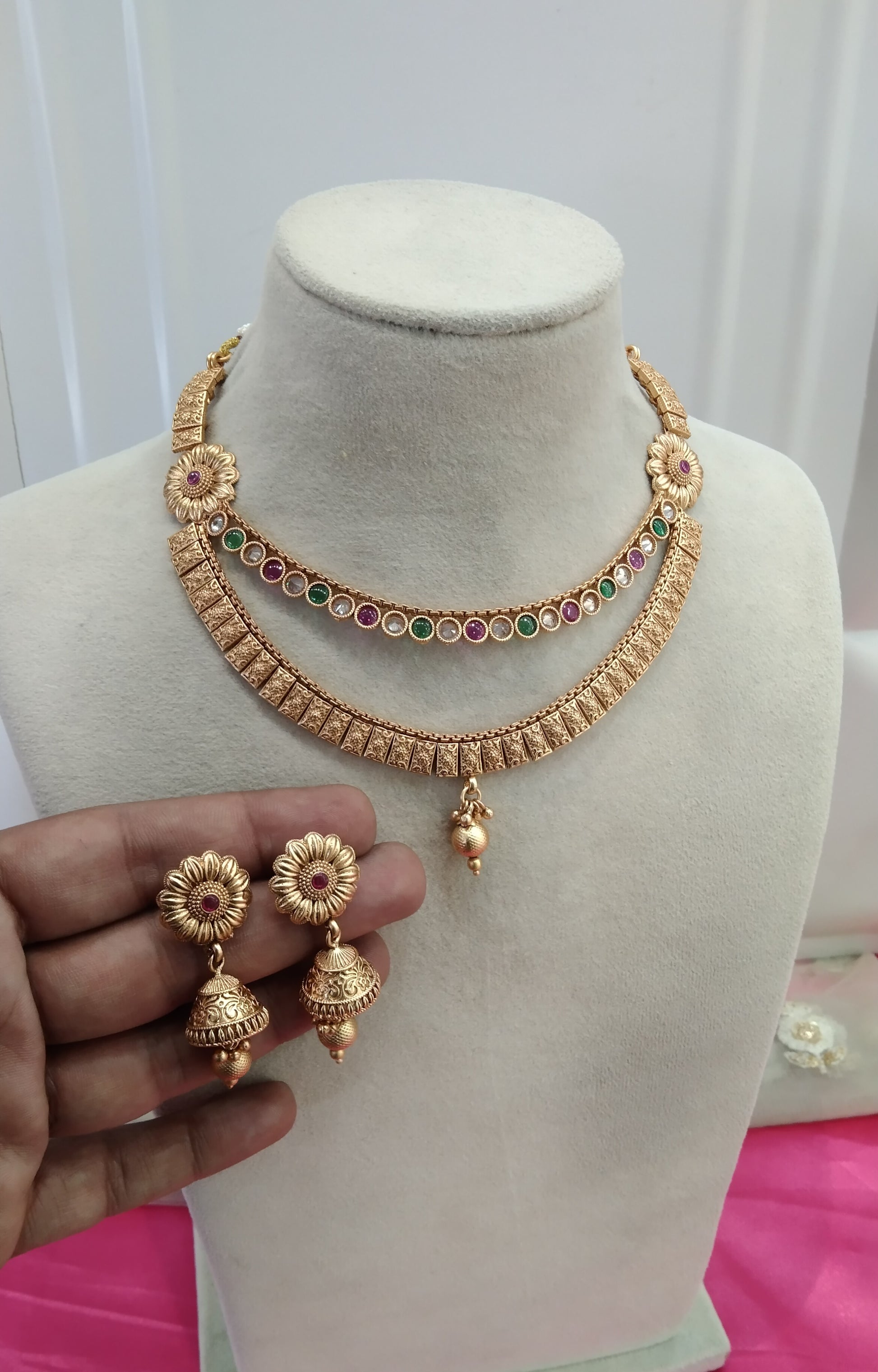 * Gold Finish Polki Necklace Set with earrings as shown in the pic.