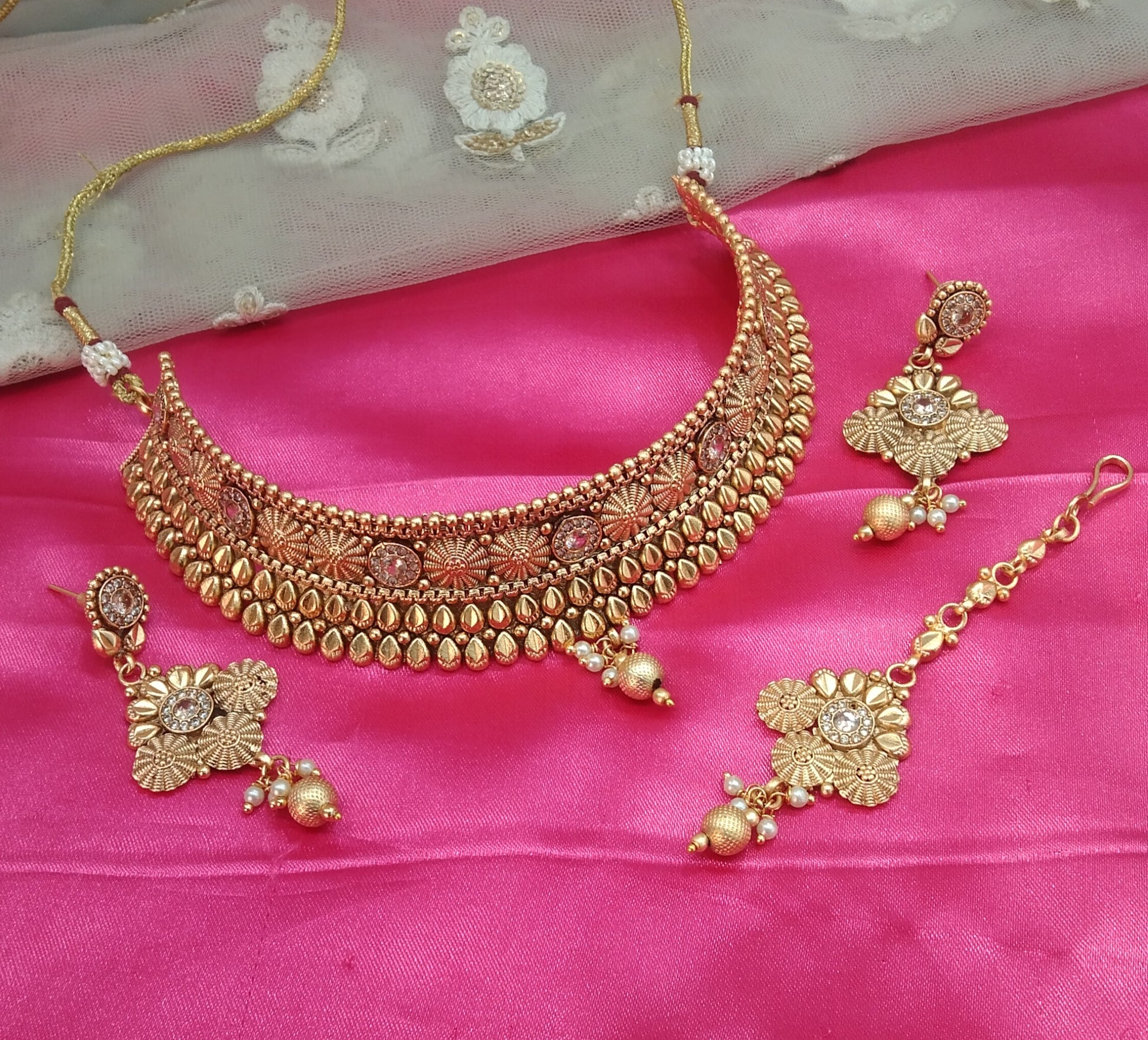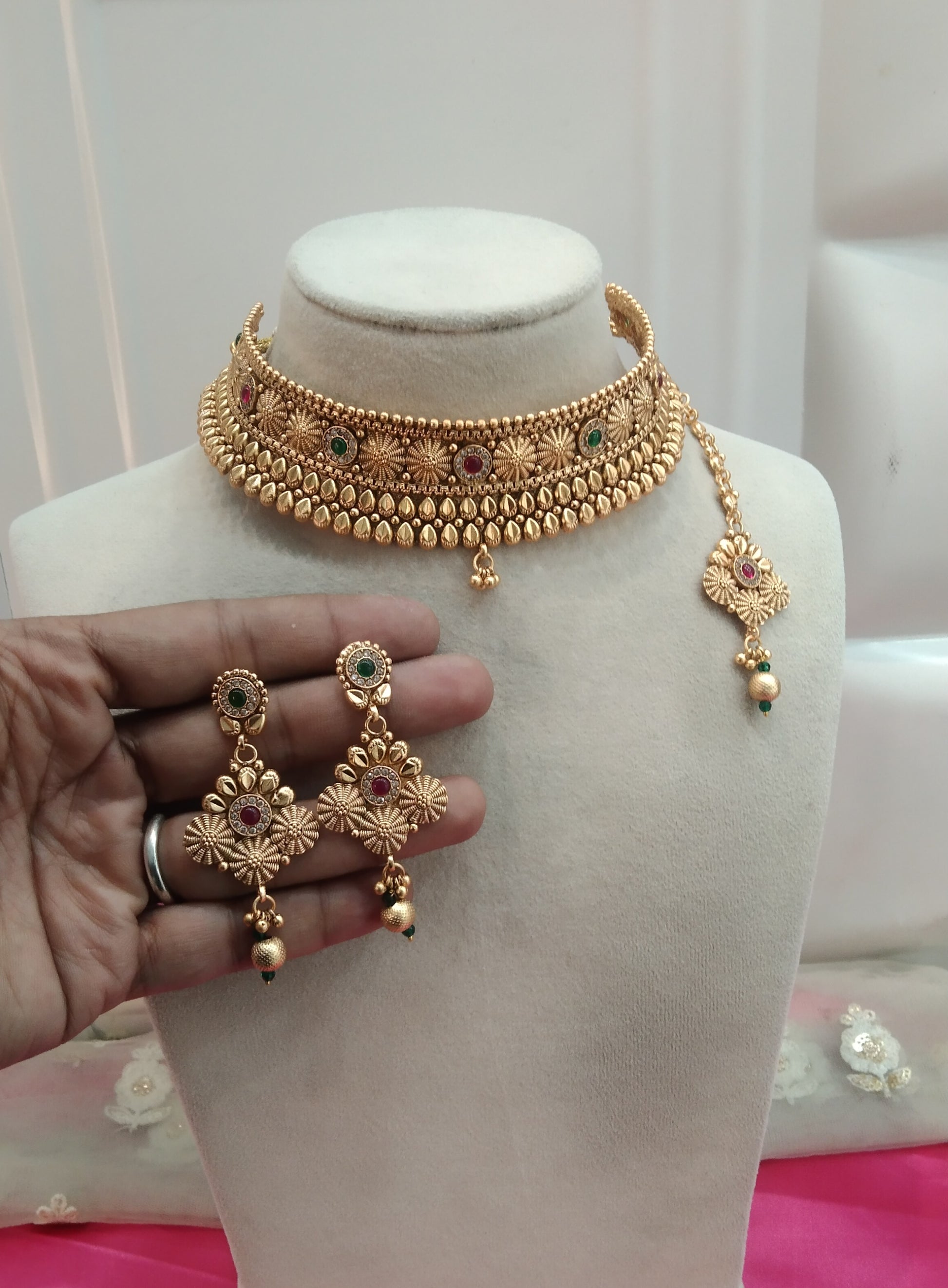 * Gold Finish Polki Choker Set with earrings as shown in the pic.