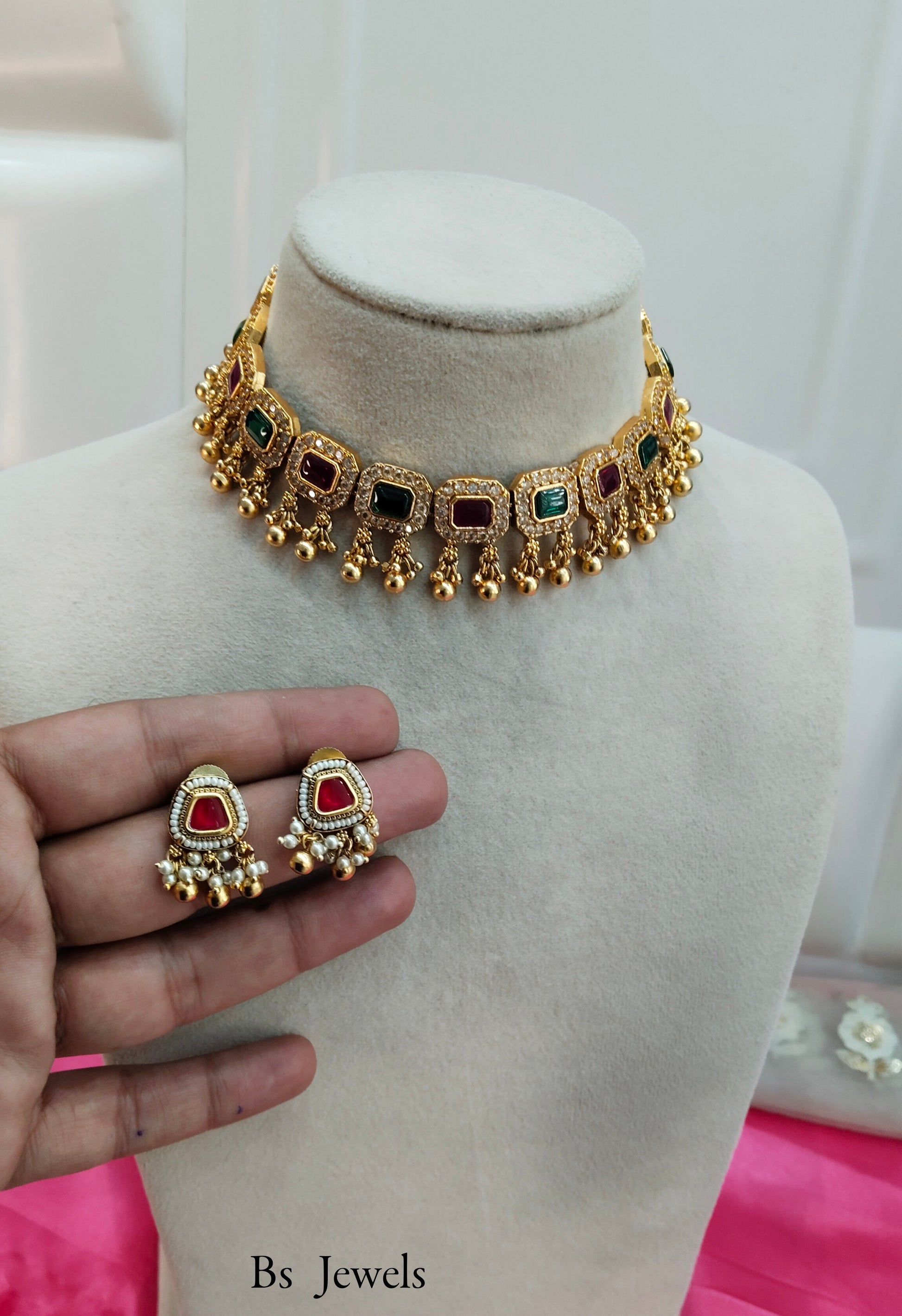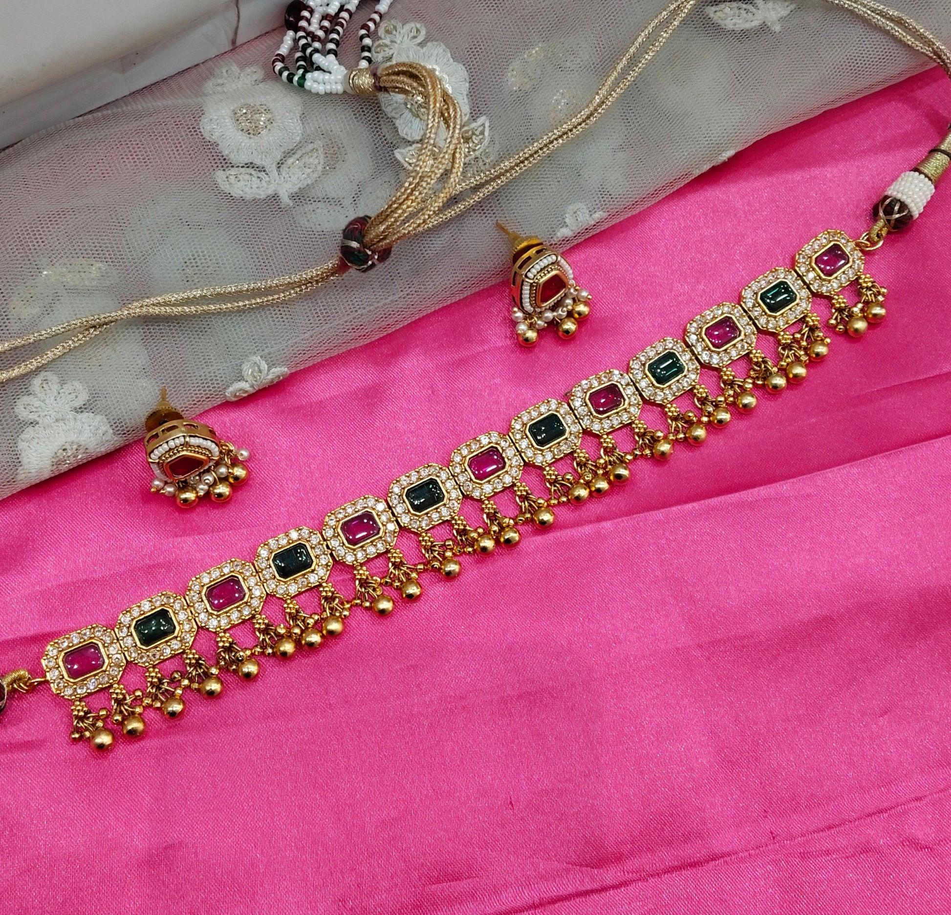 * Gold Finish Polki Choker Set with earrings as shown in the pic.