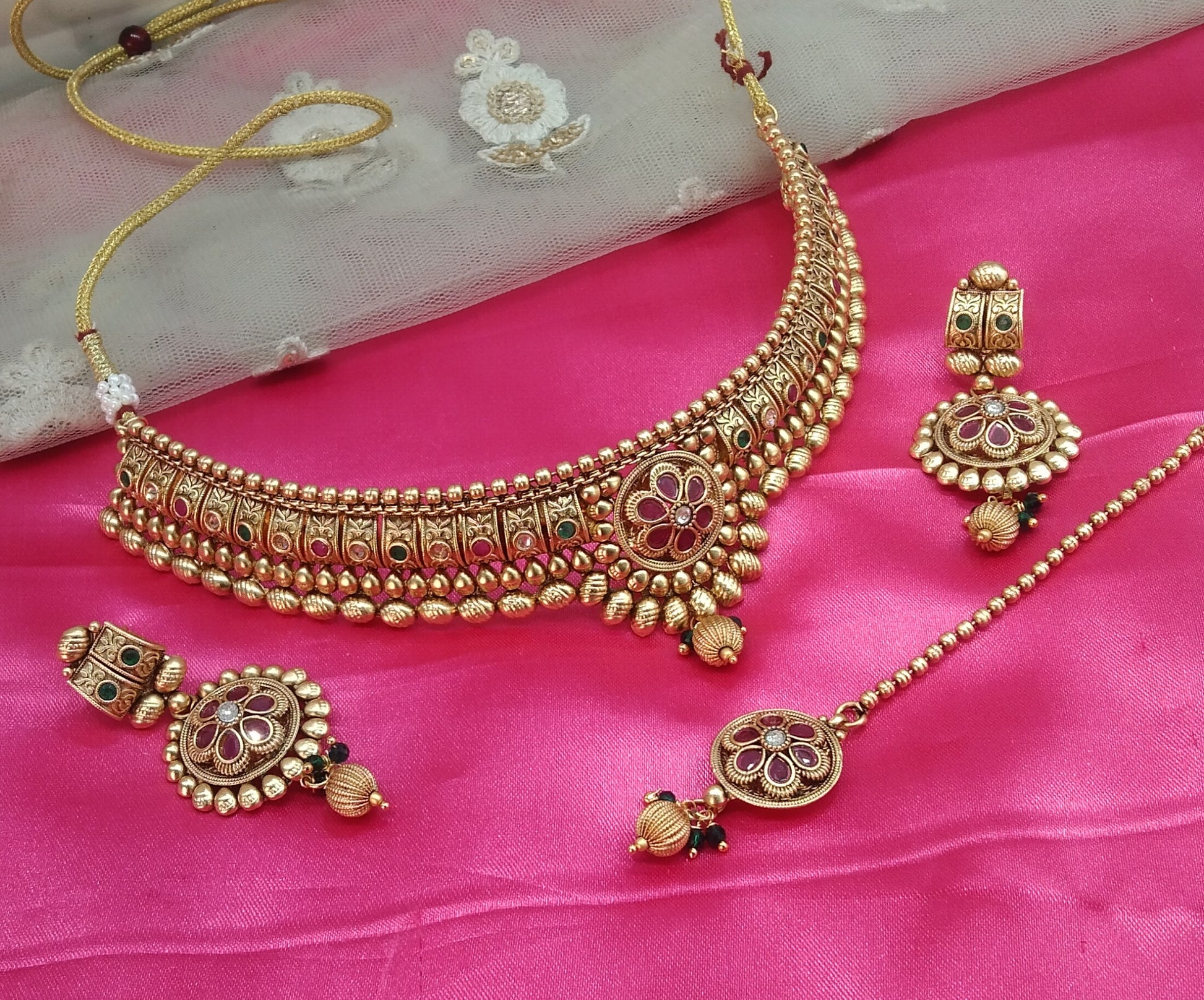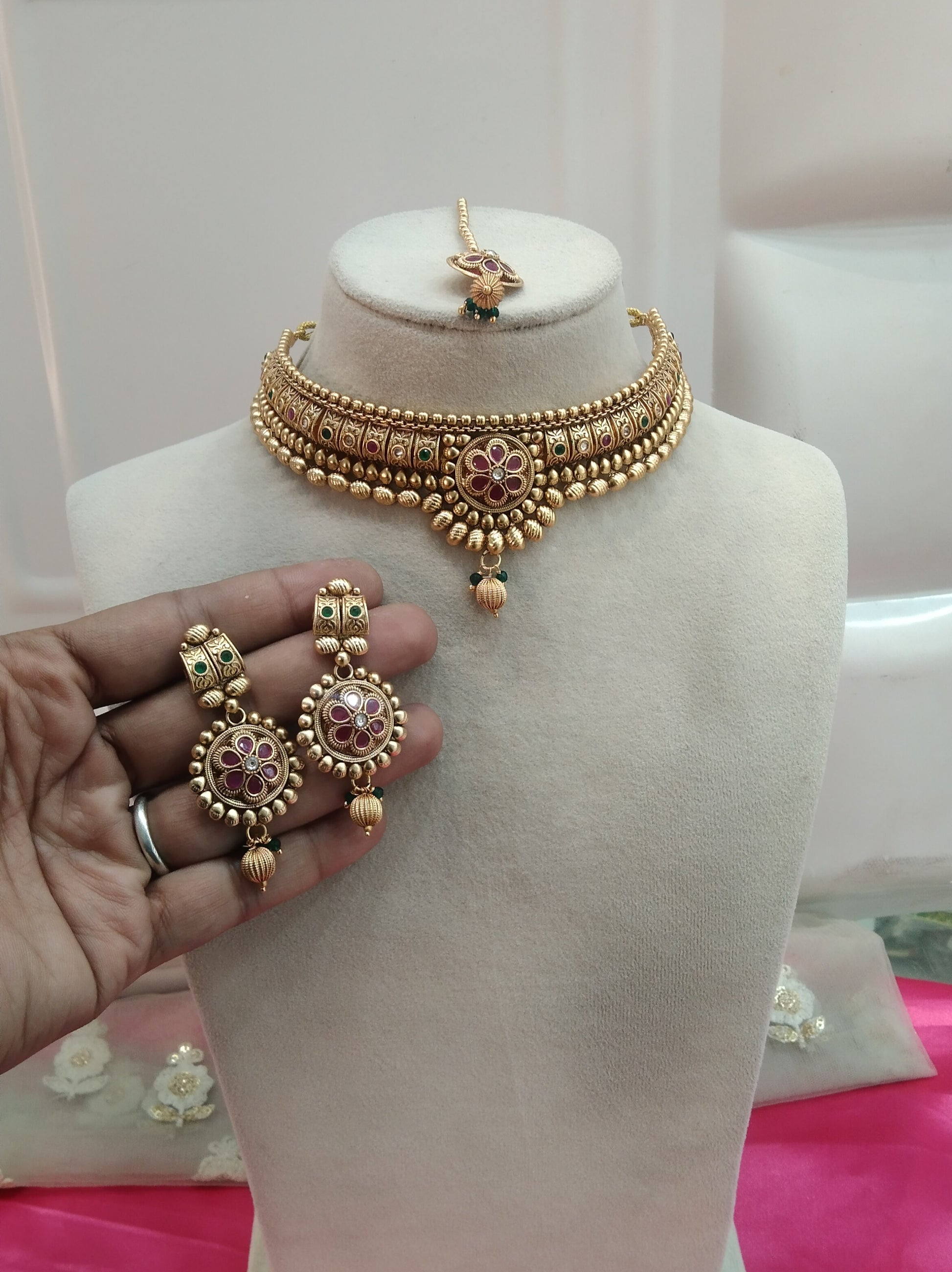 * Gold Finish Polki Choker Set with earrings as shown in the pic.