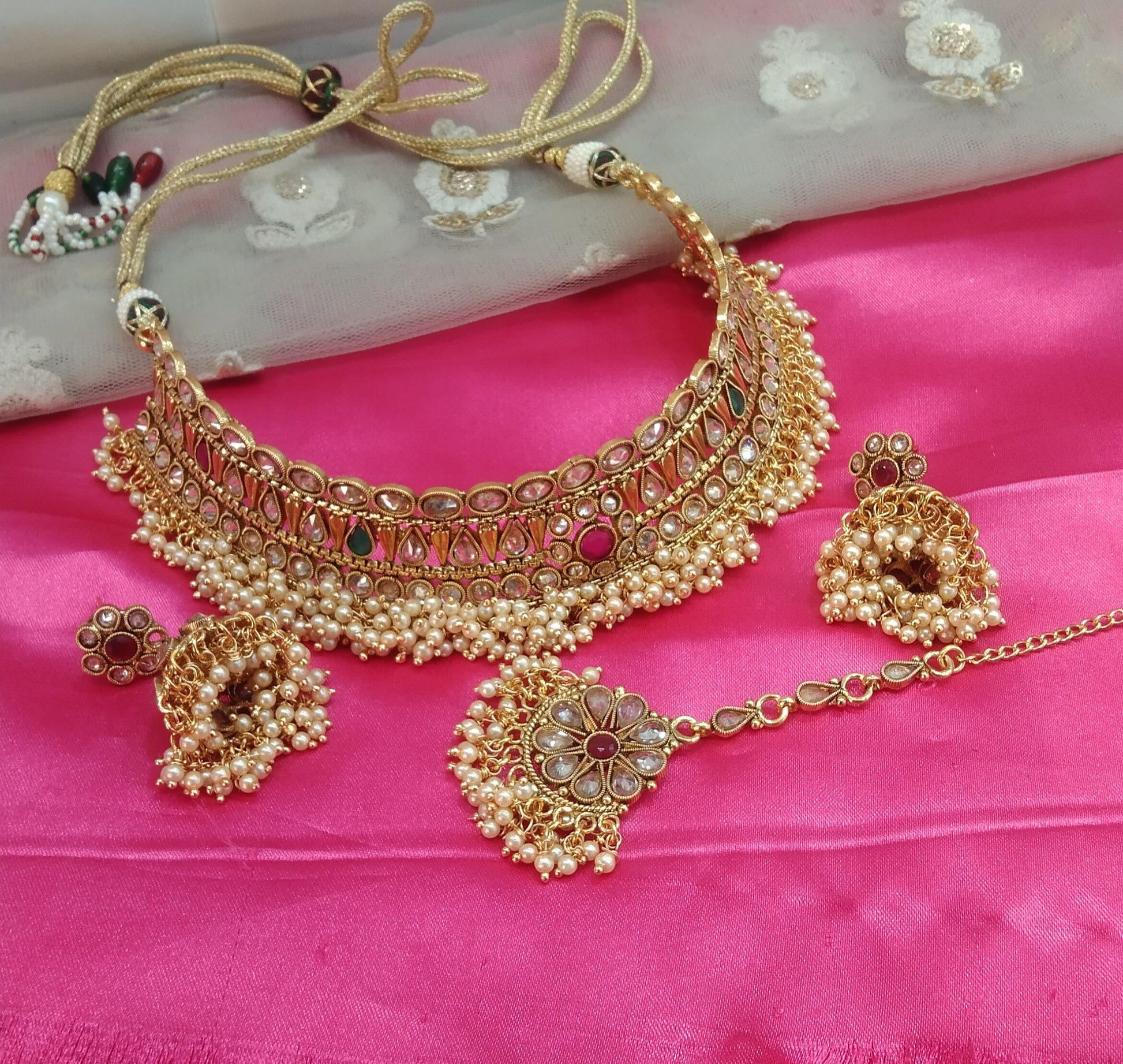 * Gold Finish Polki Choker Set with earrings as shown in the pic.