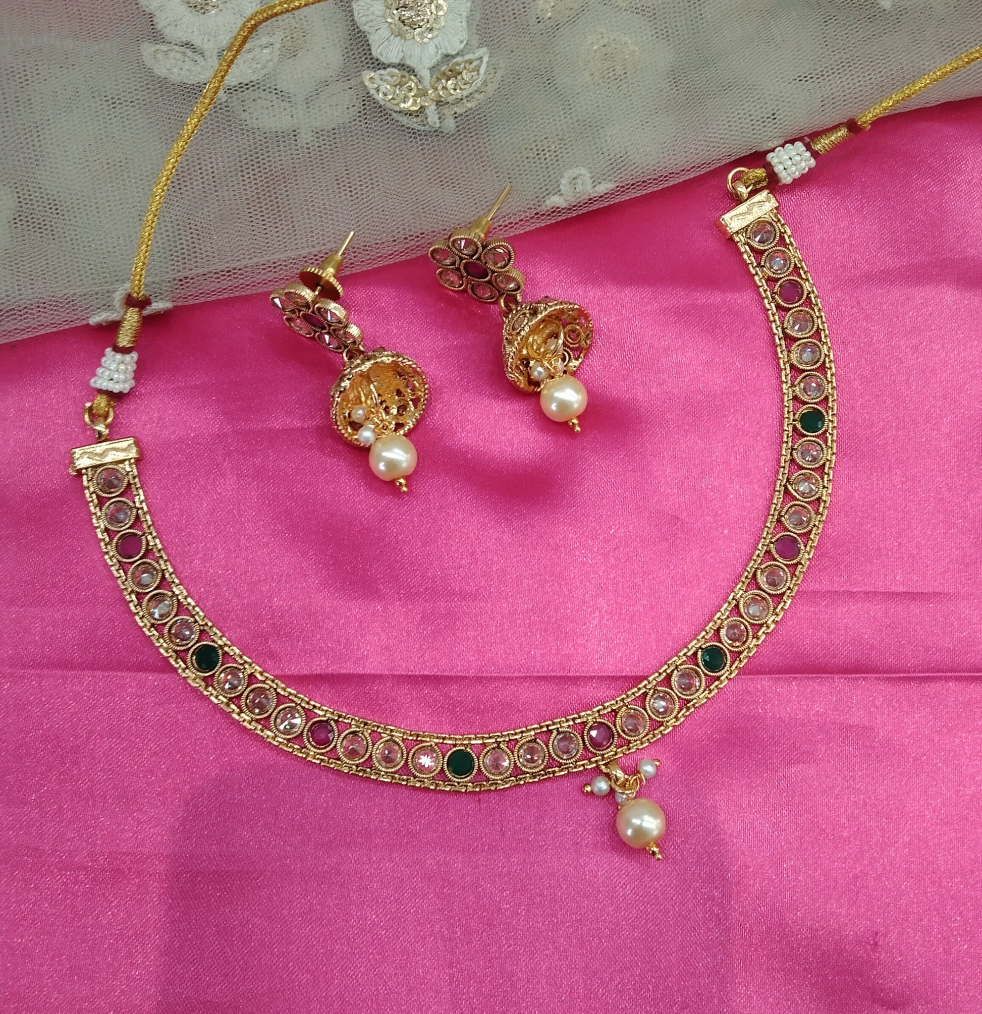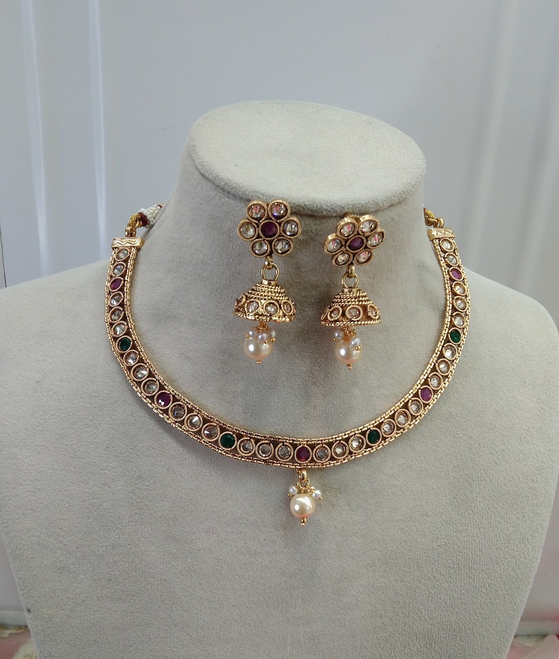 Gold Ruby Green Polki Jhumki Necklace Jewellery Active Set