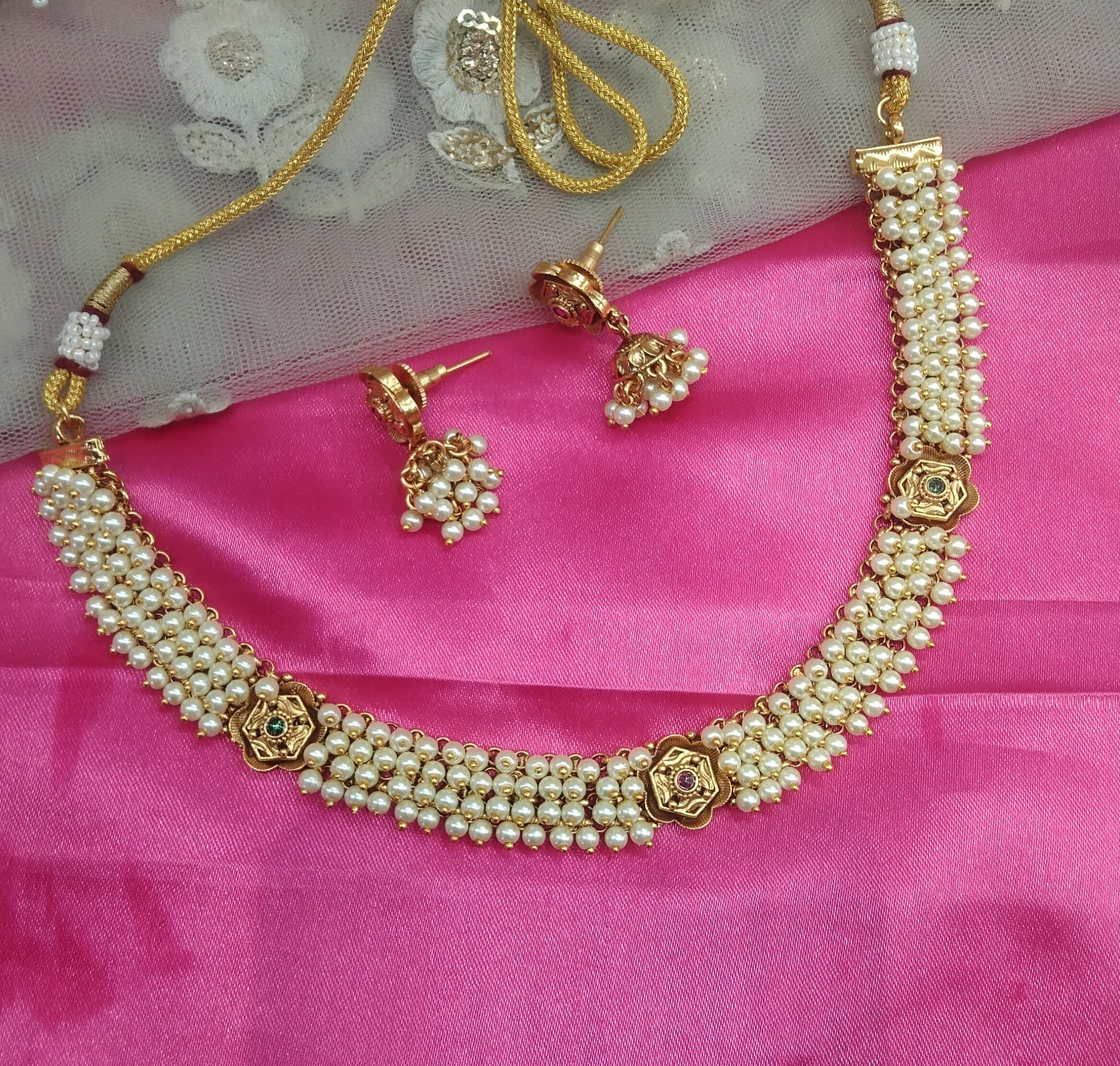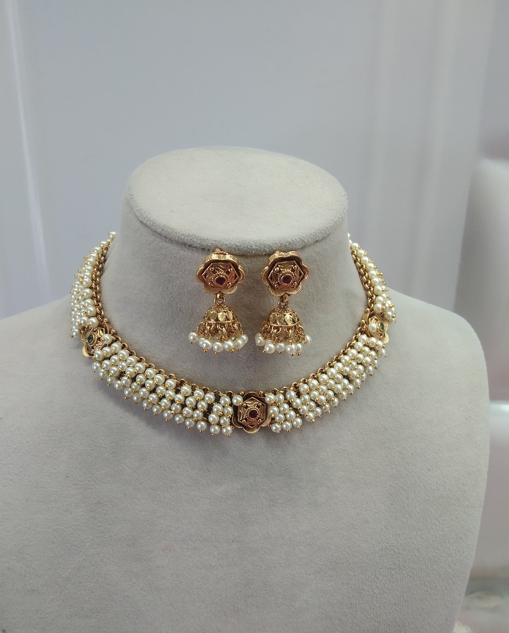 * Gold Finish Polki Necklace Set with earrings as shown in the pic.