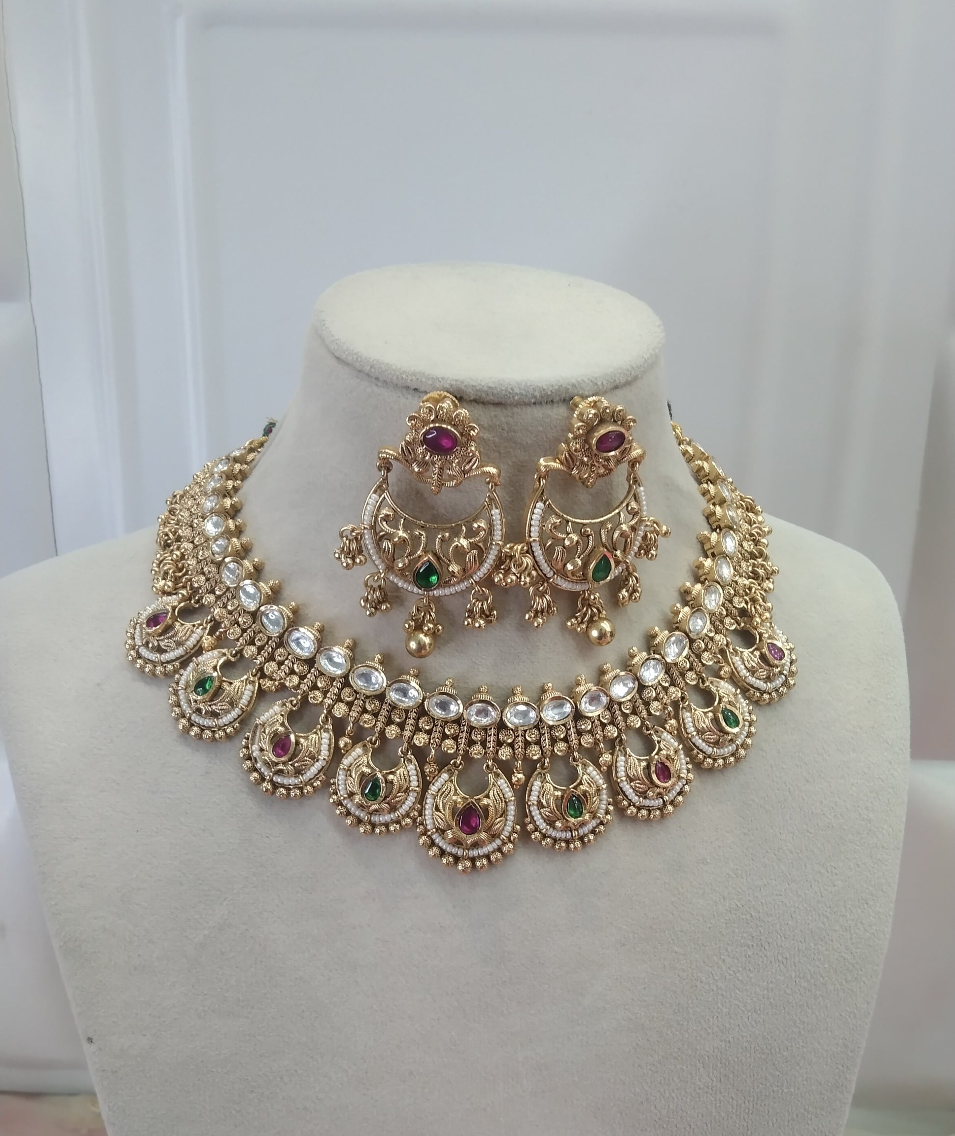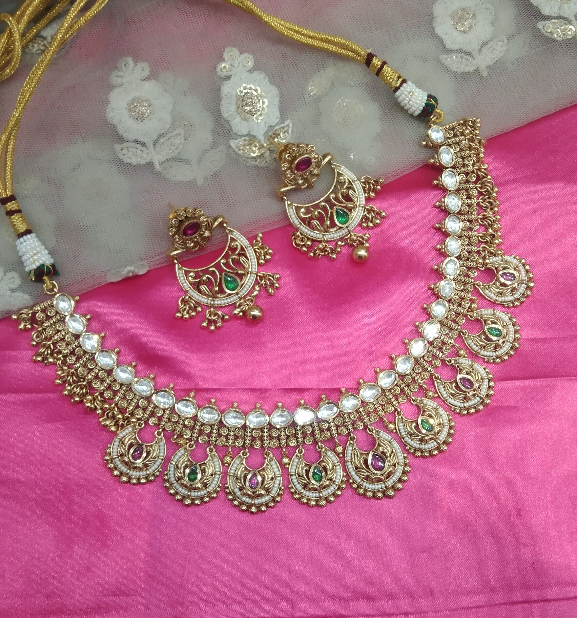 * Gold Finish Polki Necklace Set with earrings as shown in the pic.