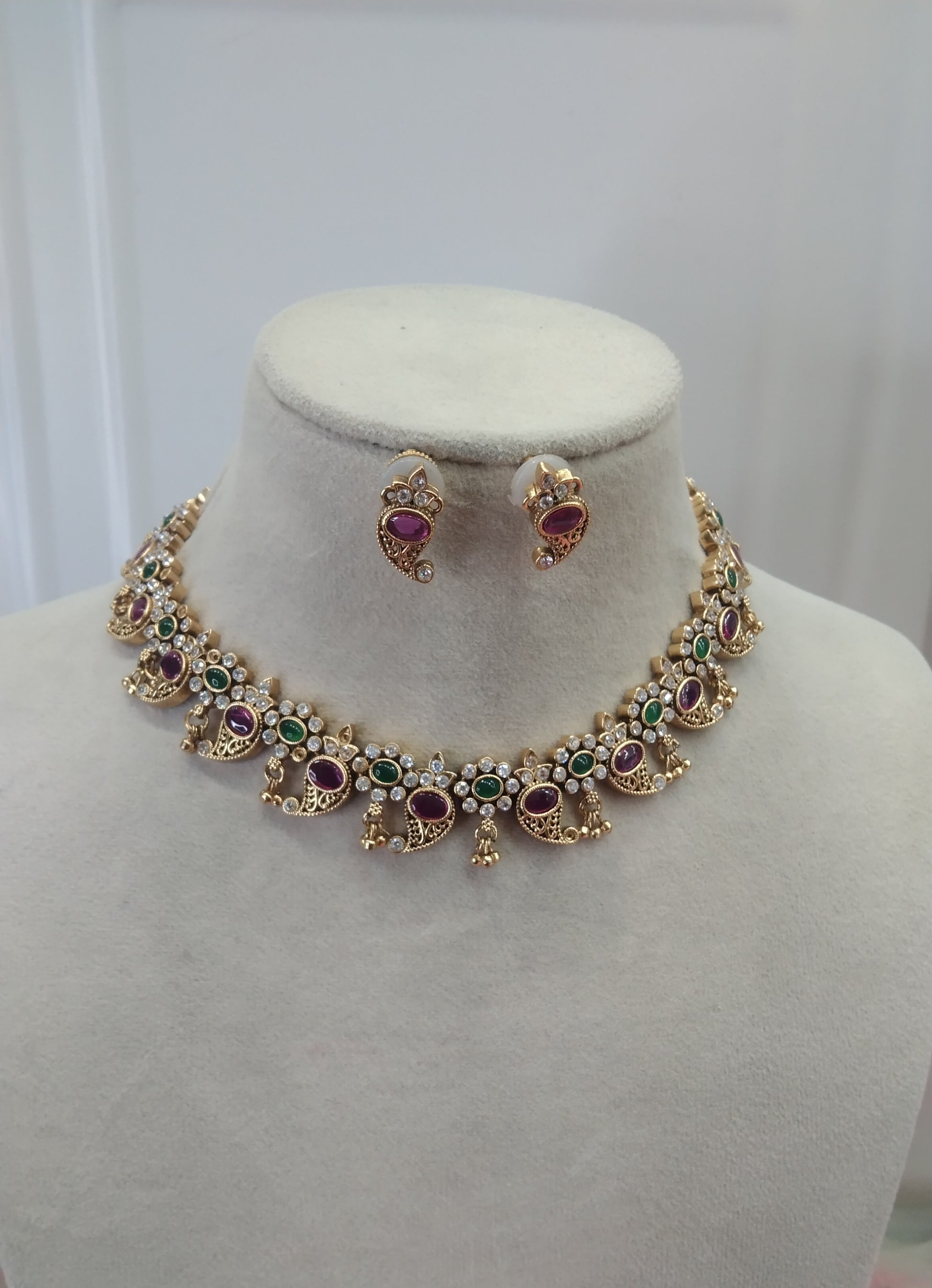 Gold Ruby Green Polki Kundan Necklace Jewelry Global Set