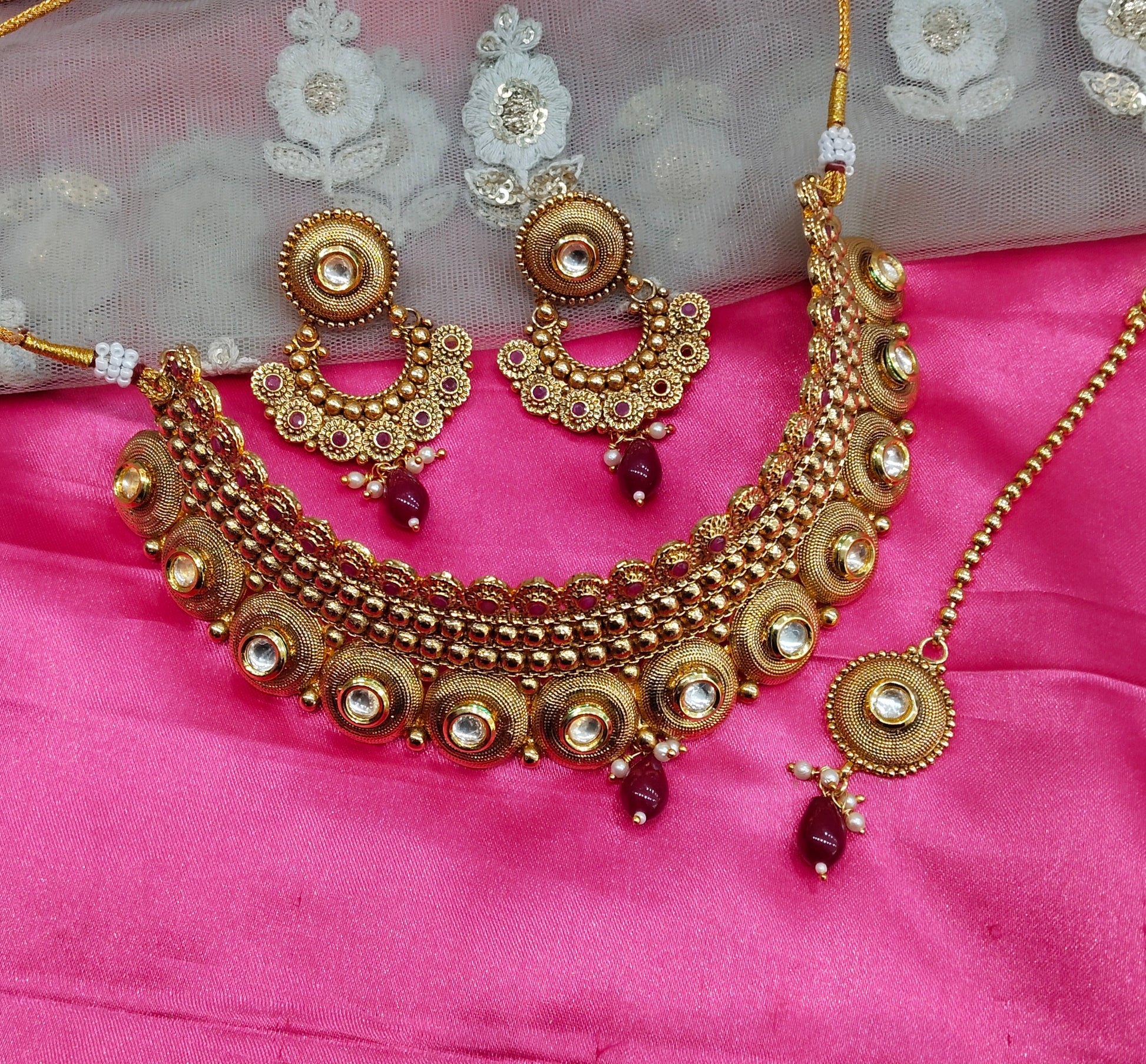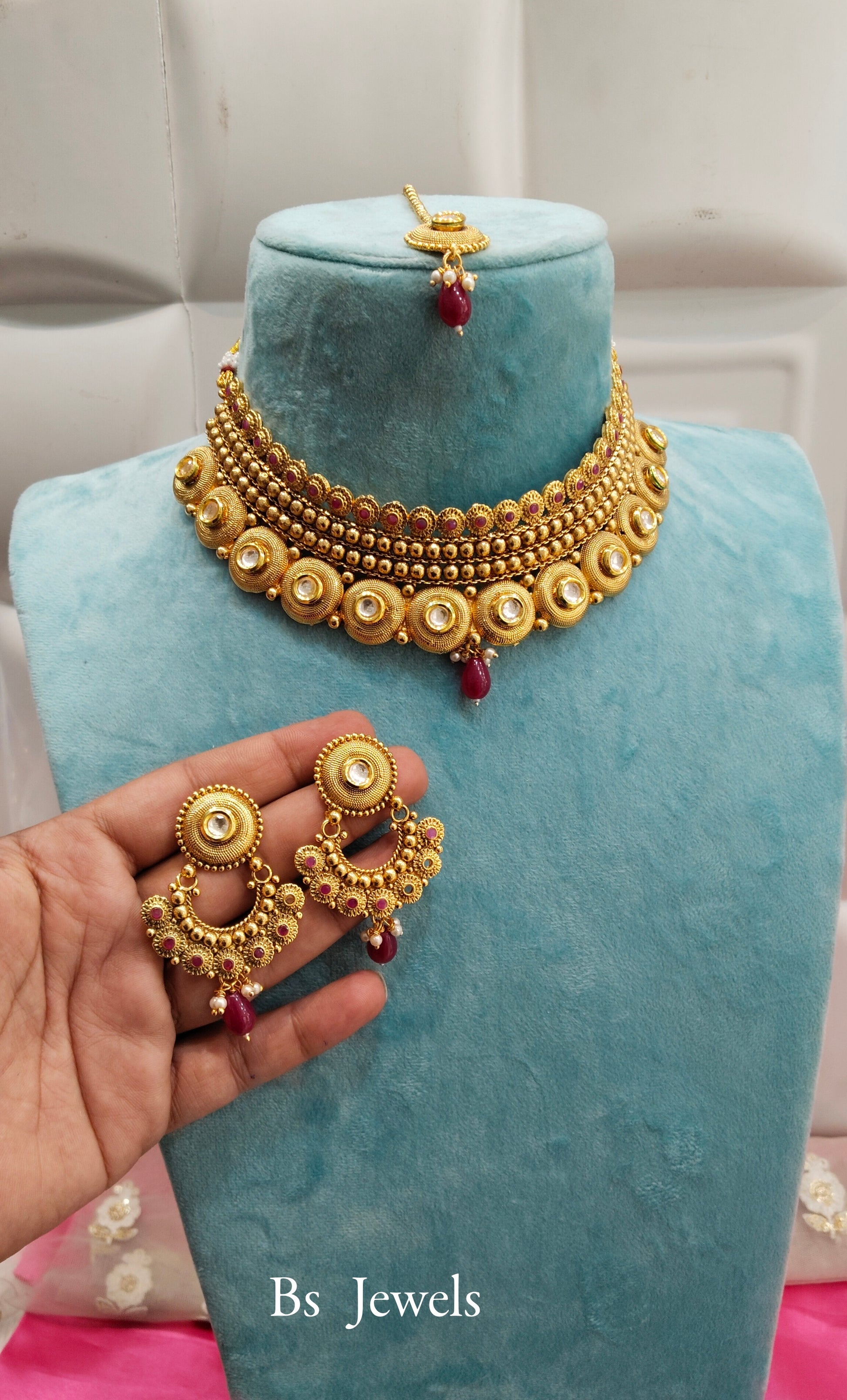 * Gold Finish Polki Choker Set with earrings as shown in the pic.