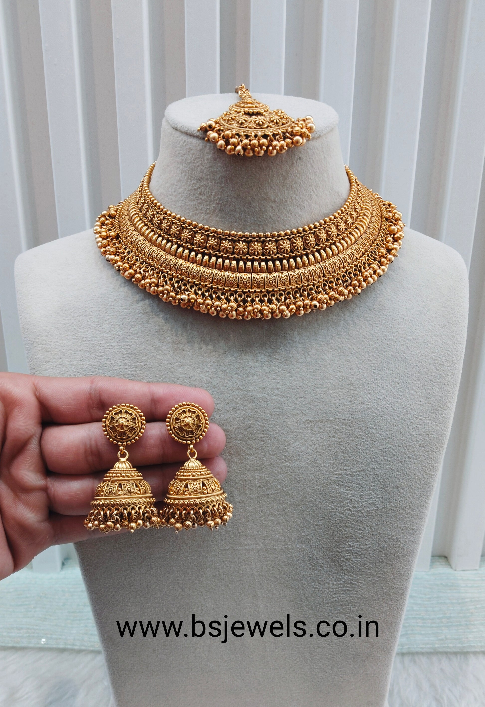 * Gold Finish Polki Choker Set with earrings as shown in the pic.