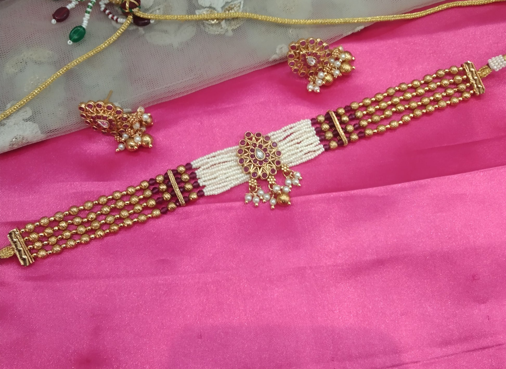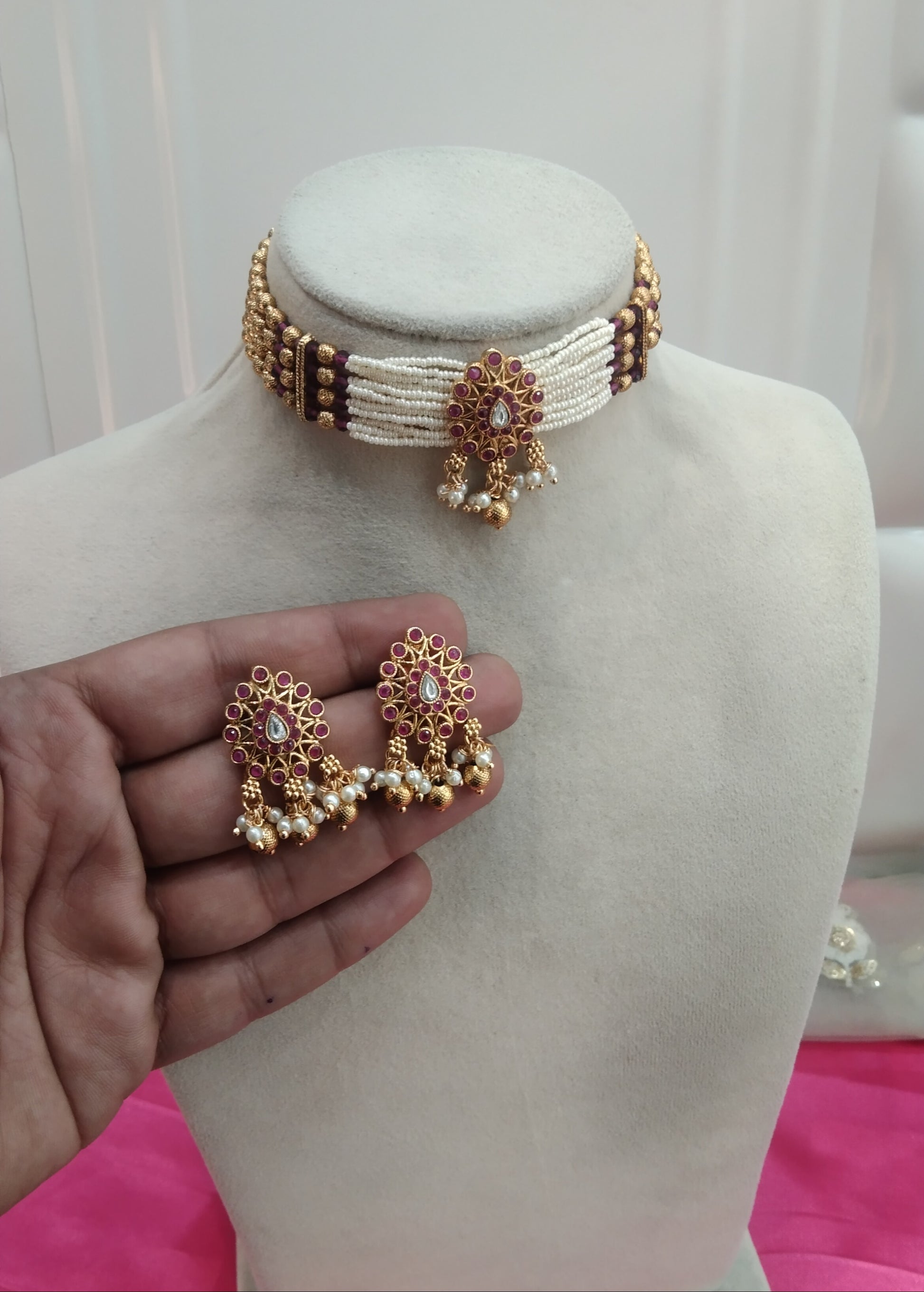 * Gold Finish Polki Choker Set with earrings as shown in the pic.