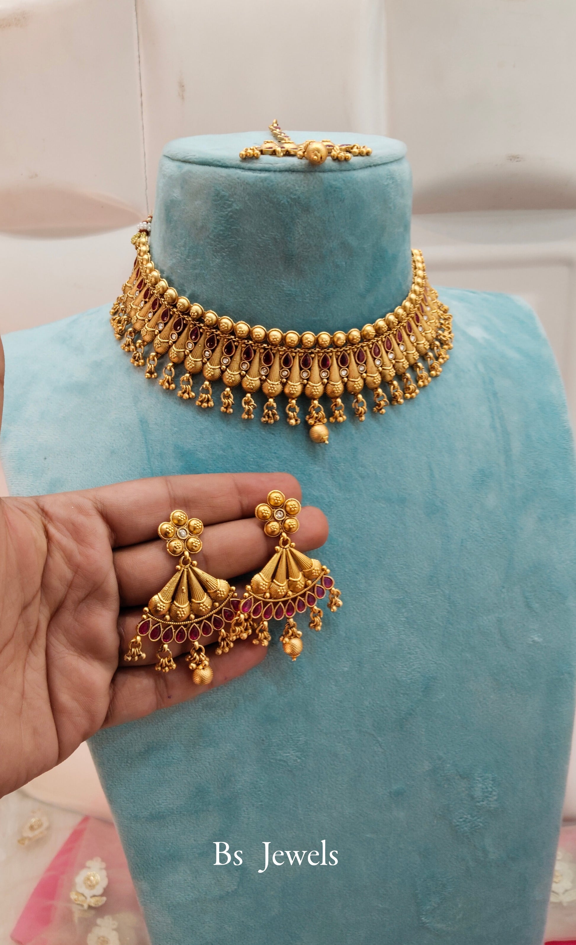* Gold Finish Polki Choker Set with earrings as shown in the pic.