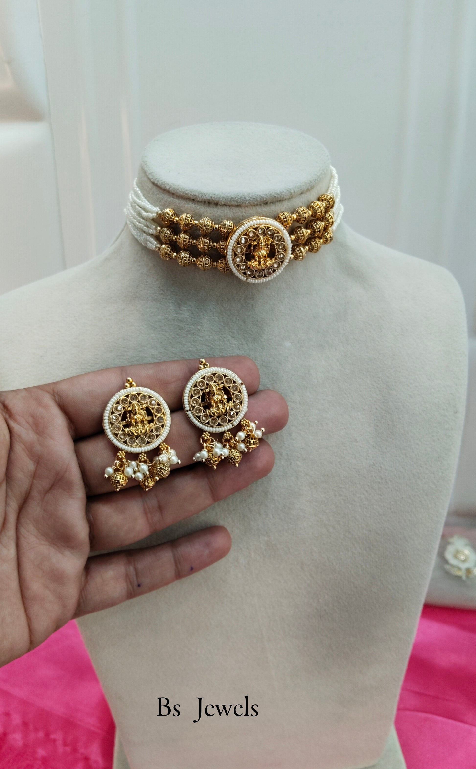* Gold Finish Polki Choker Set with earrings as shown in the pic.