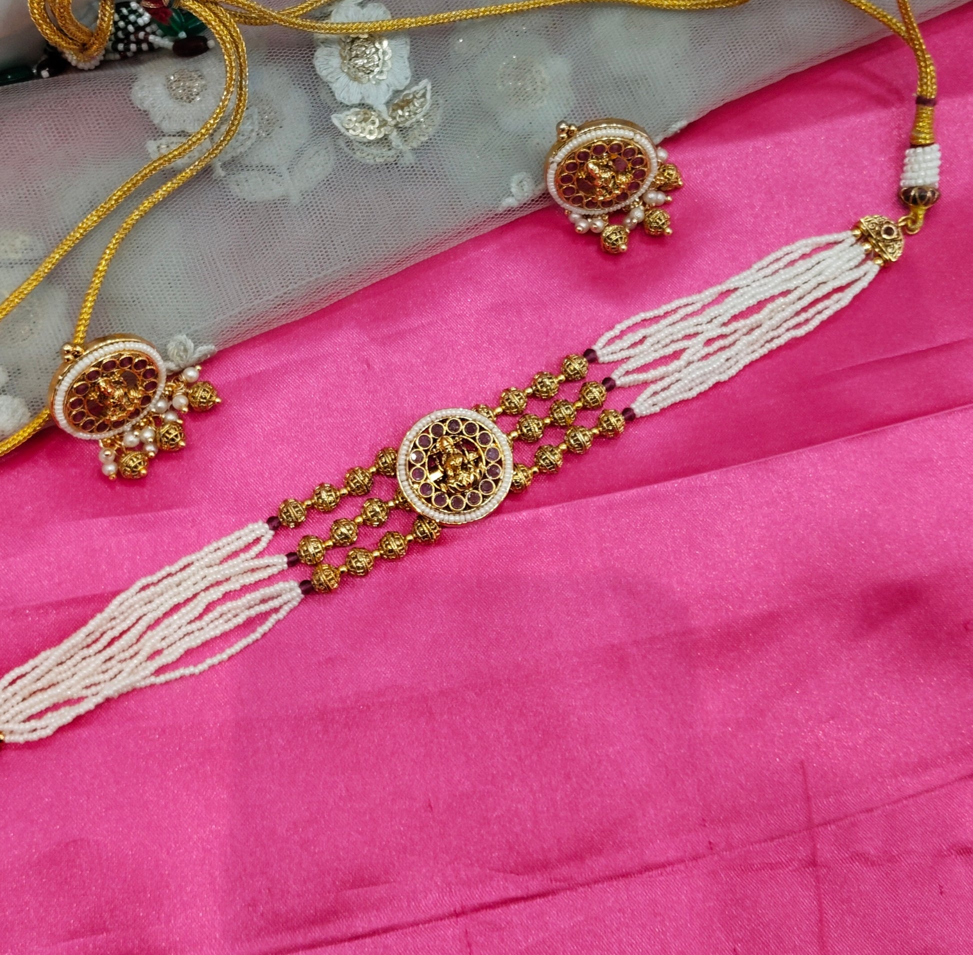 Gold White Polki Choker Temple Jewellery komal Set