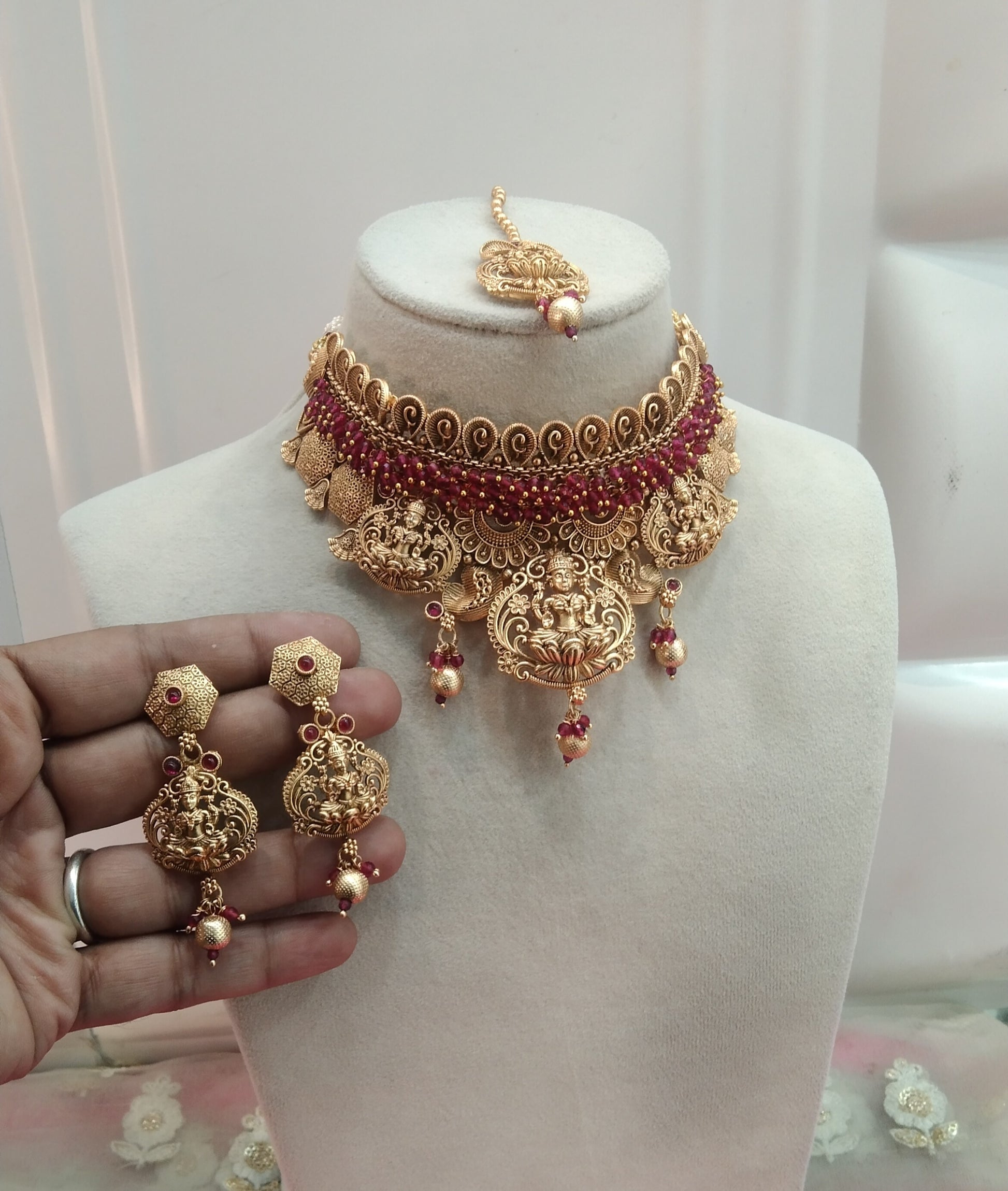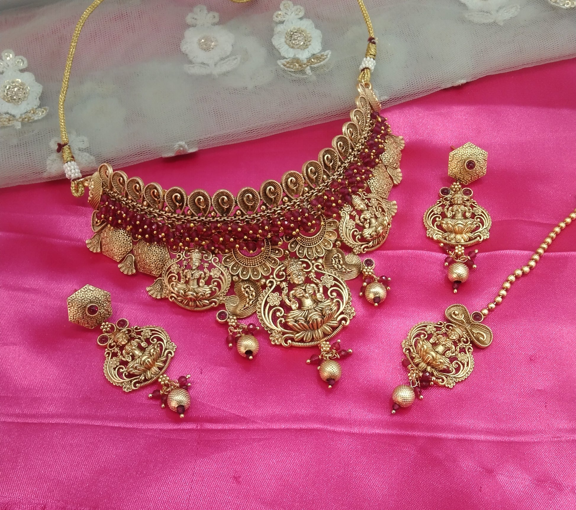 Gold Ruby Polki Choker Temple Jewellery Beams Set