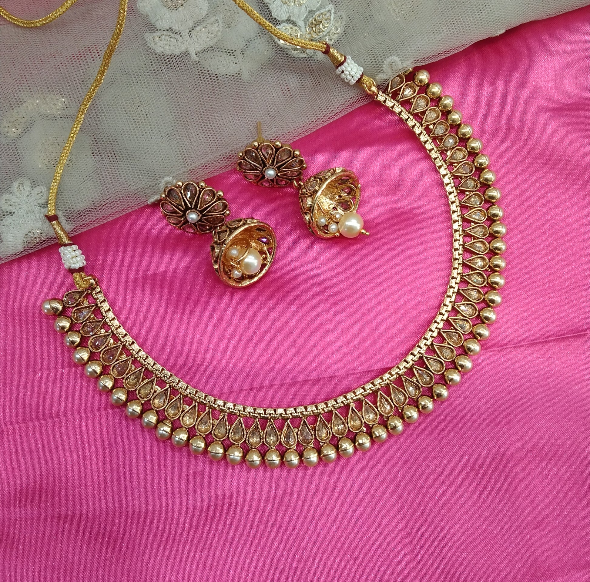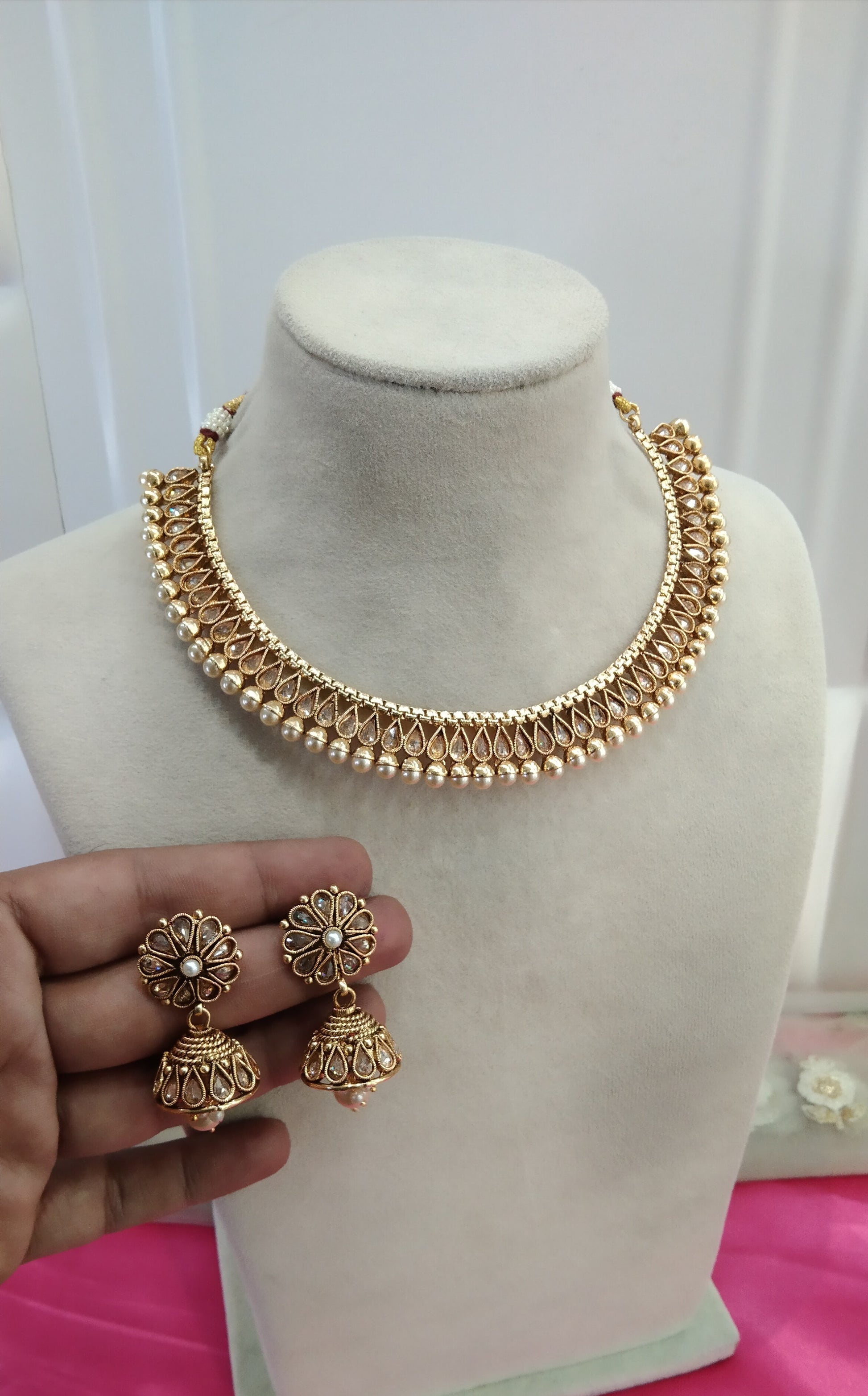 Gold Polki Jhumka Necklace Jewelry Khushi Set