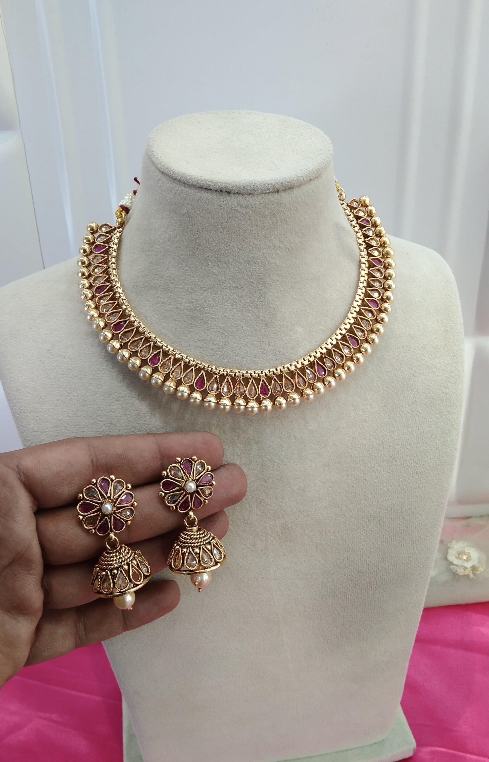 Gold Ruby Polki Jhumka Necklace Jewelry Khushi Set