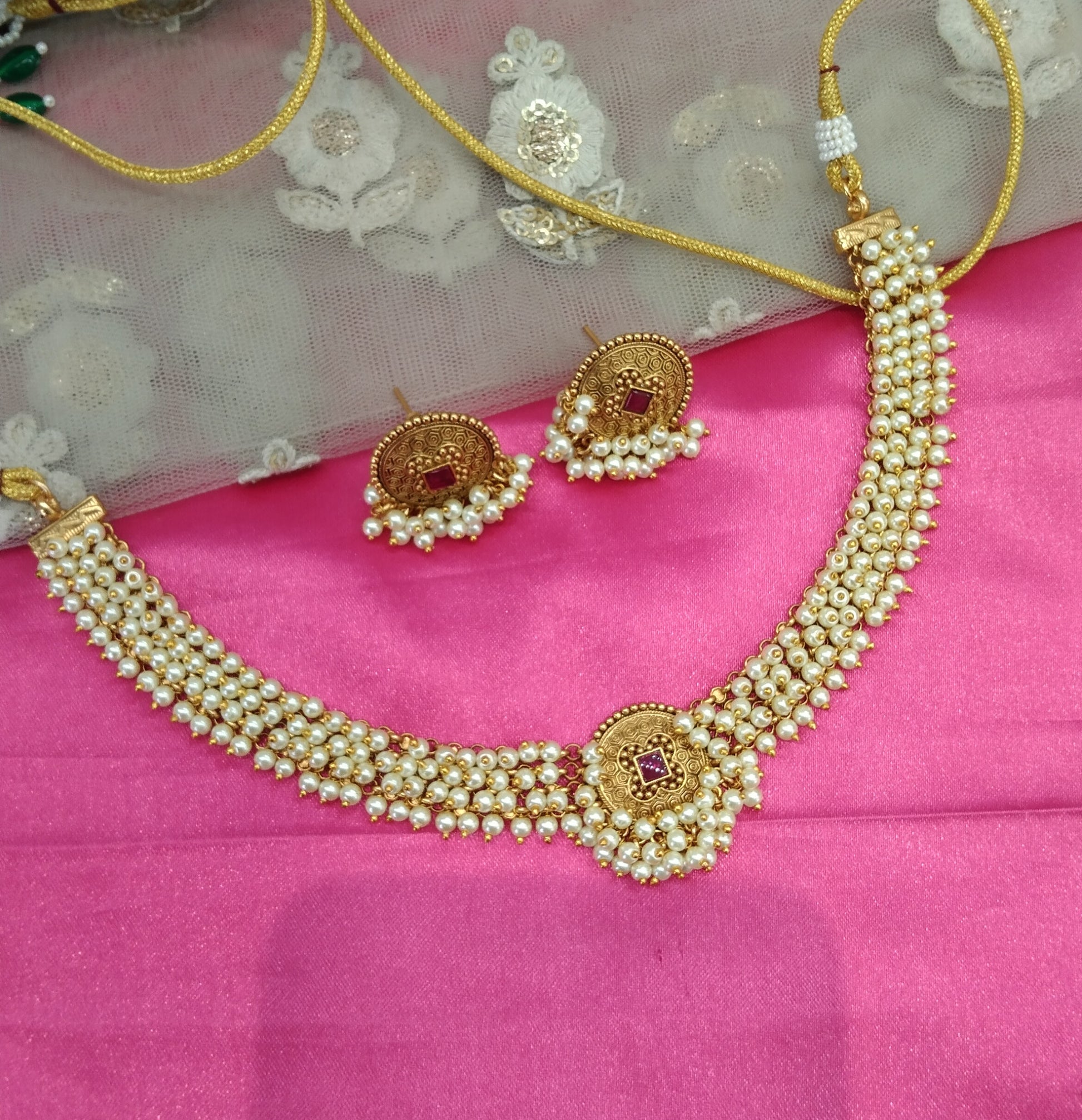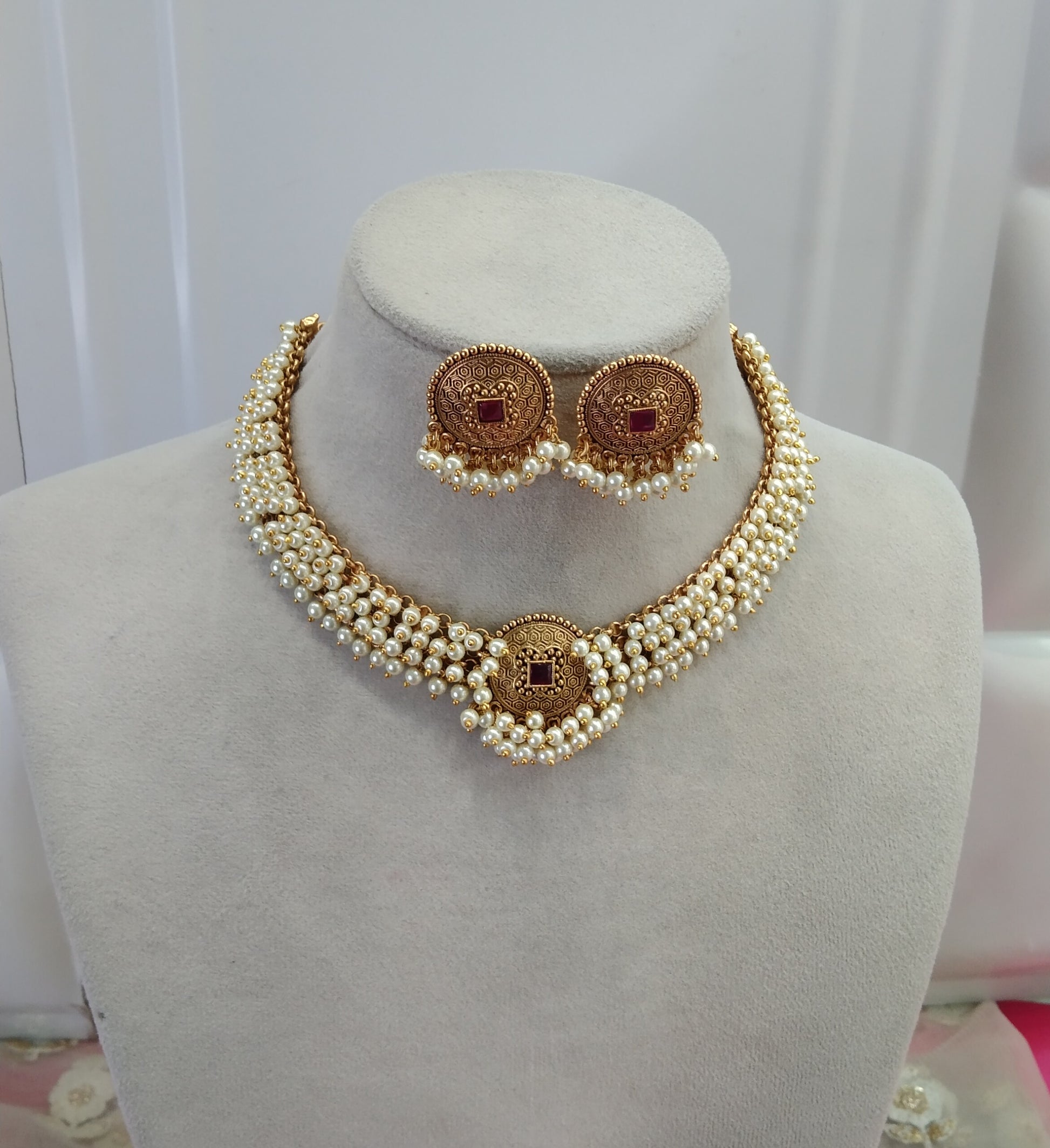 * Gold Finish Polki Necklace Set with earrings as shown in the pic.