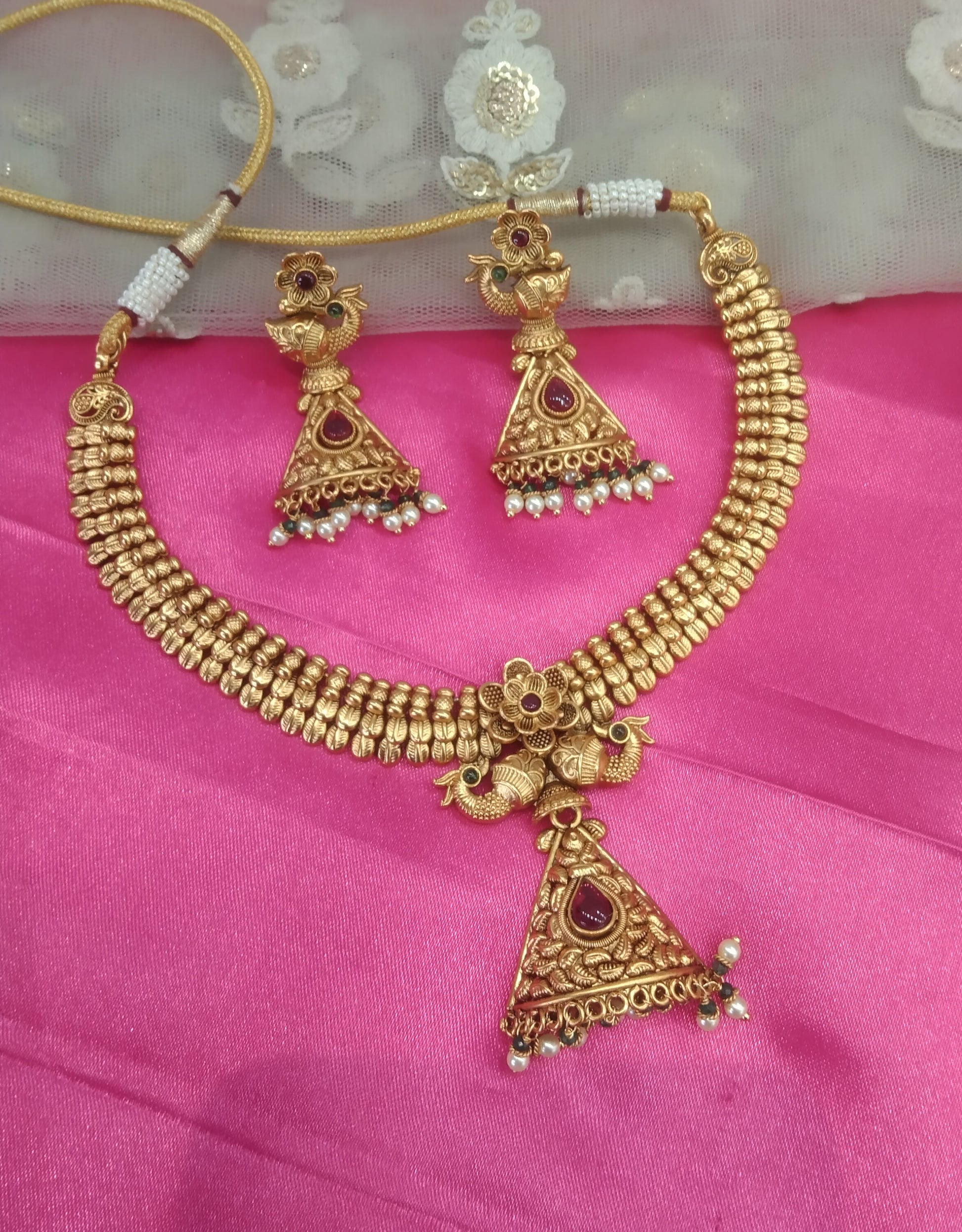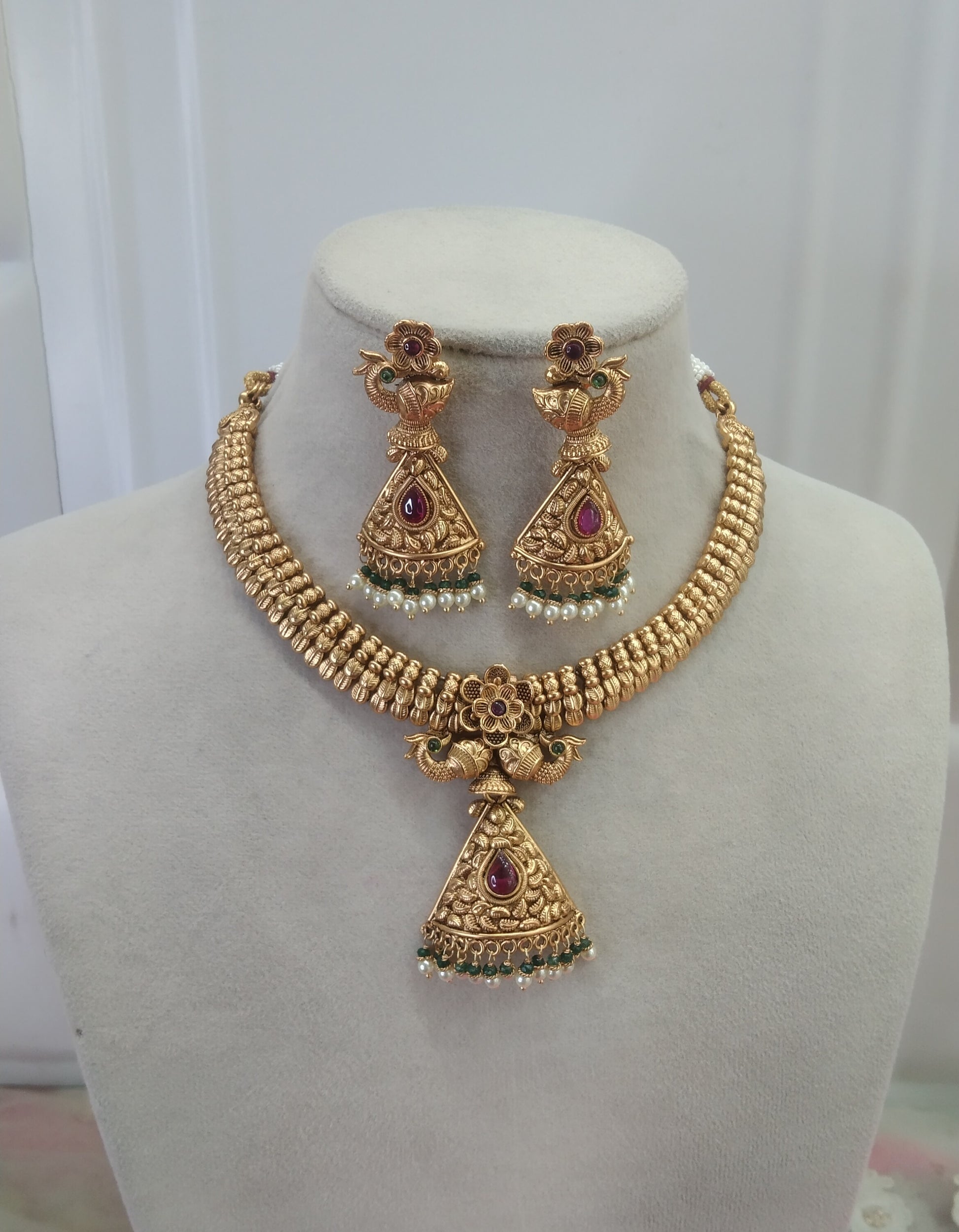 * Gold Finish Polki Necklace Set with earrings as shown in the pic.