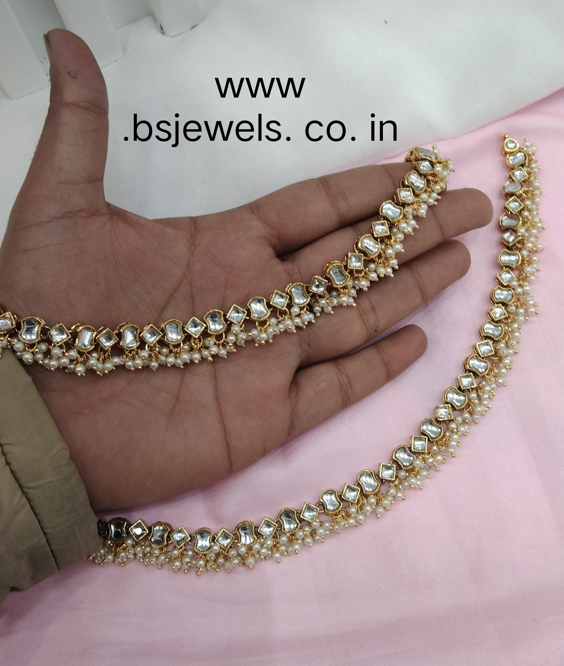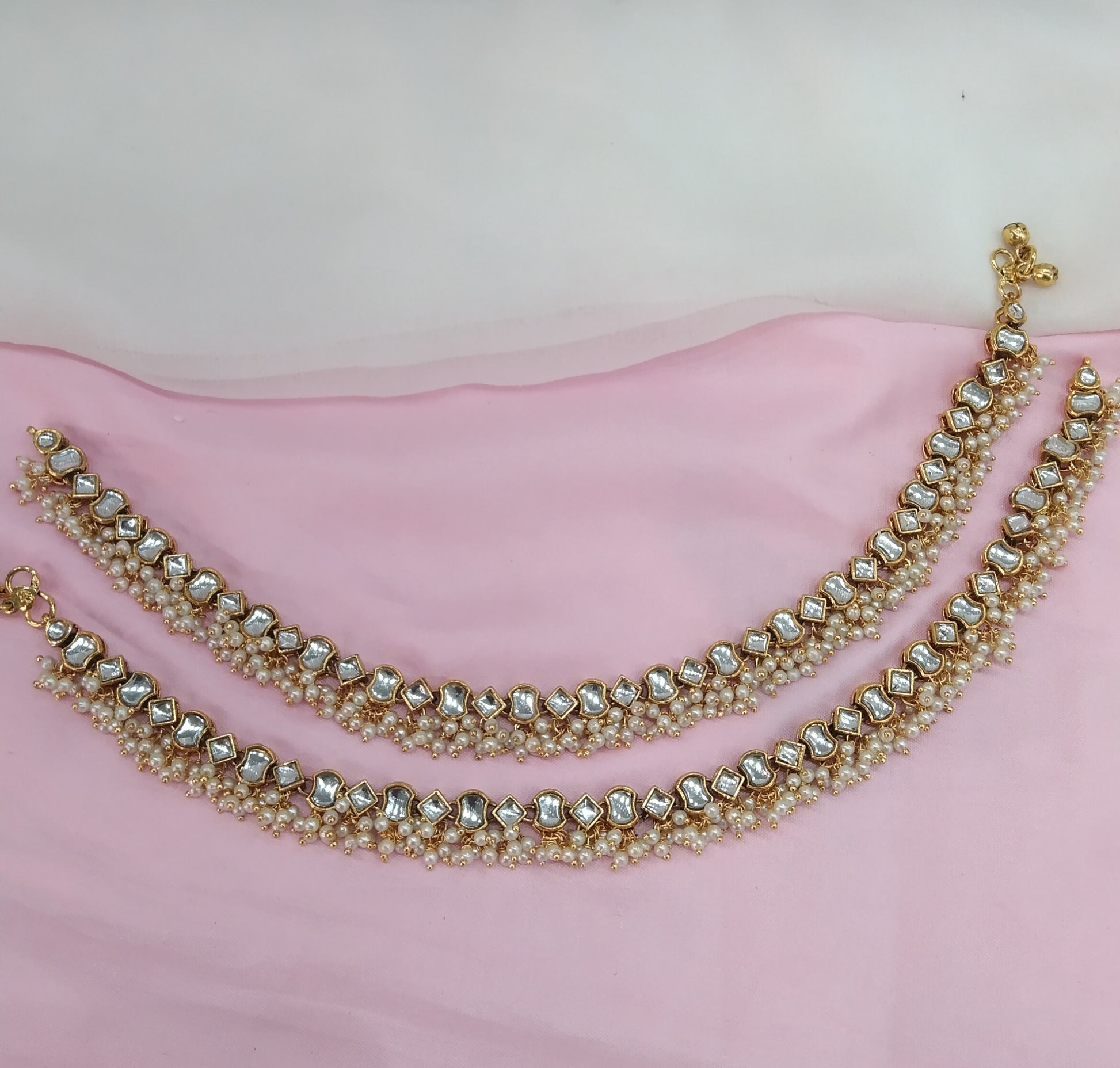Gold White Kundan Anklets Jhanjar Payal Jewellery opti Set