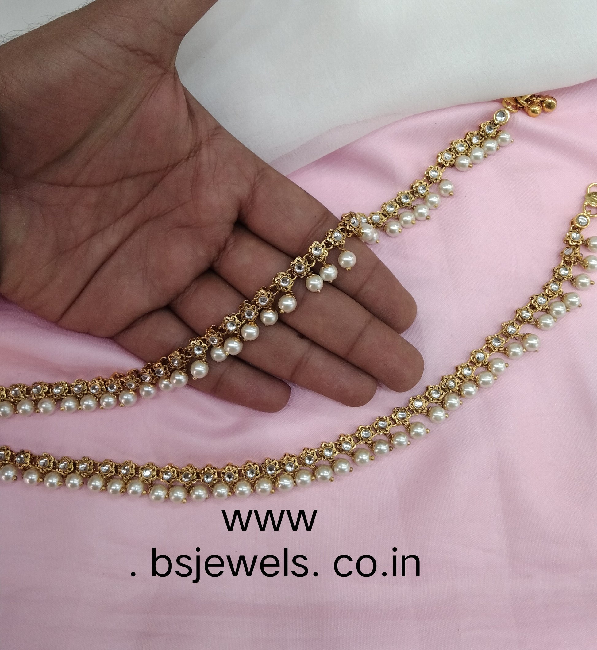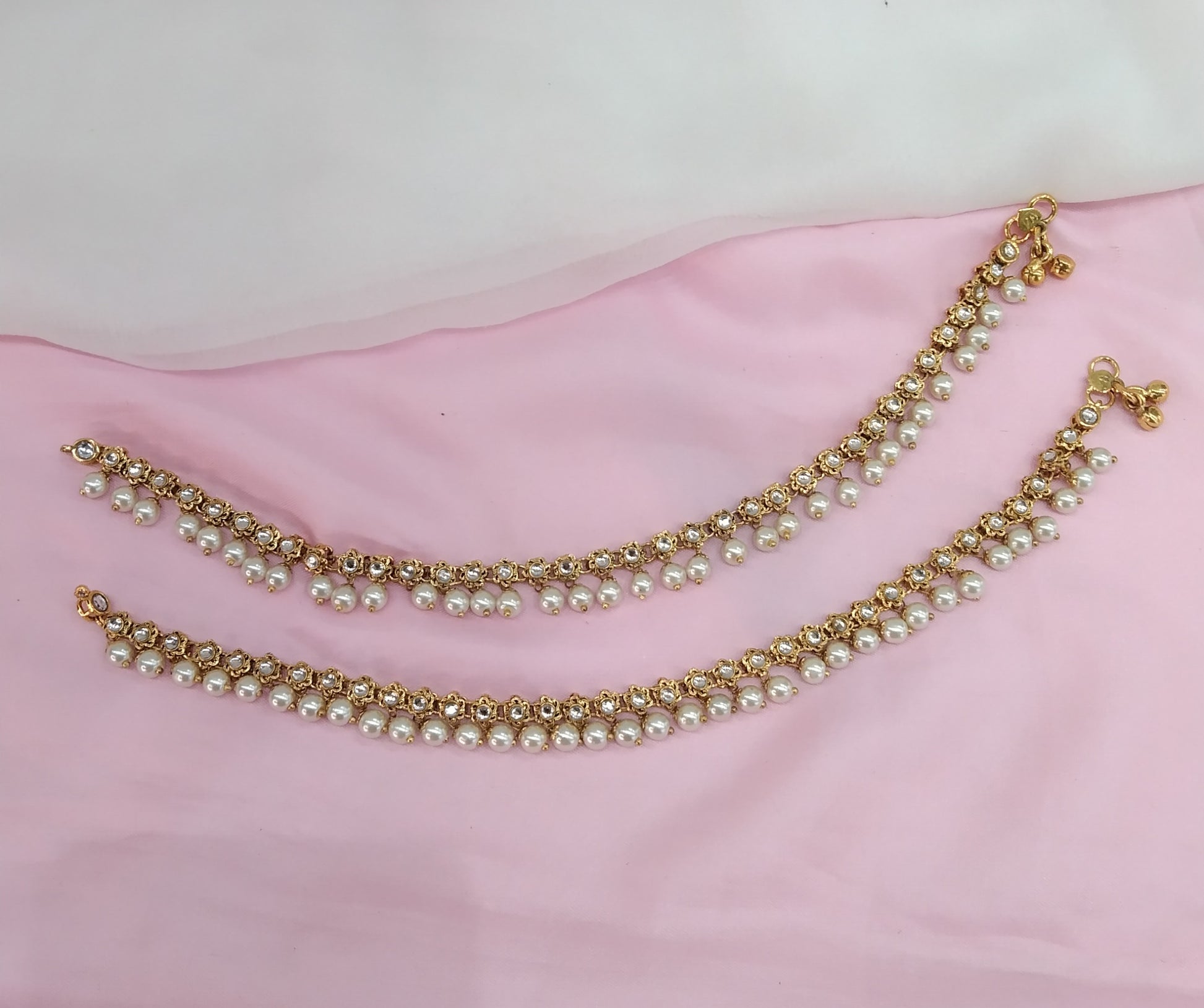 Gold White Kundan Anklets Jhanjar Payal Jewellery opti Set
