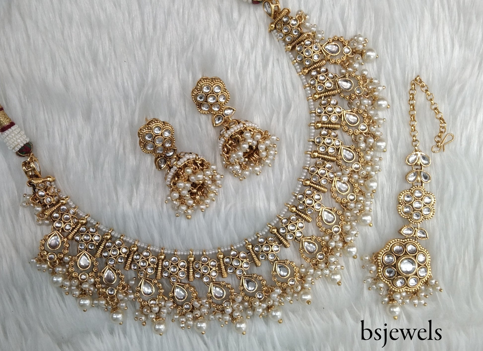 *Kundan necklace set with earrings and tikka.