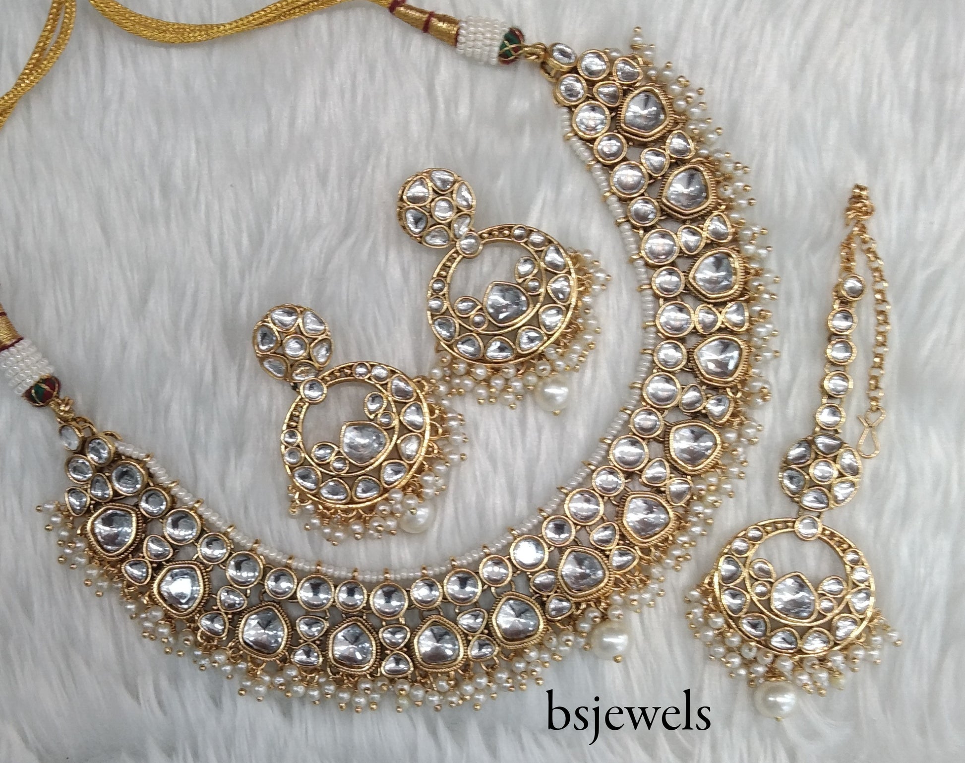 Gold white Kundan Necklace Jewellery Jinder Set